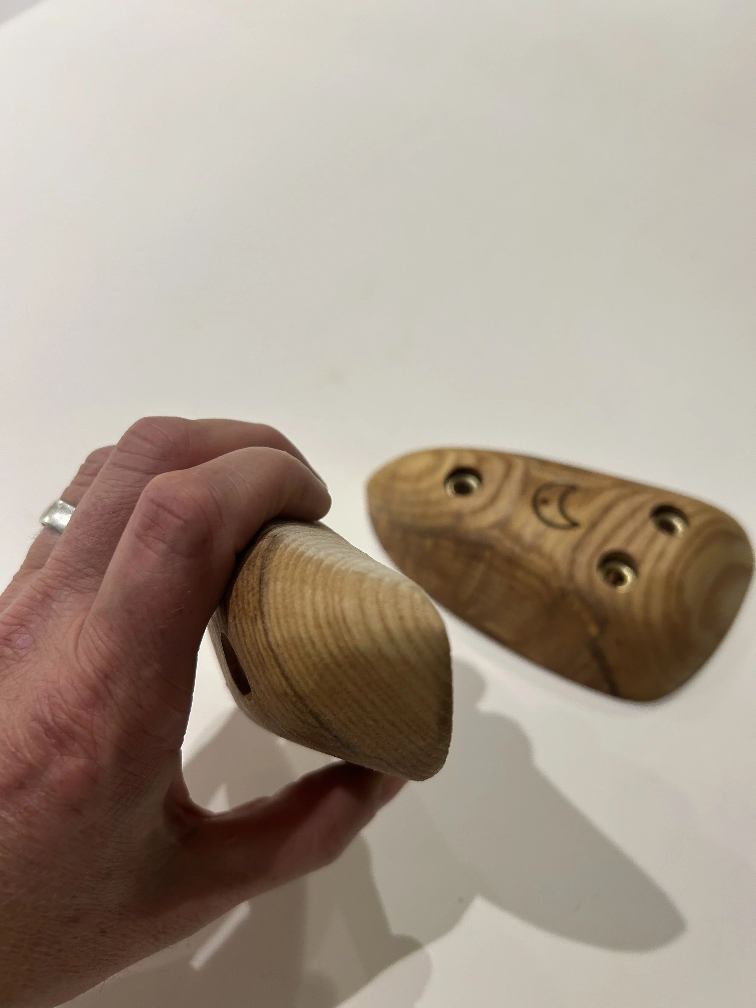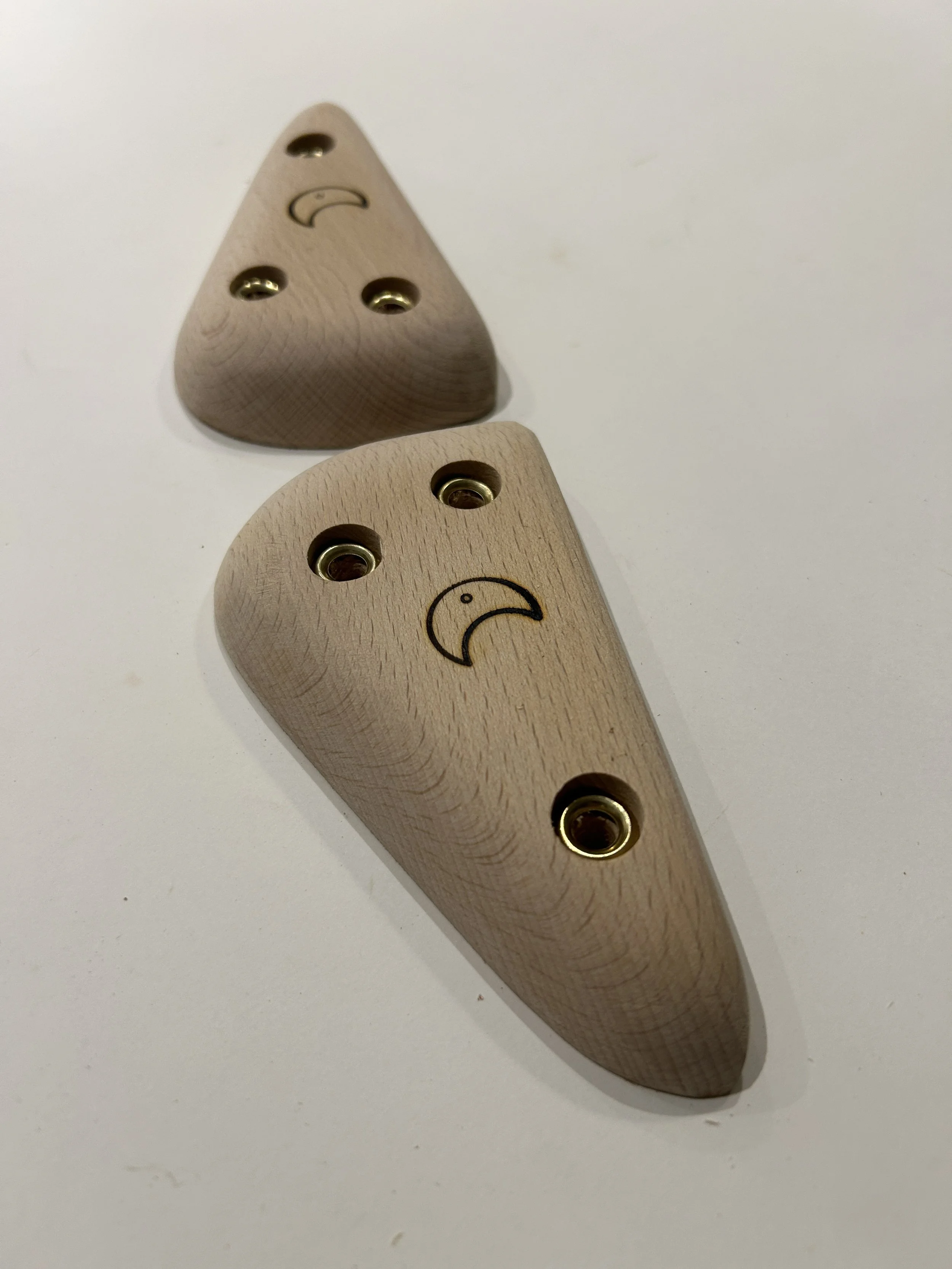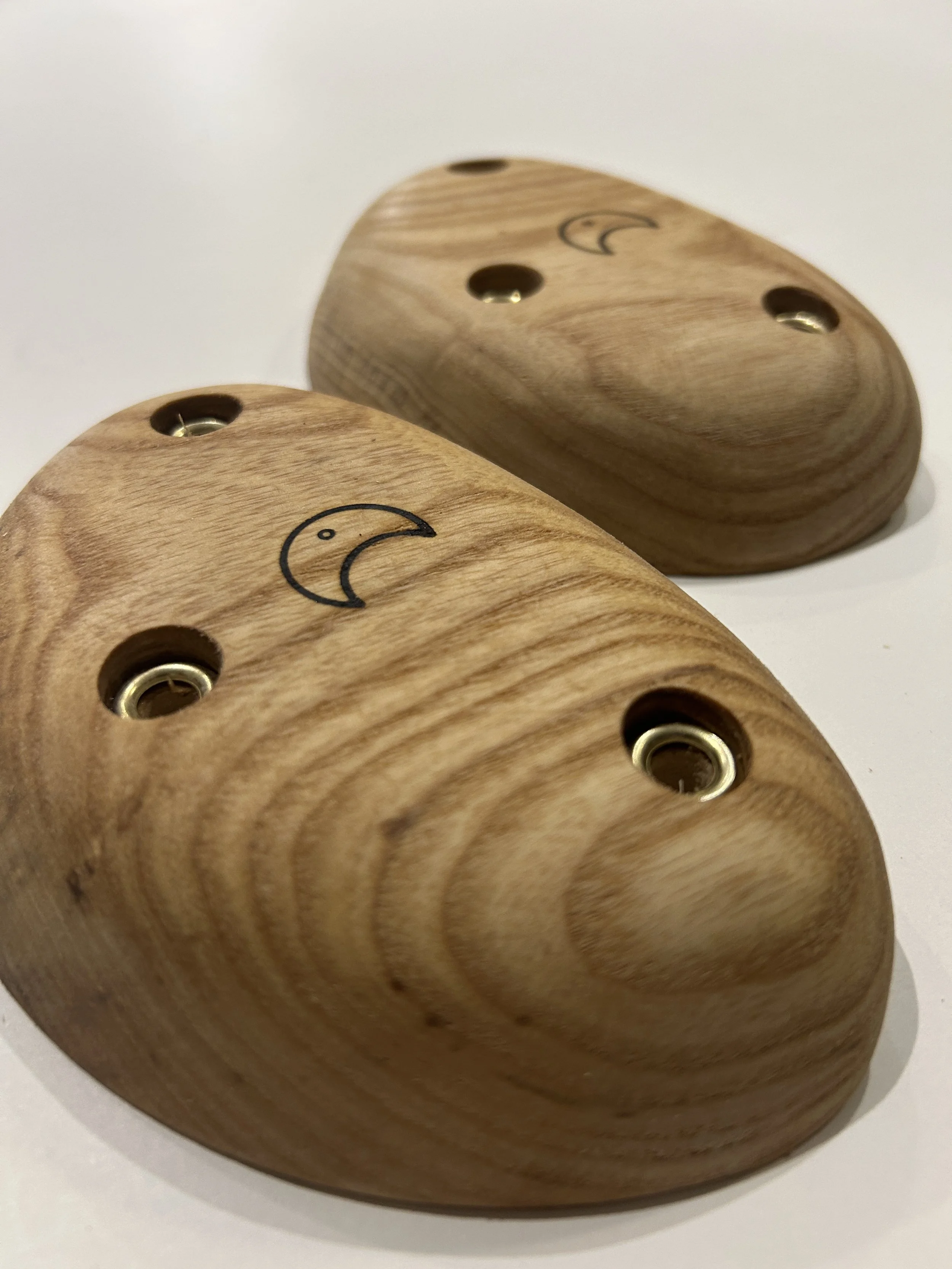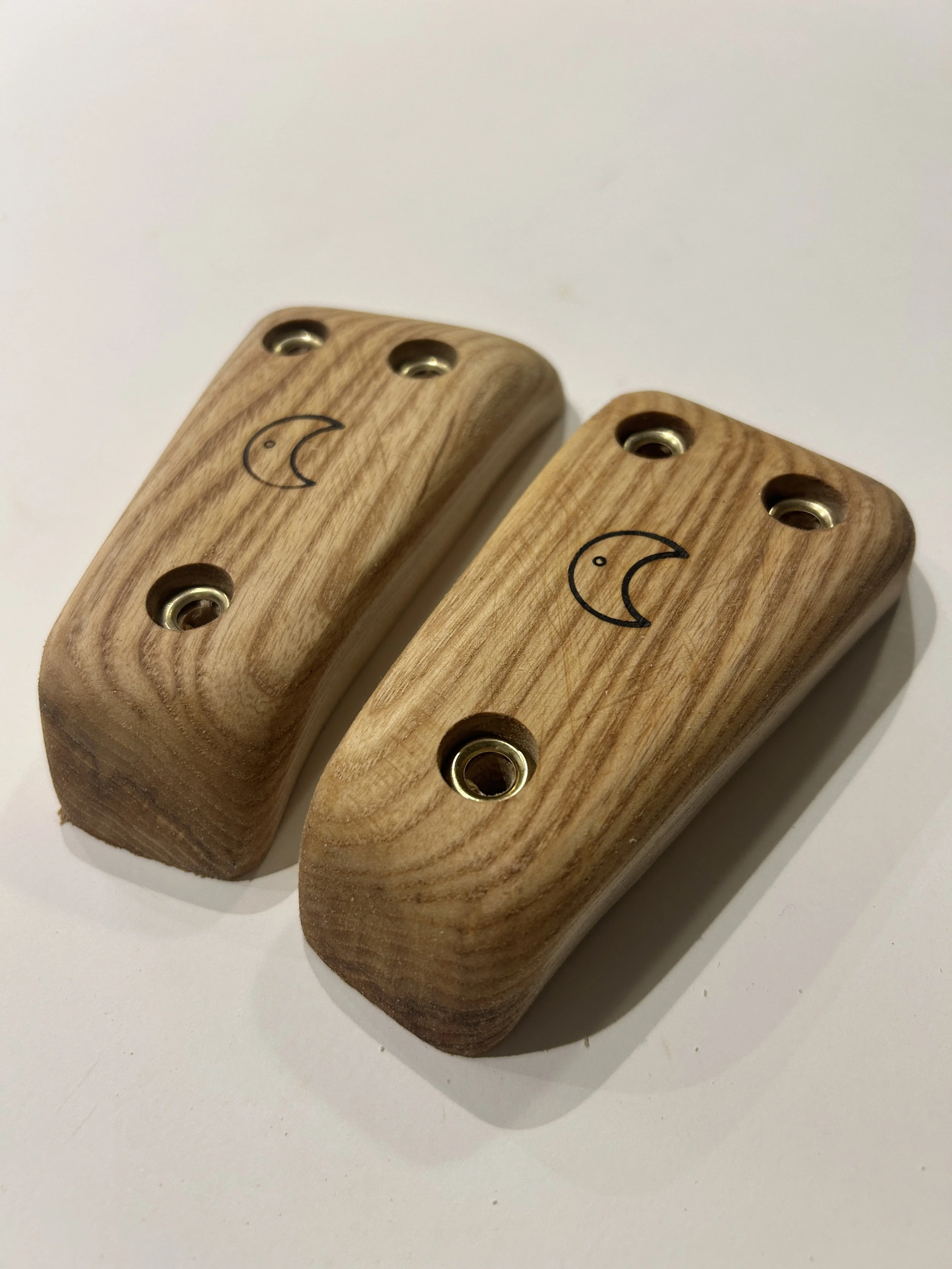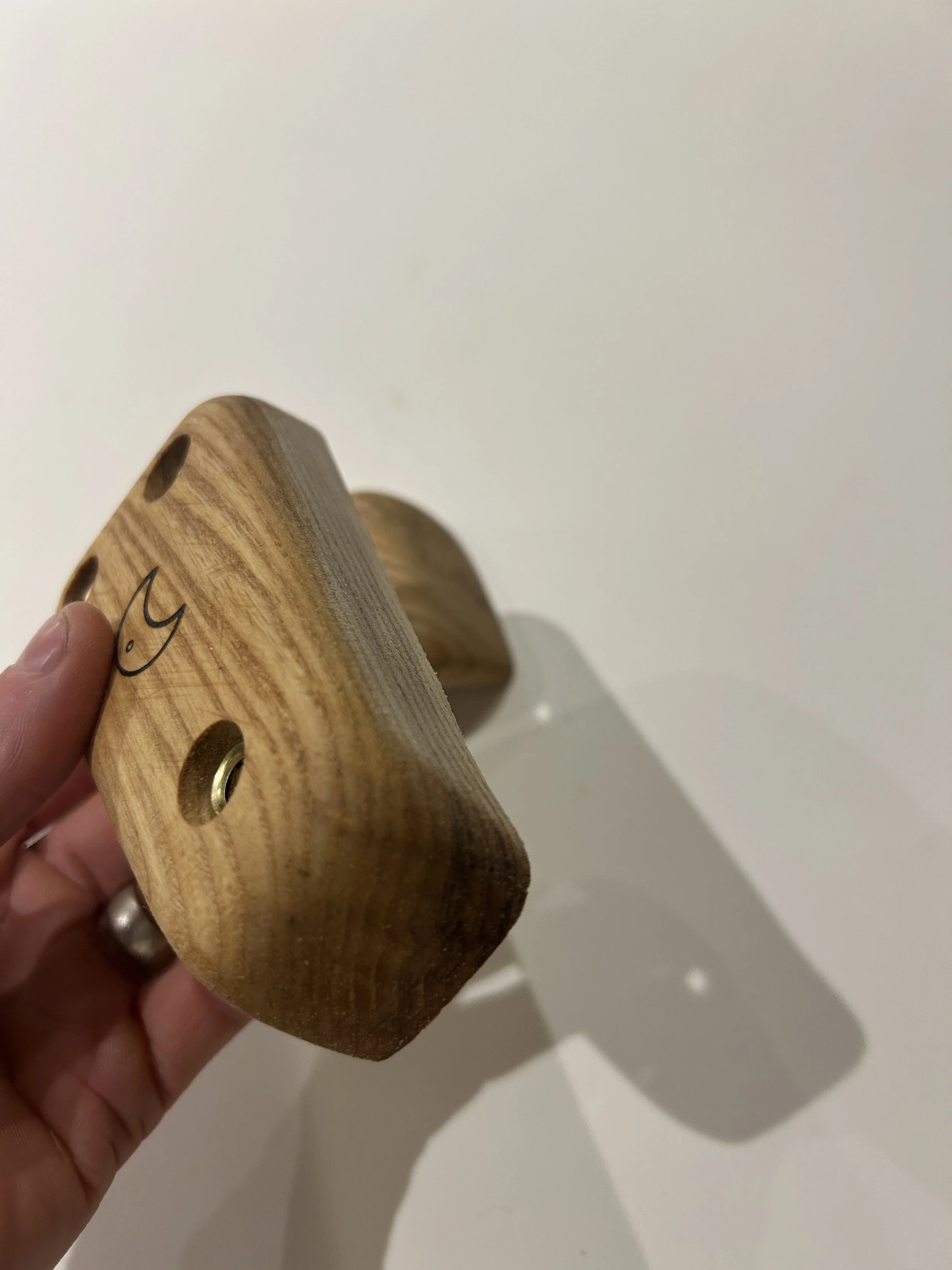 Beautiful handmade wooden climbing holds, brushes and training equipment.
