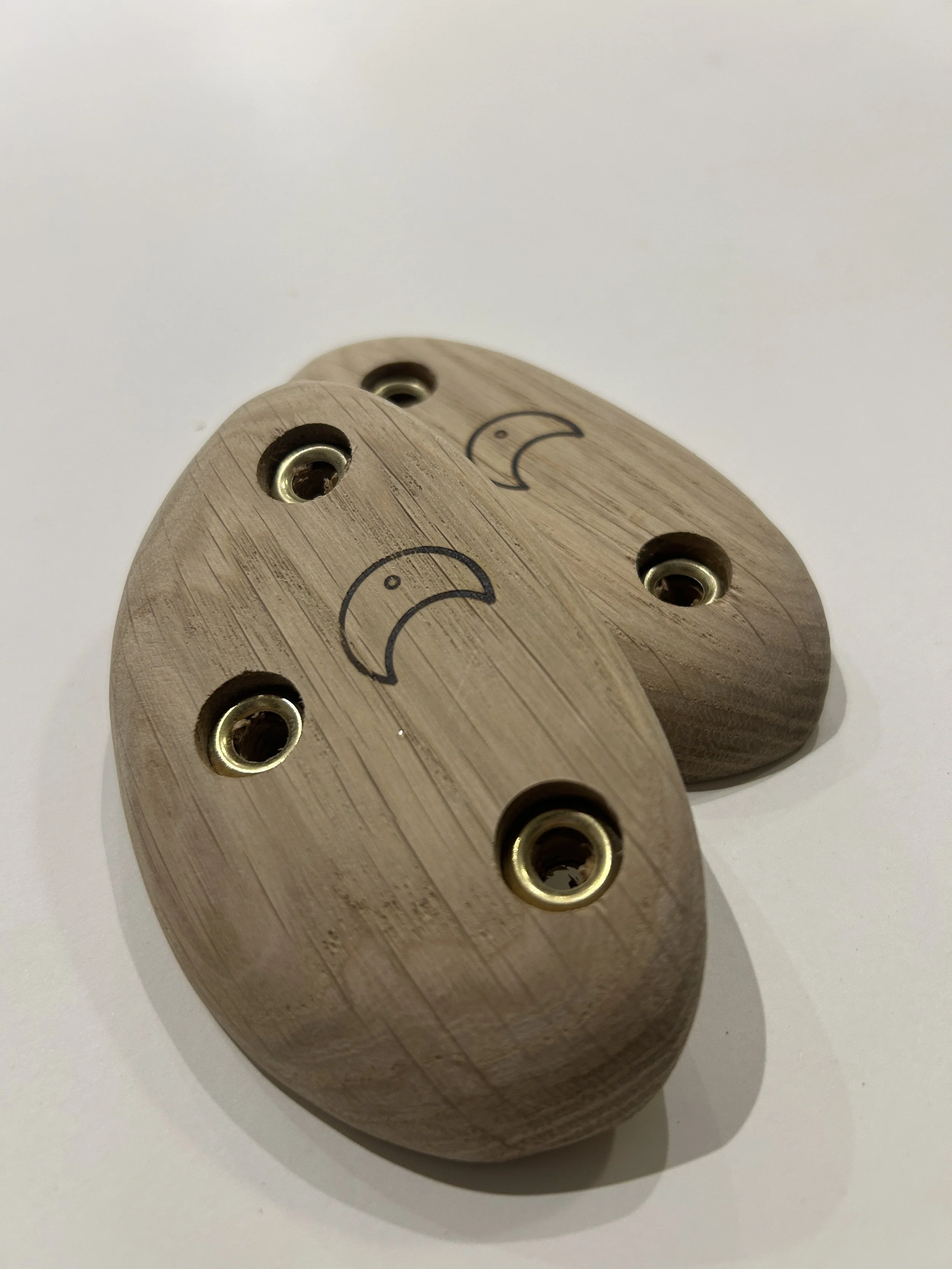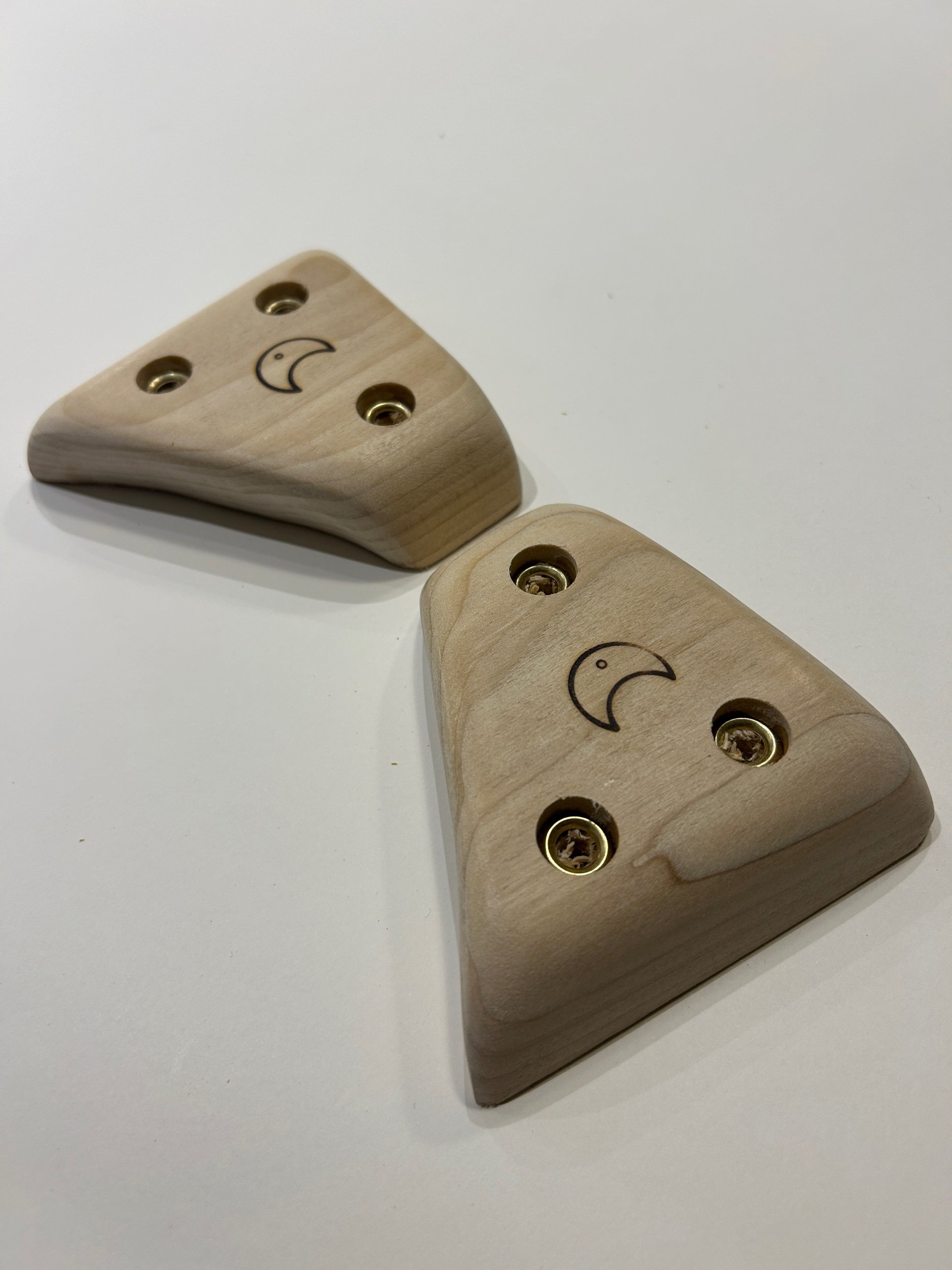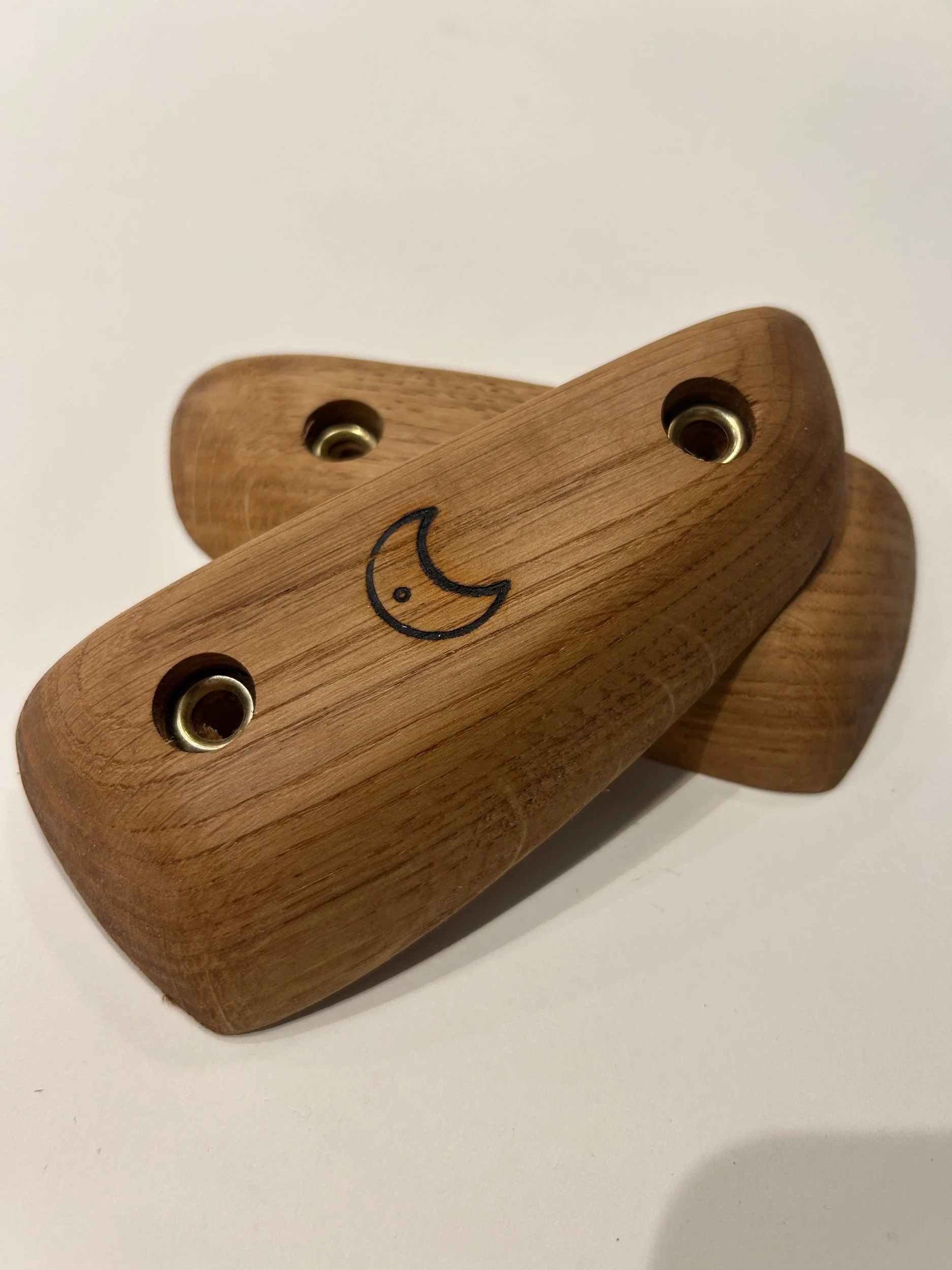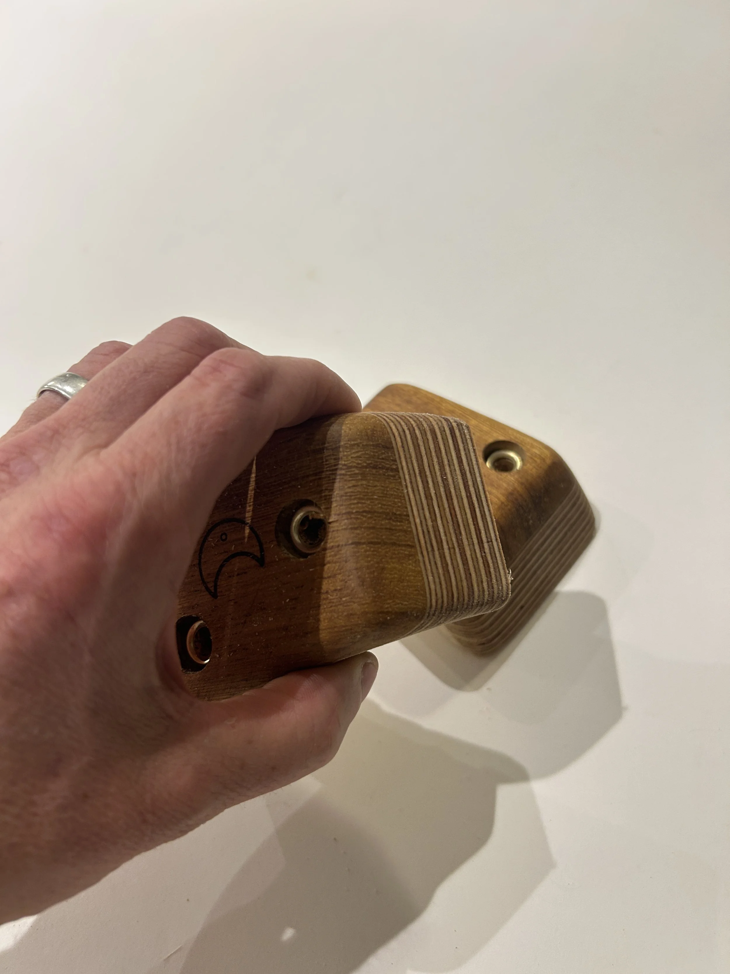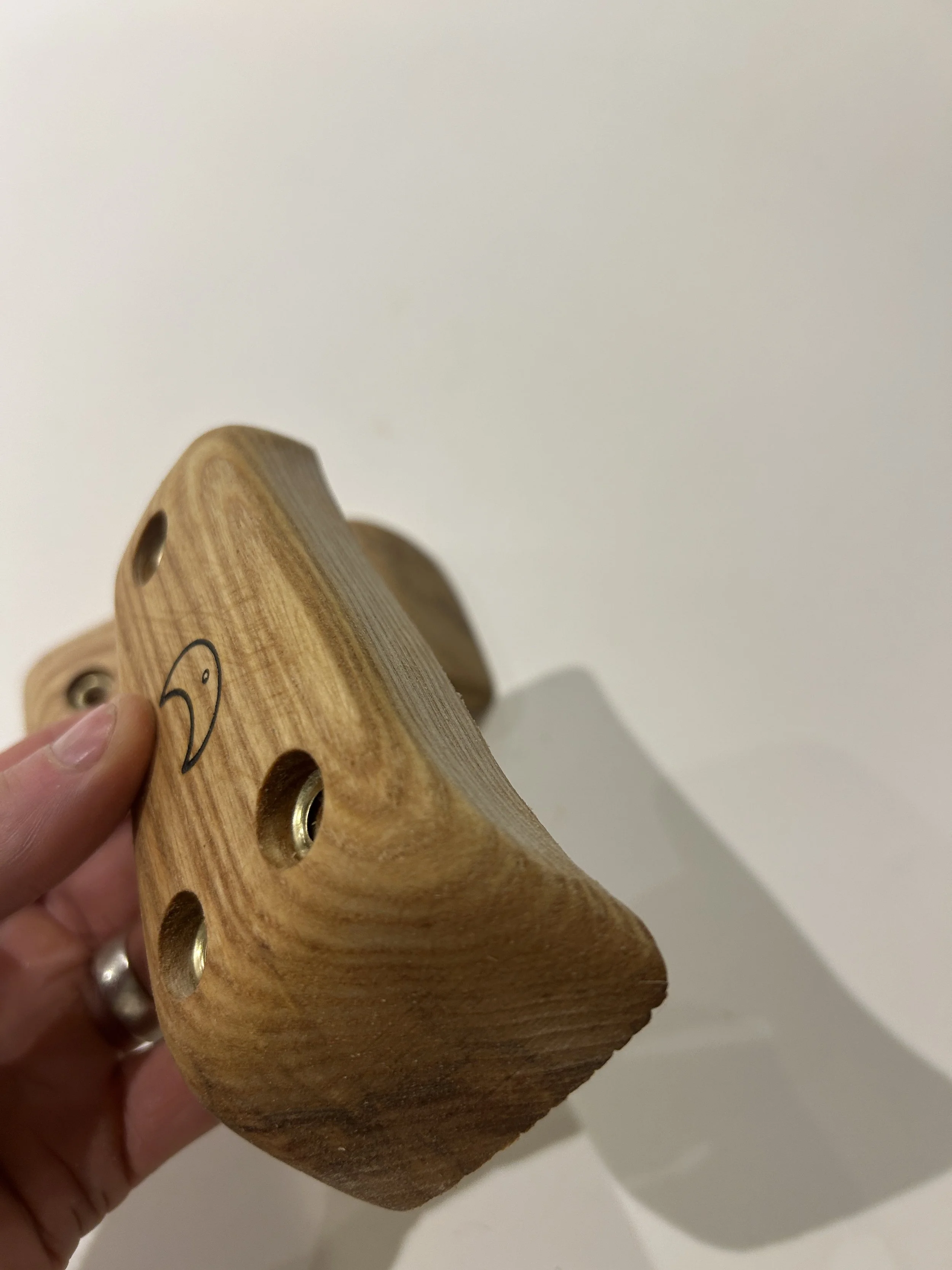 Beautiful handmade wooden climbing holds, brushes and training equipment.