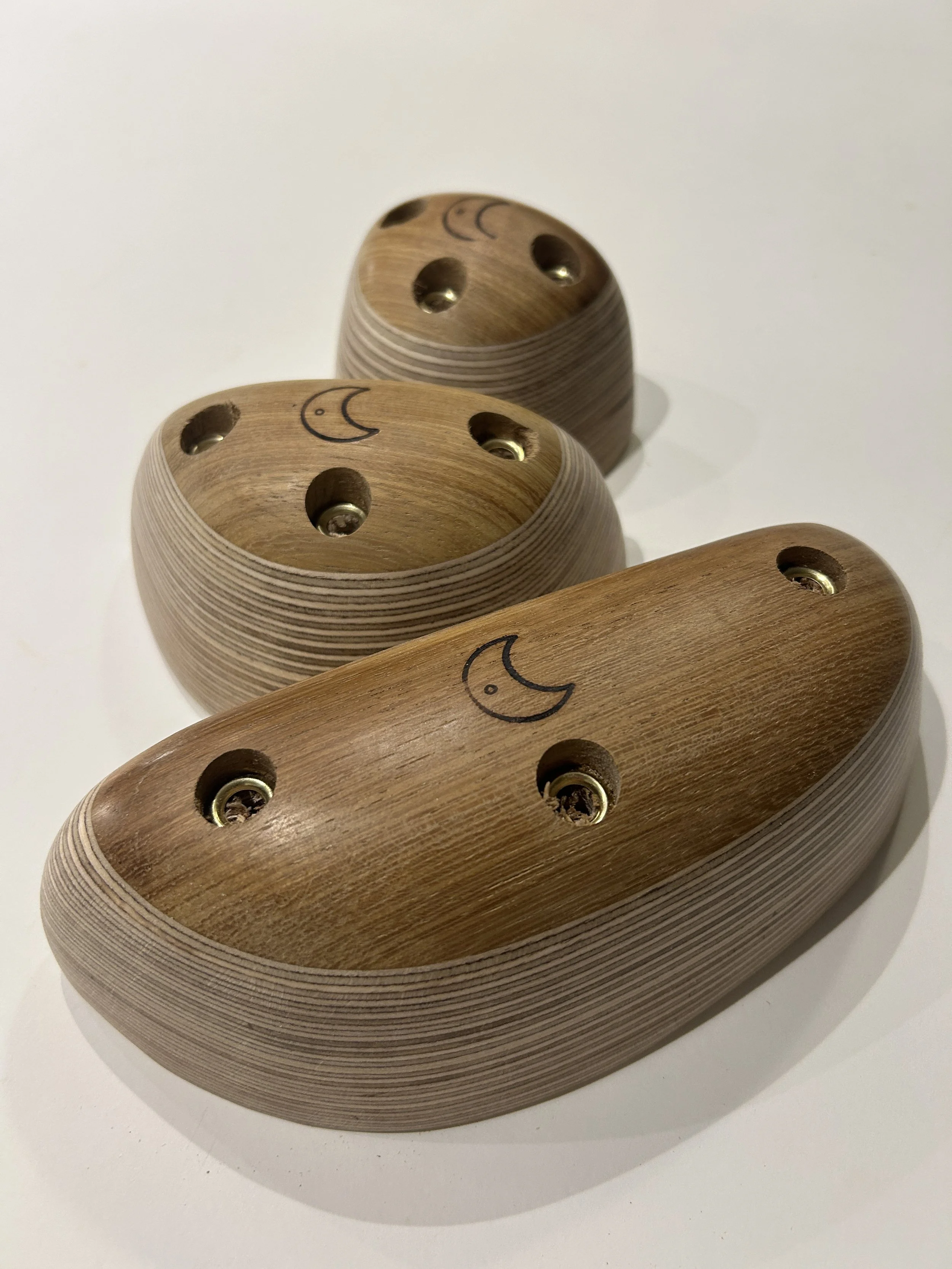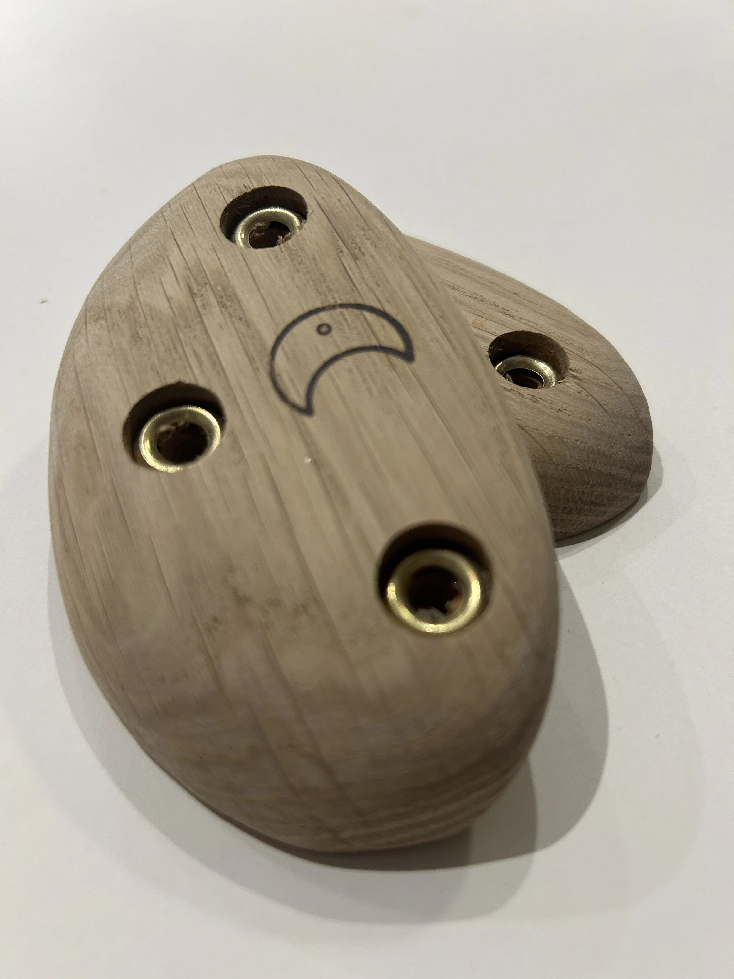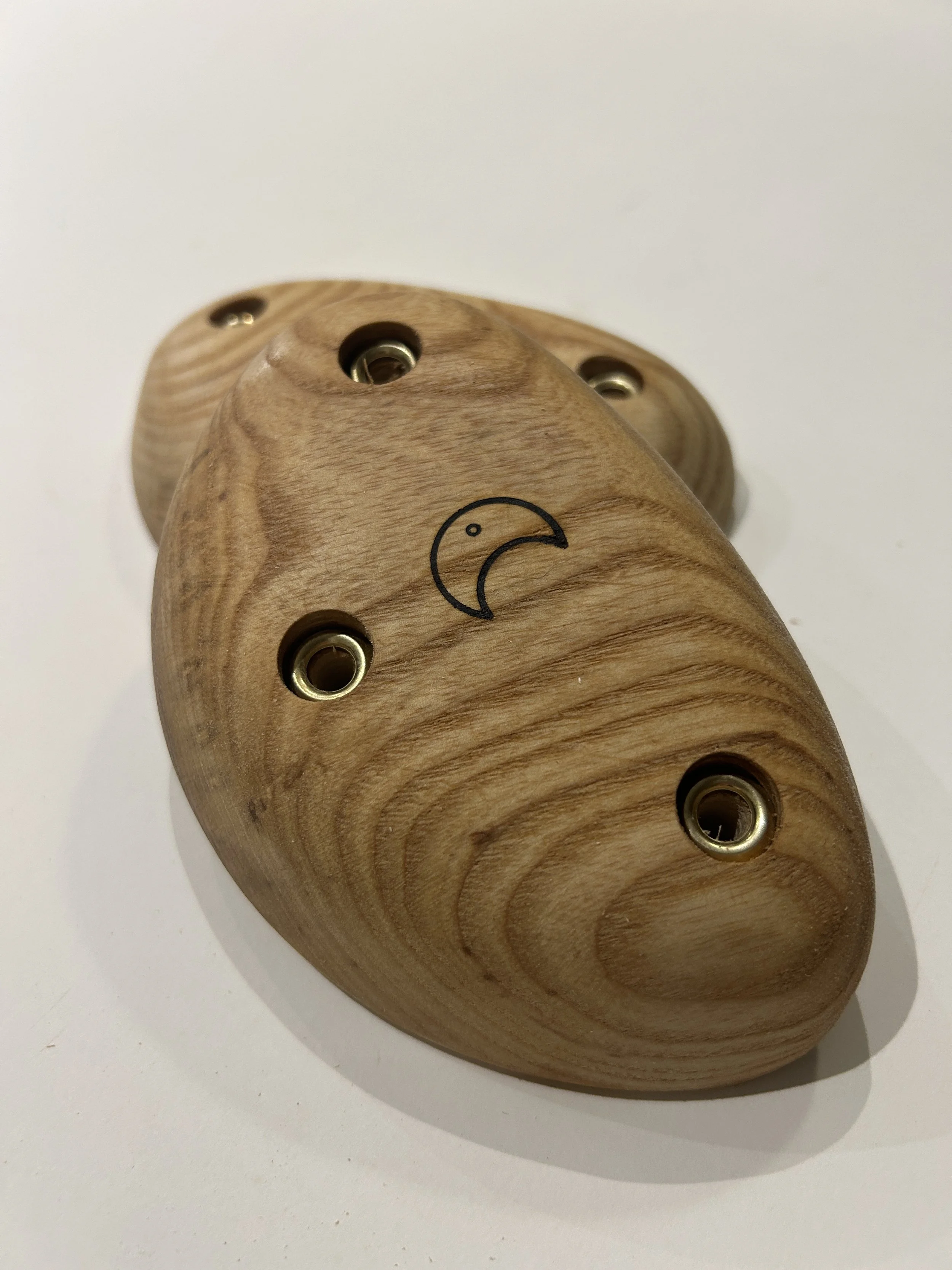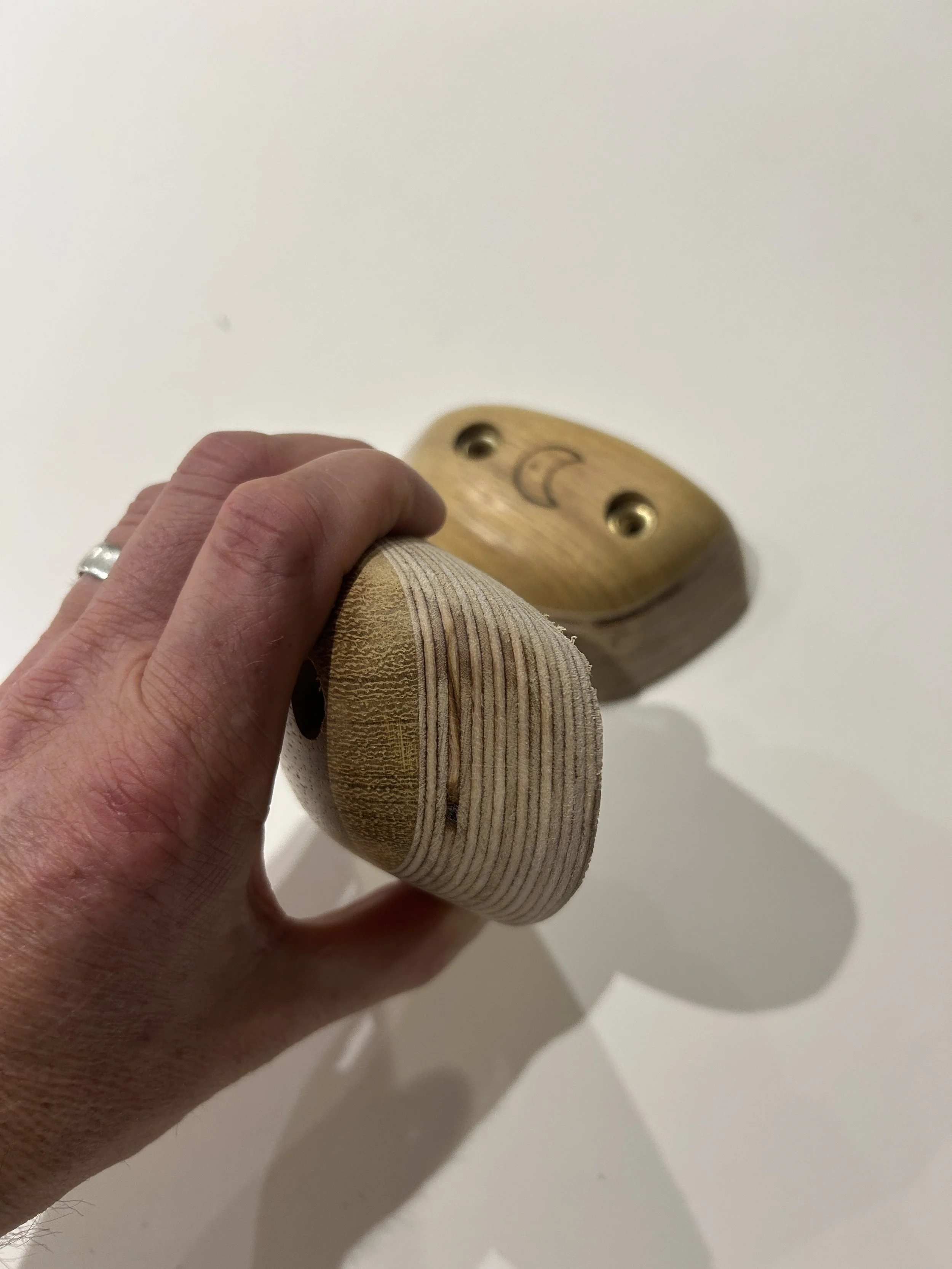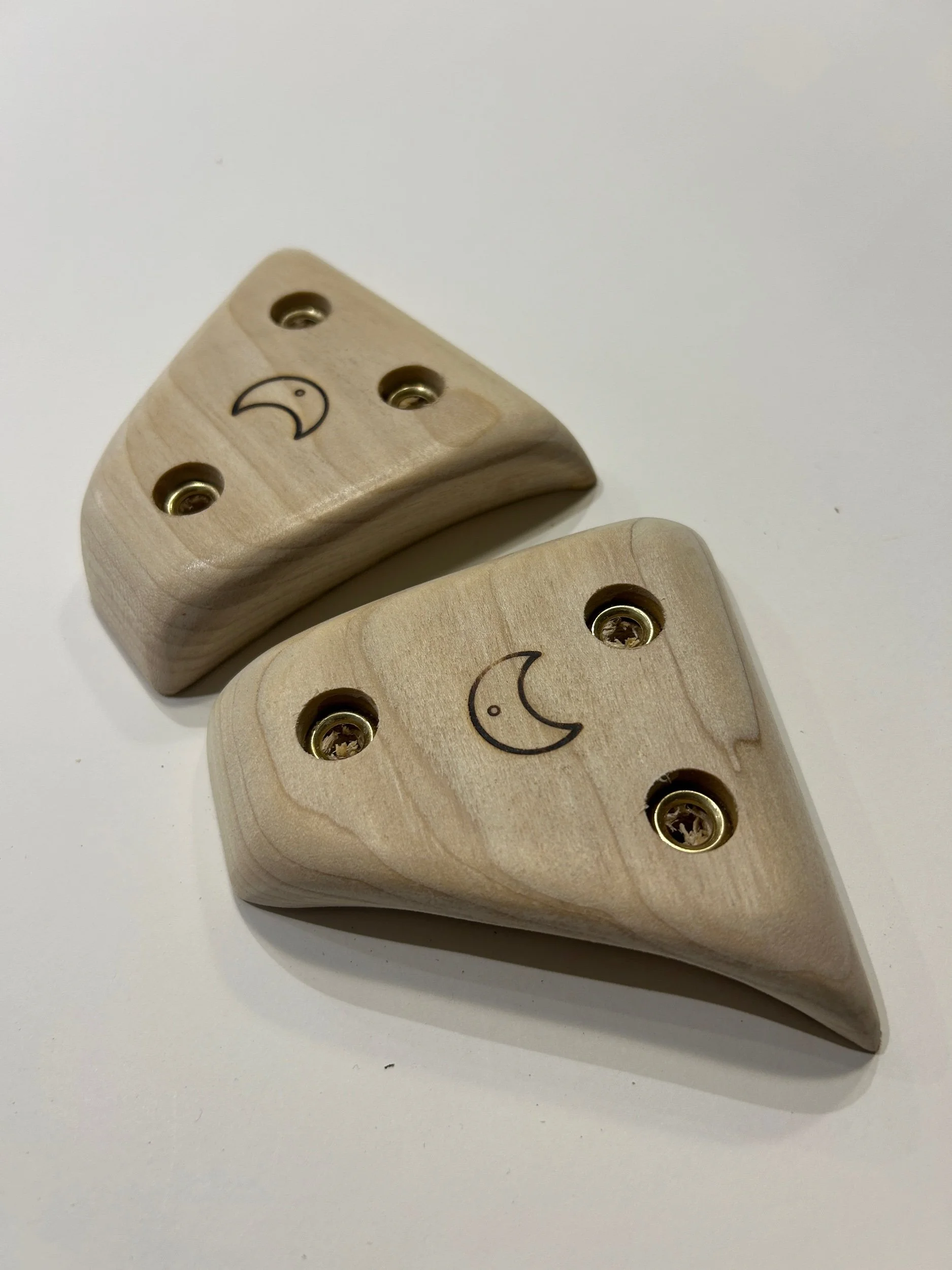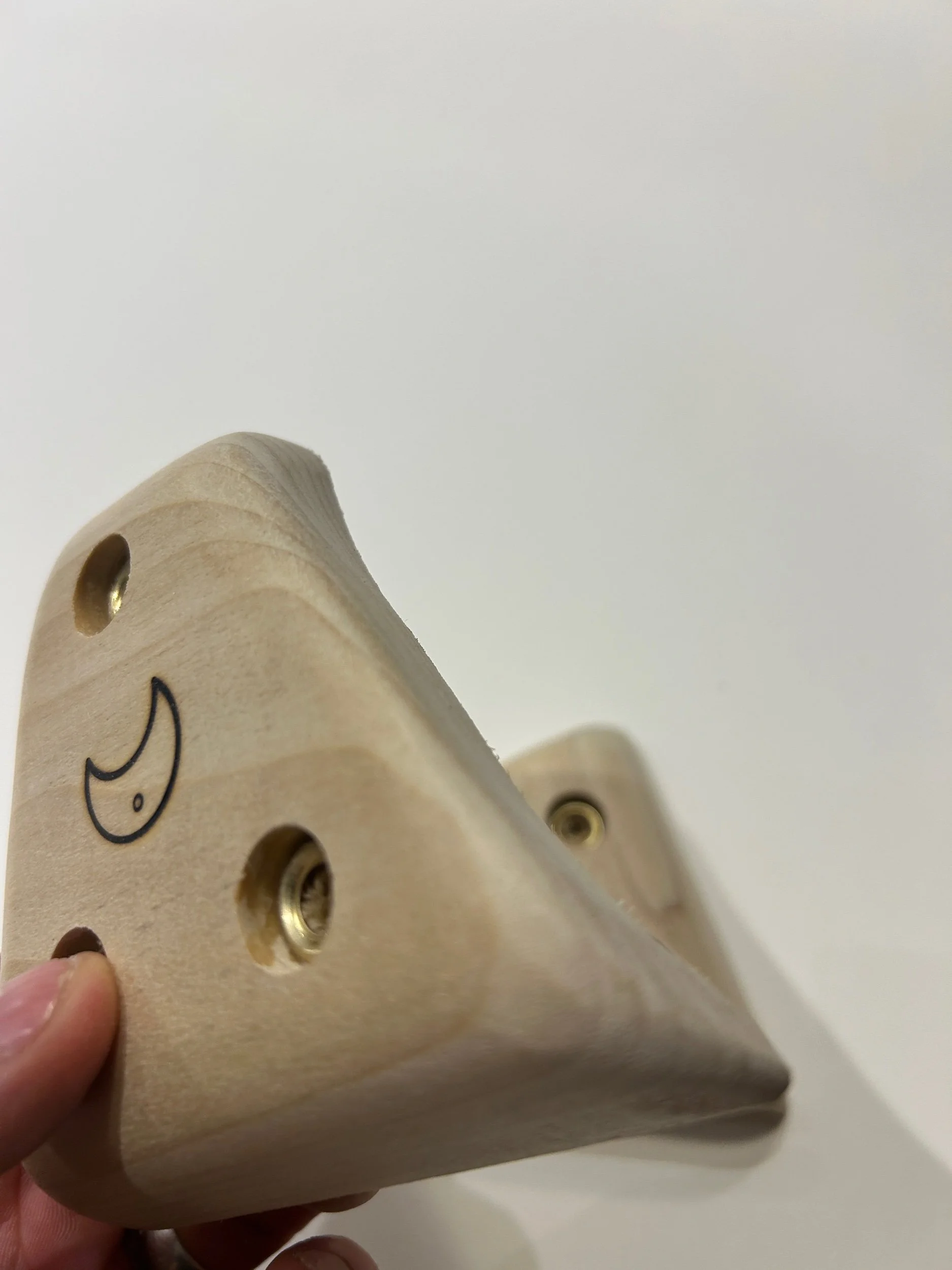 Beautiful handmade wooden climbing holds, brushes and training equipment.