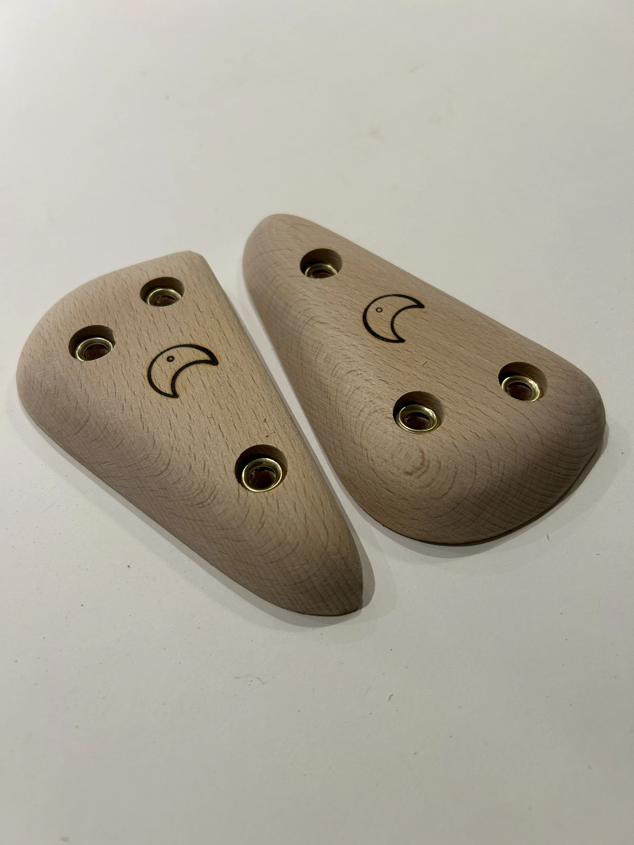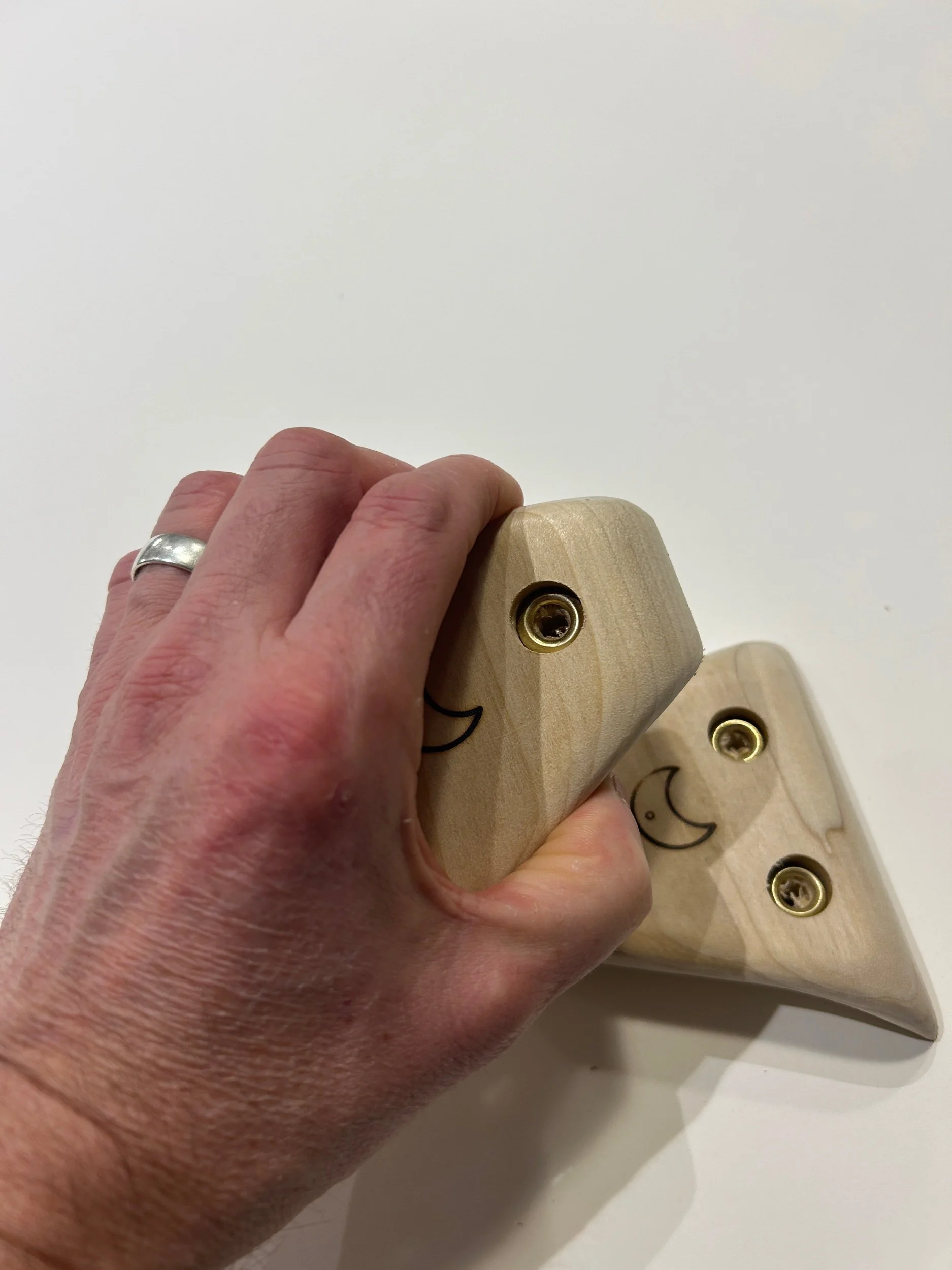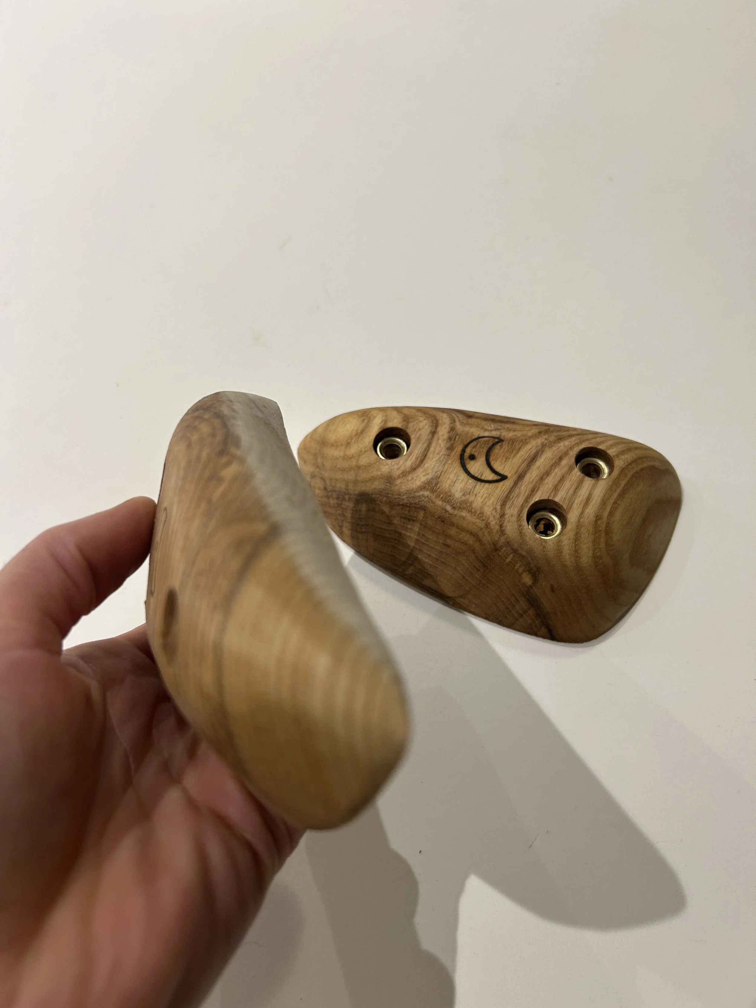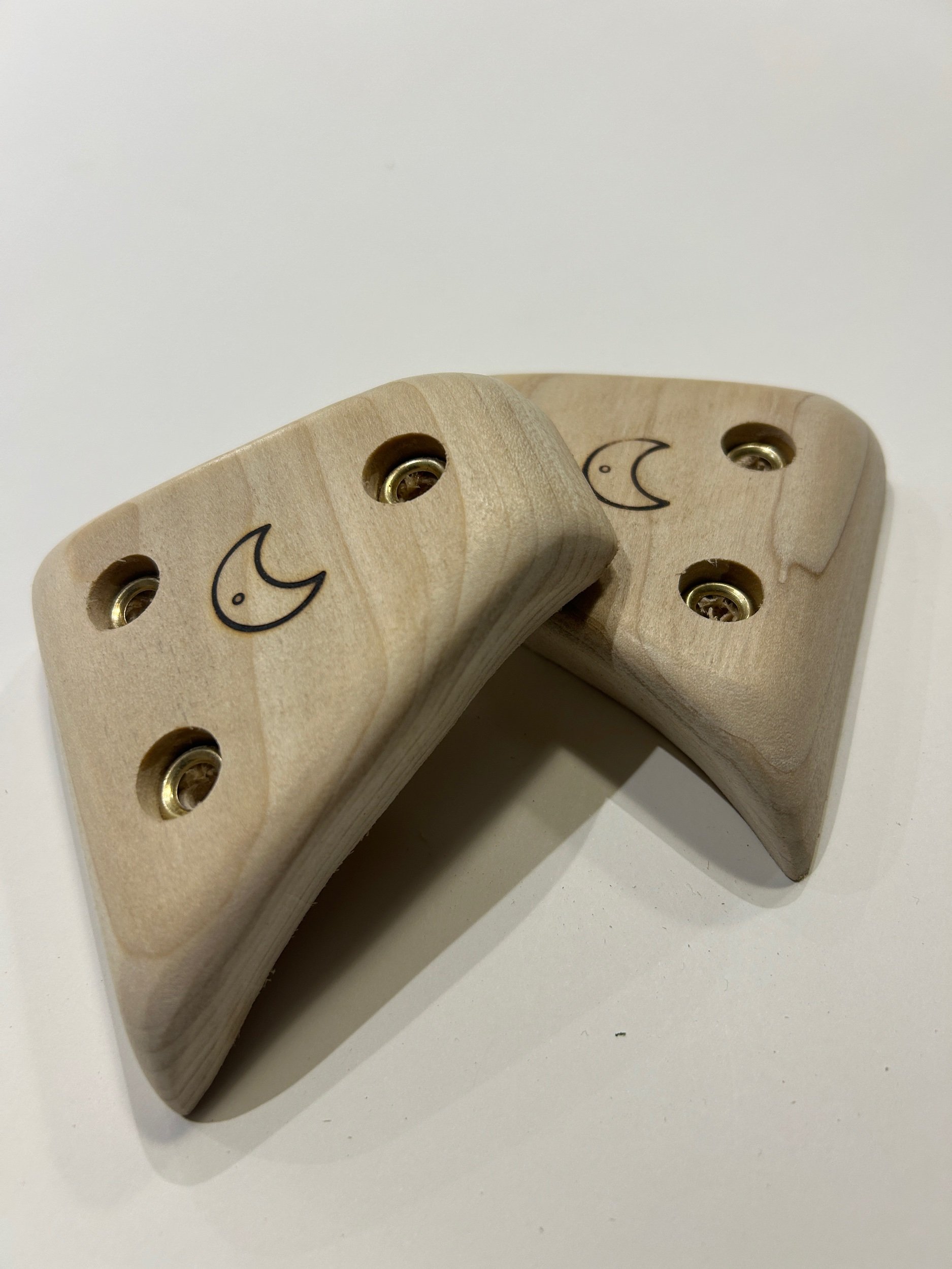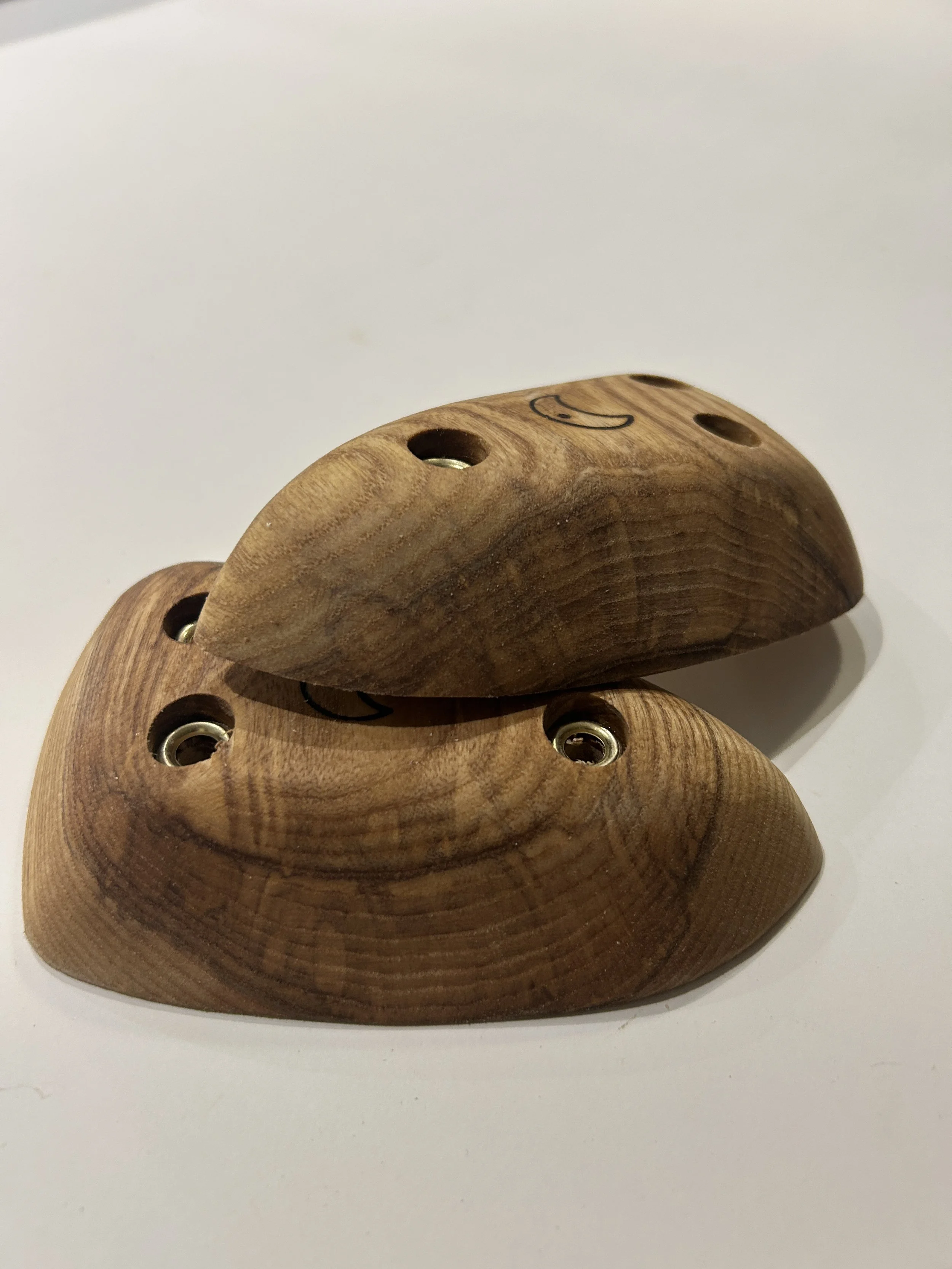 Beautiful handmade wooden climbing holds, brushes and training equipment.