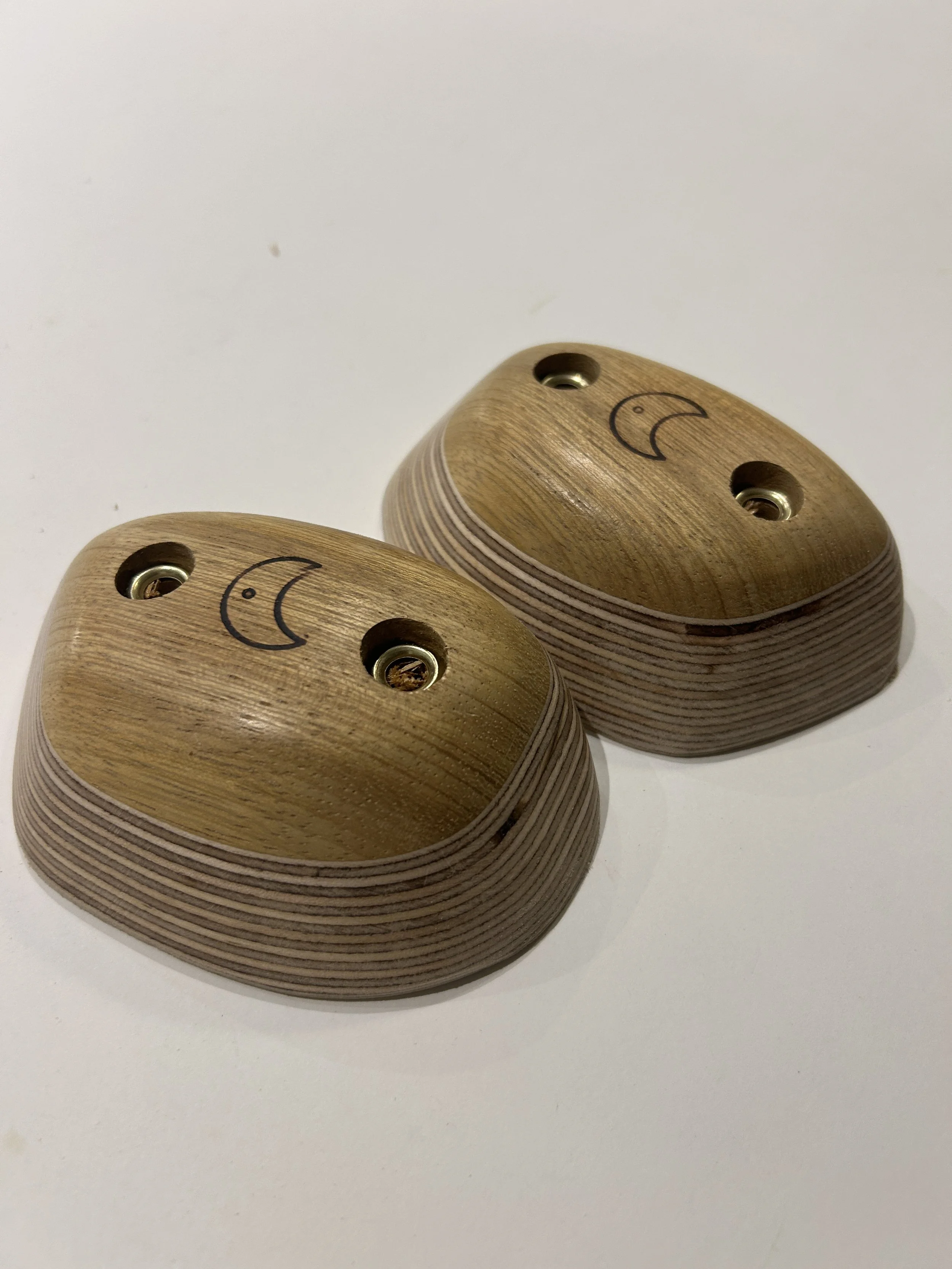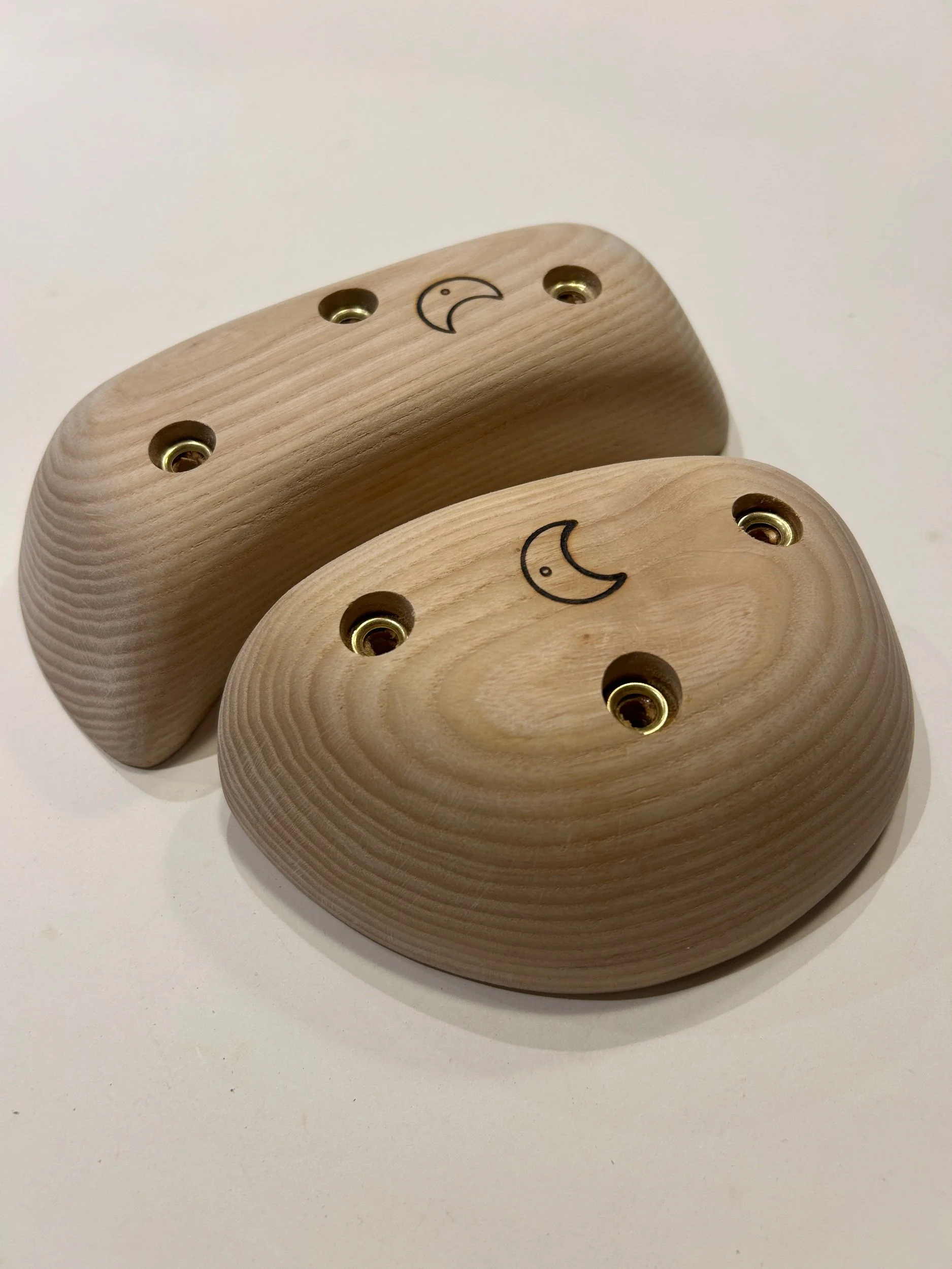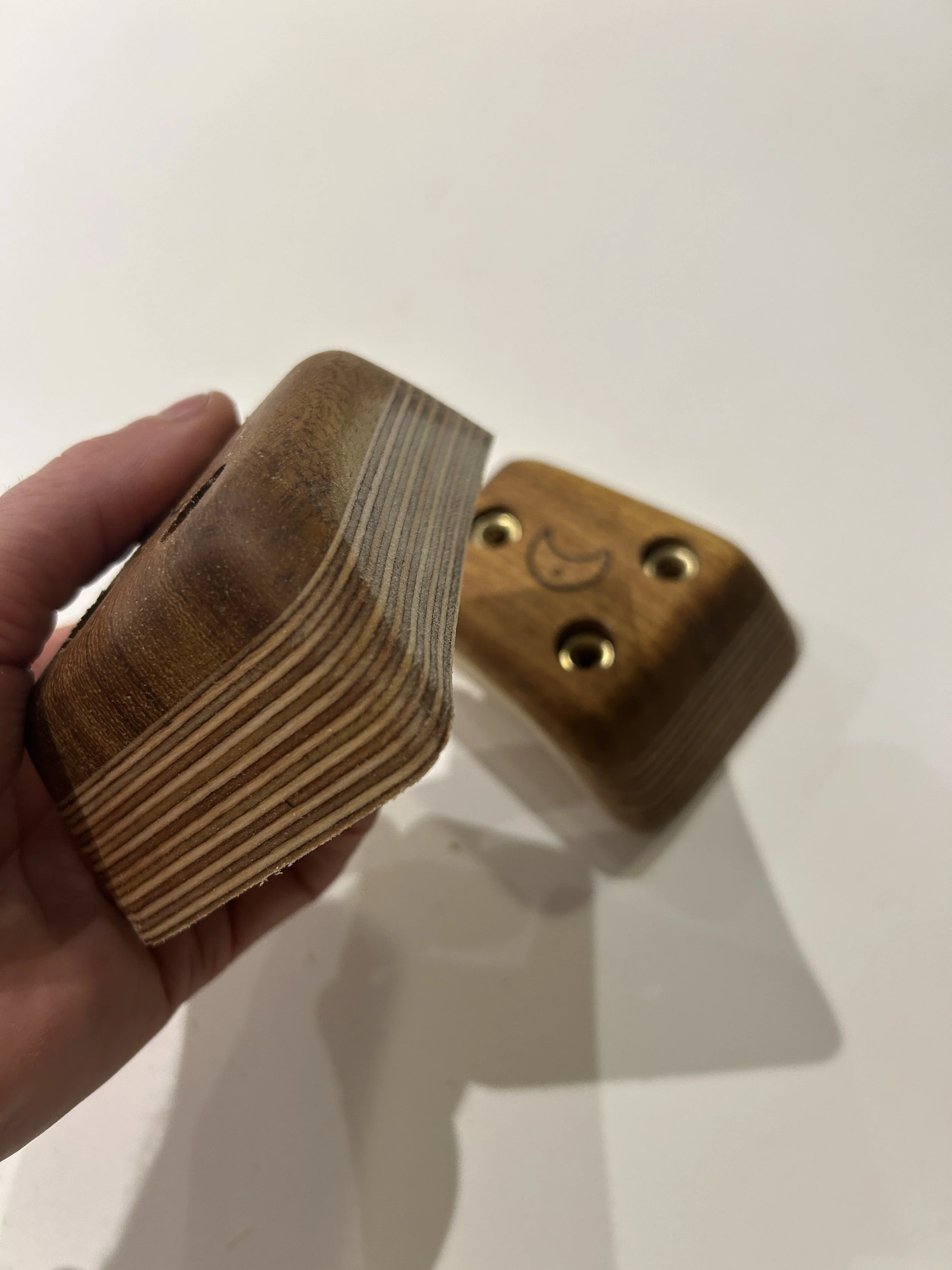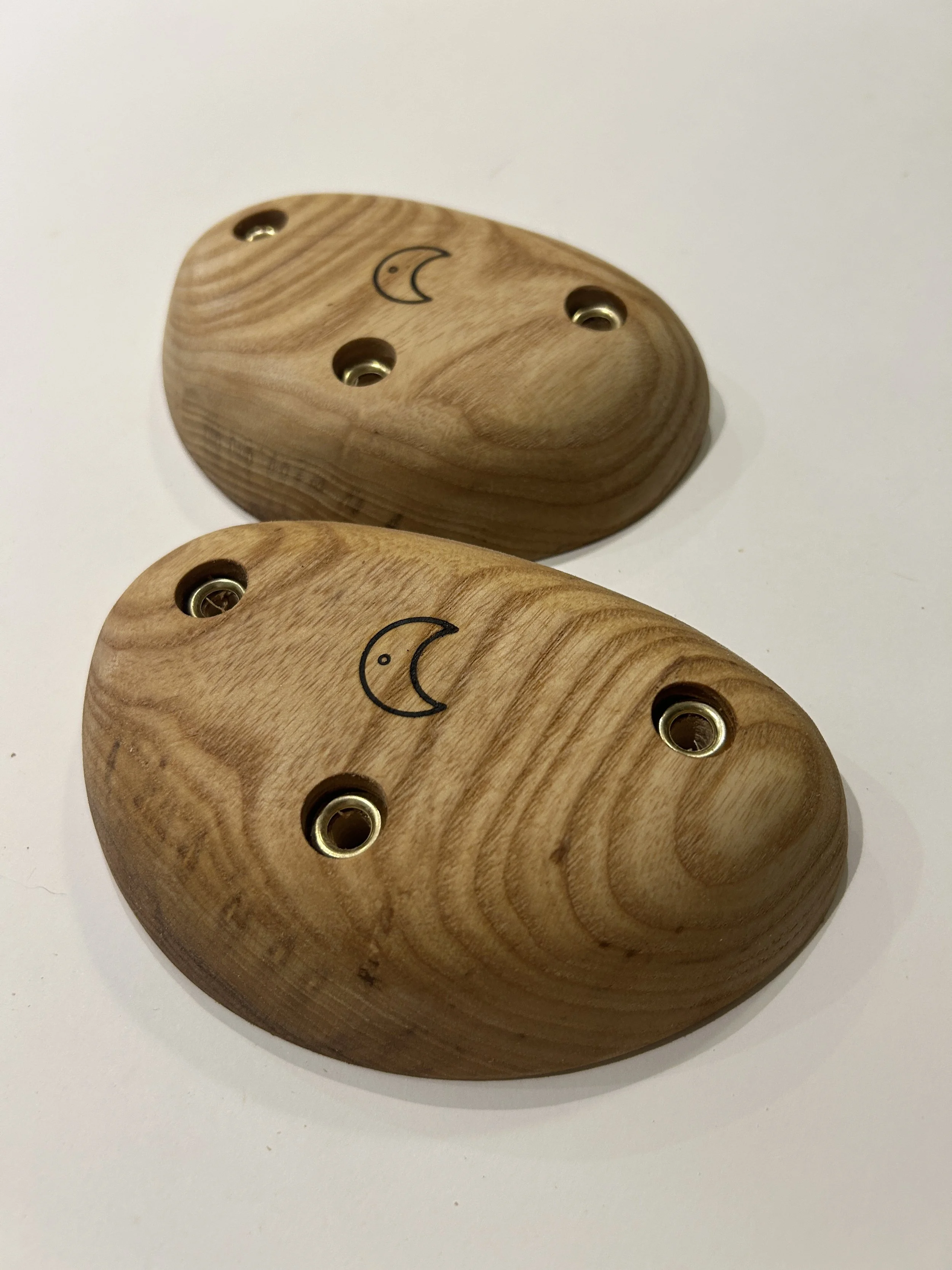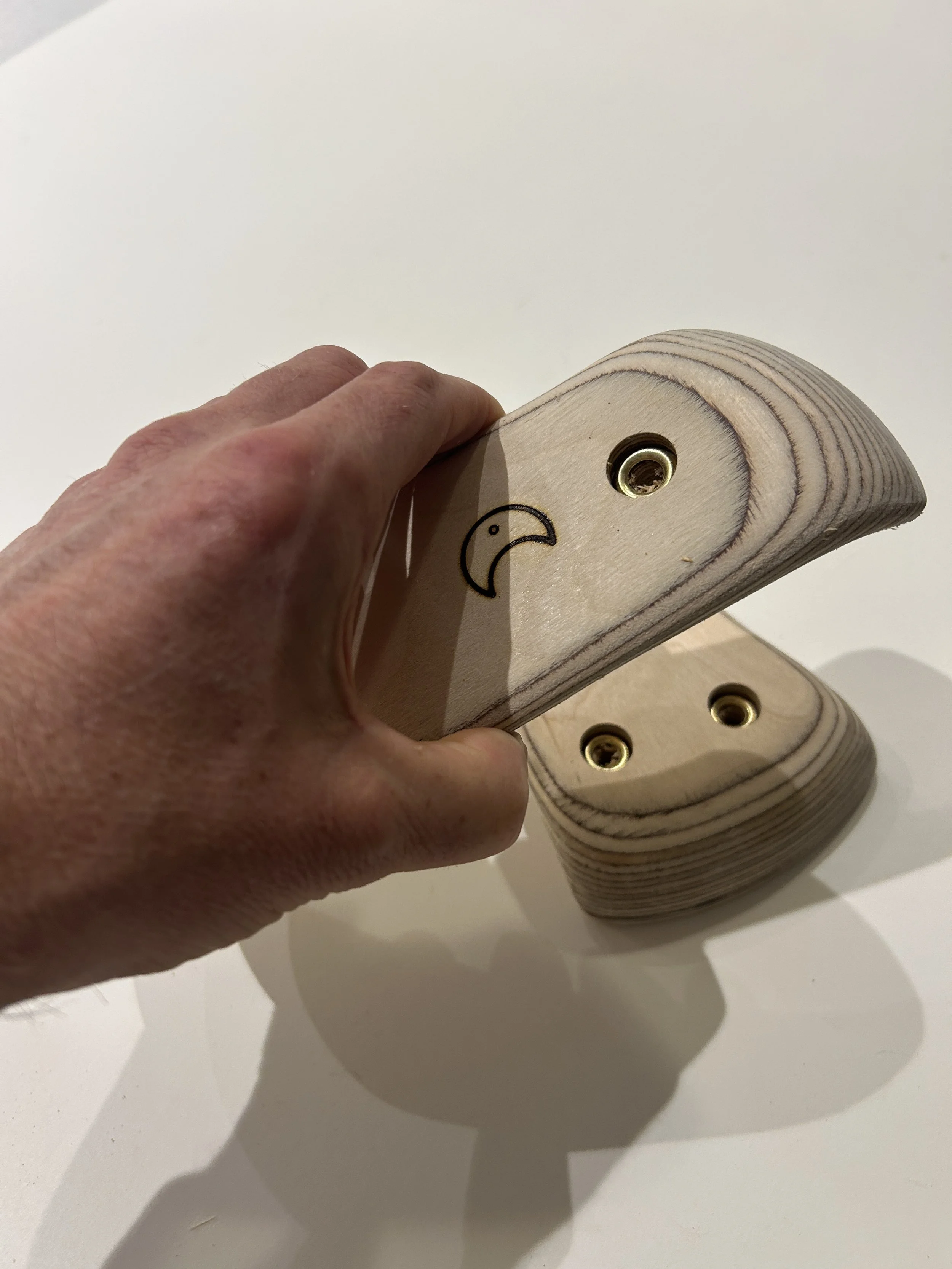 Beautiful handmade wooden climbing holds, brushes and training equipment.