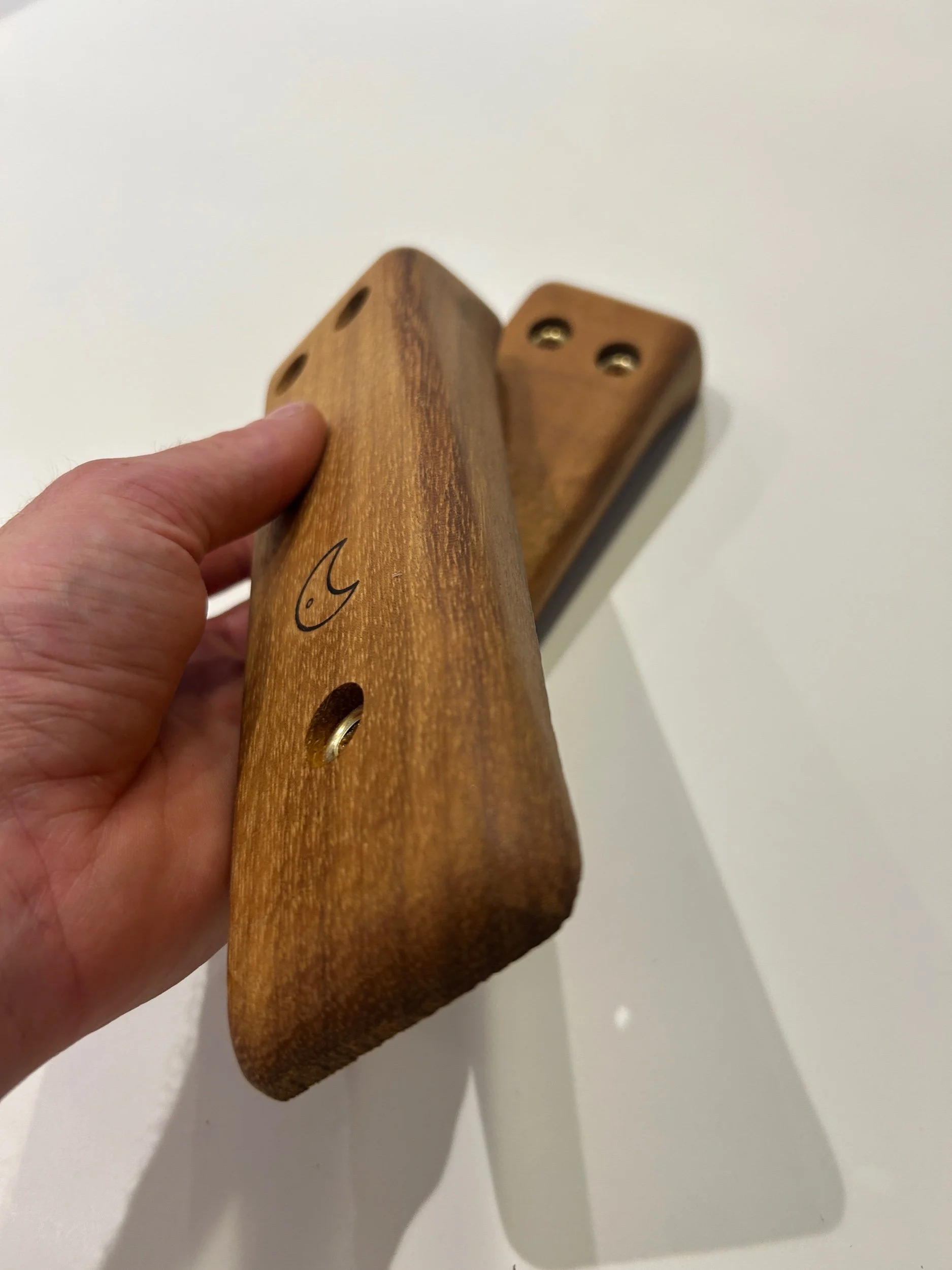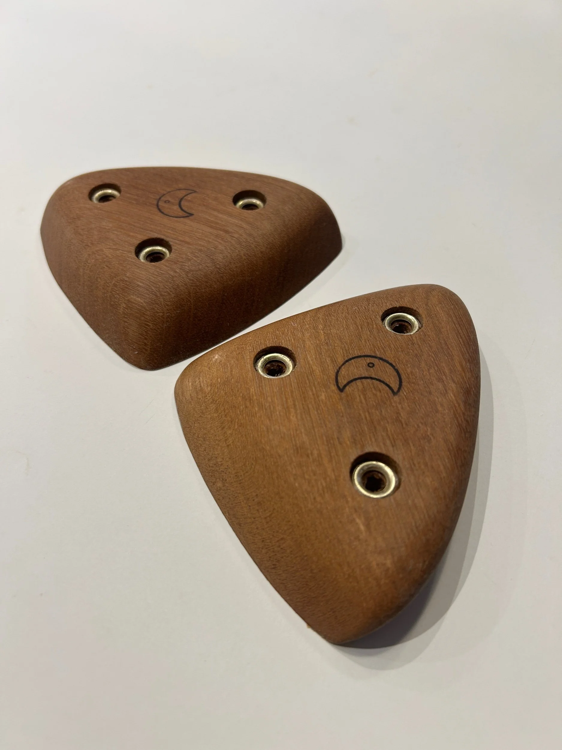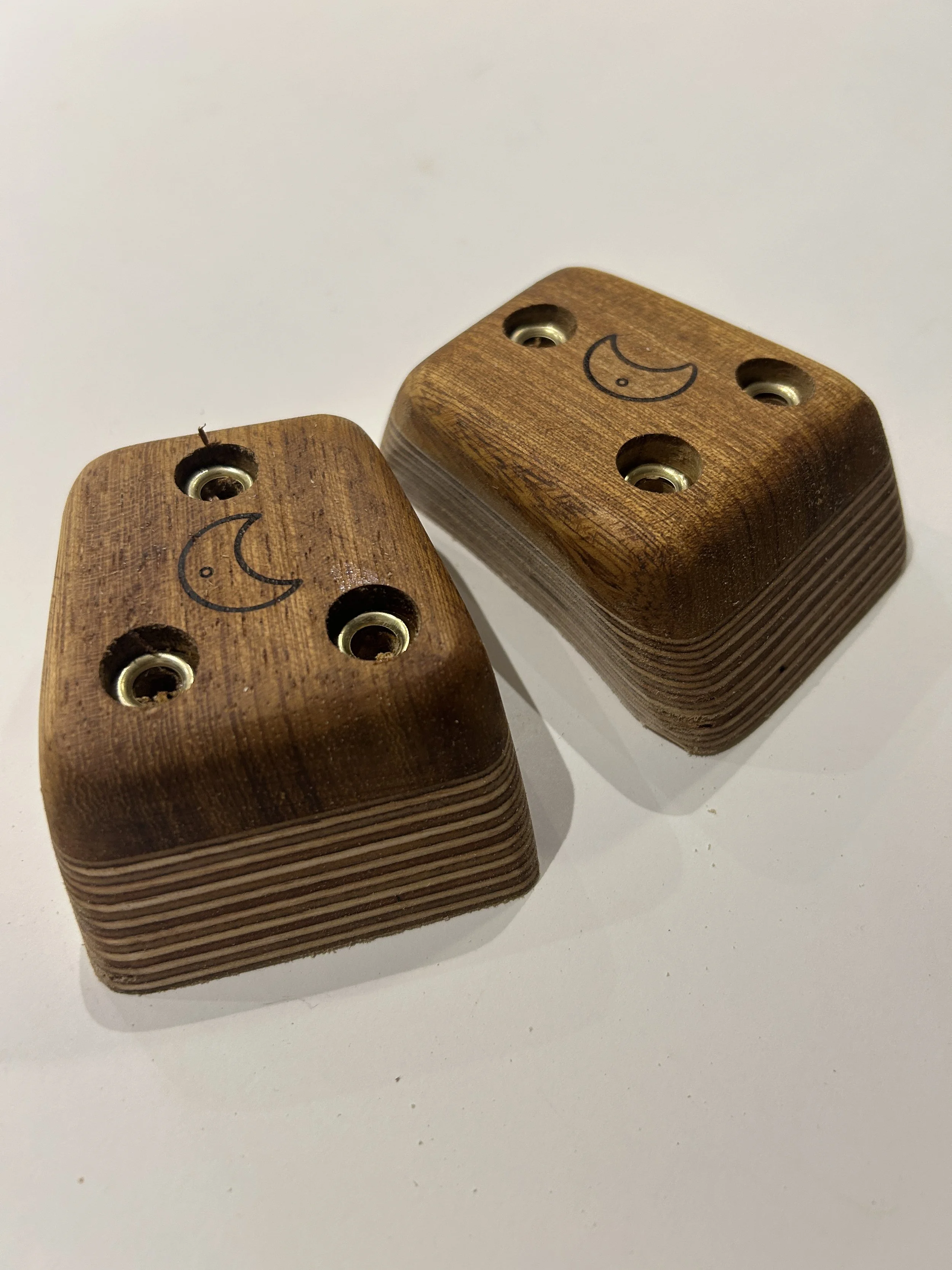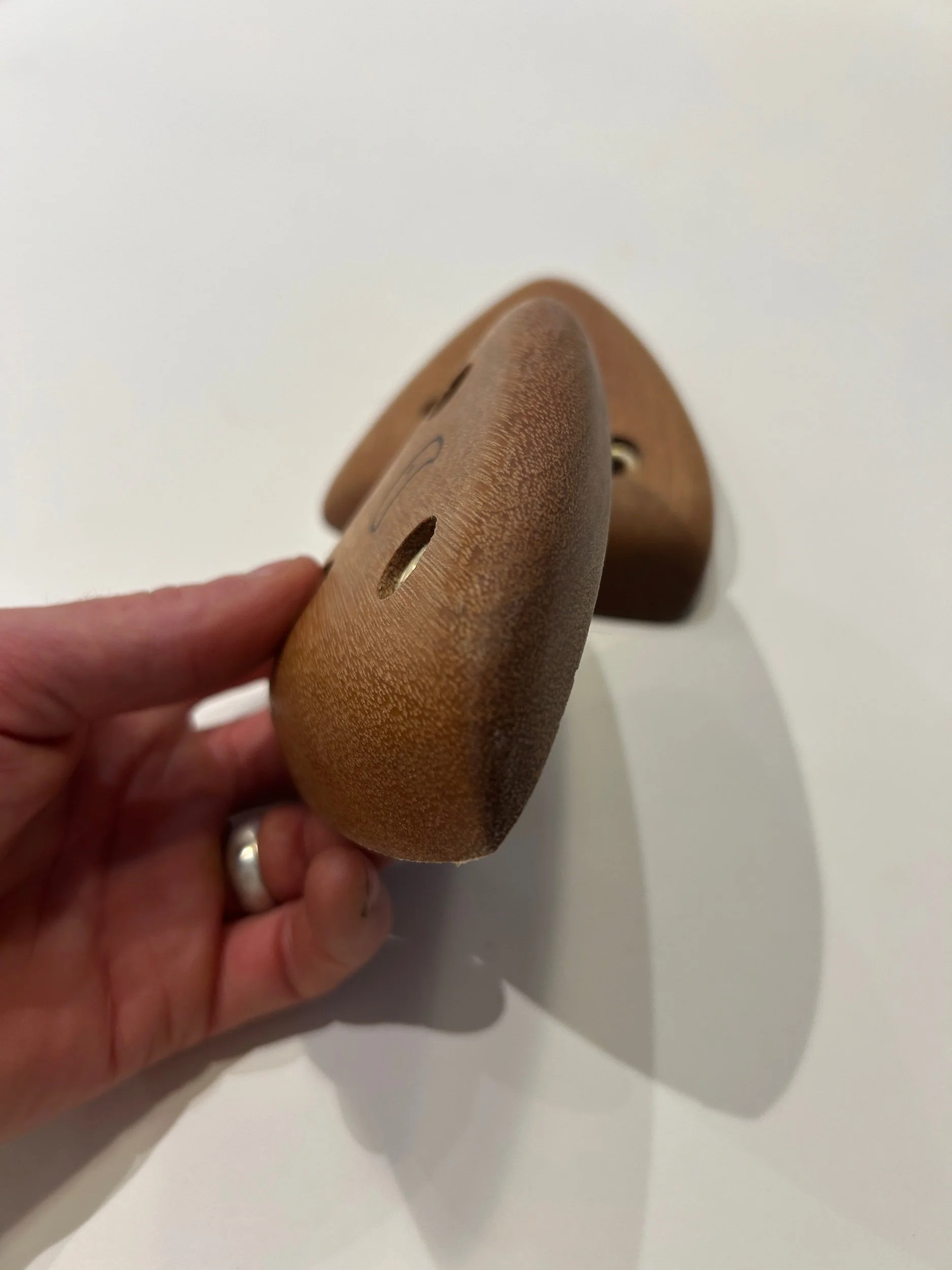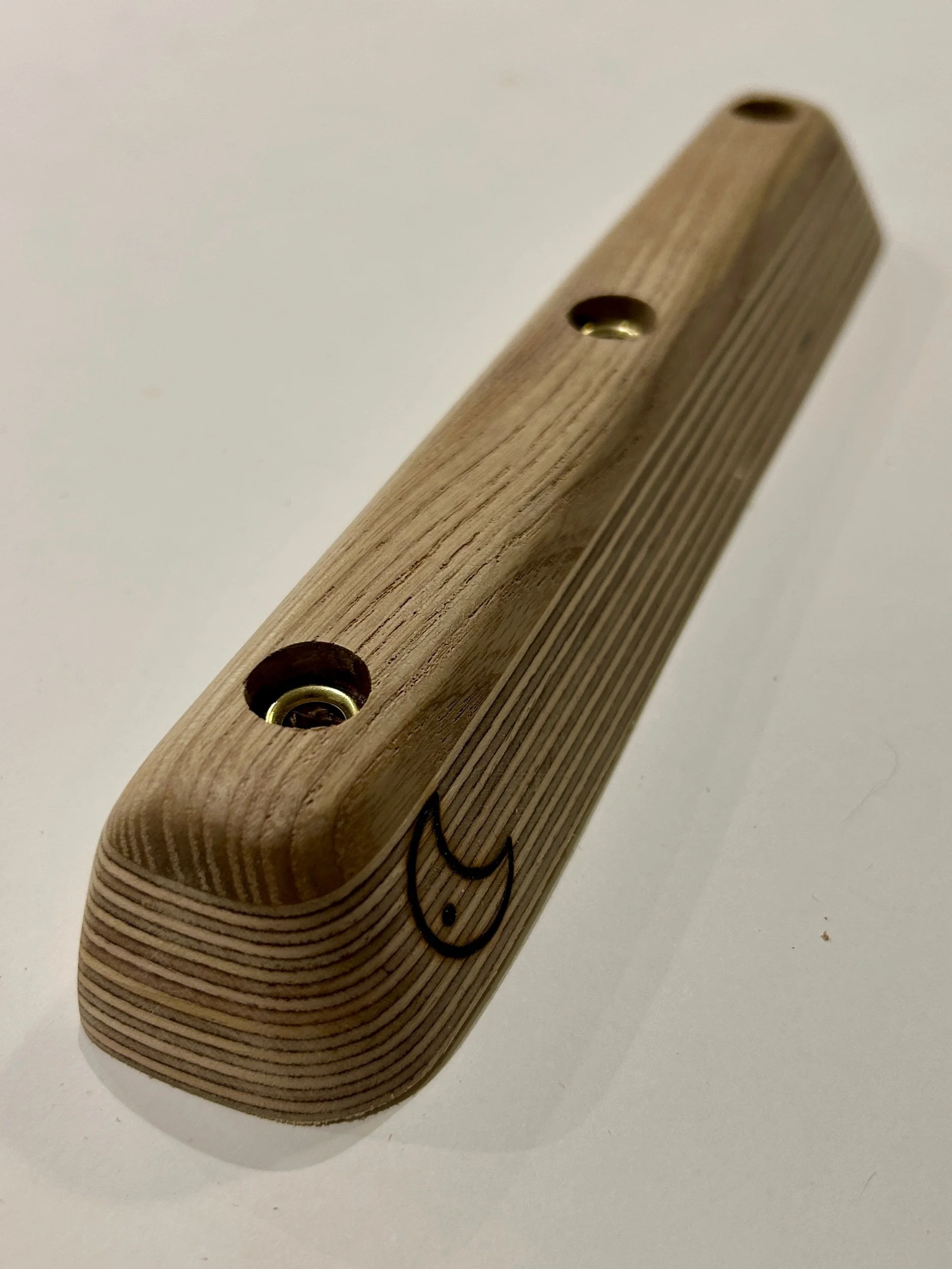 Beautiful handmade wooden climbing holds, brushes and training equipment.