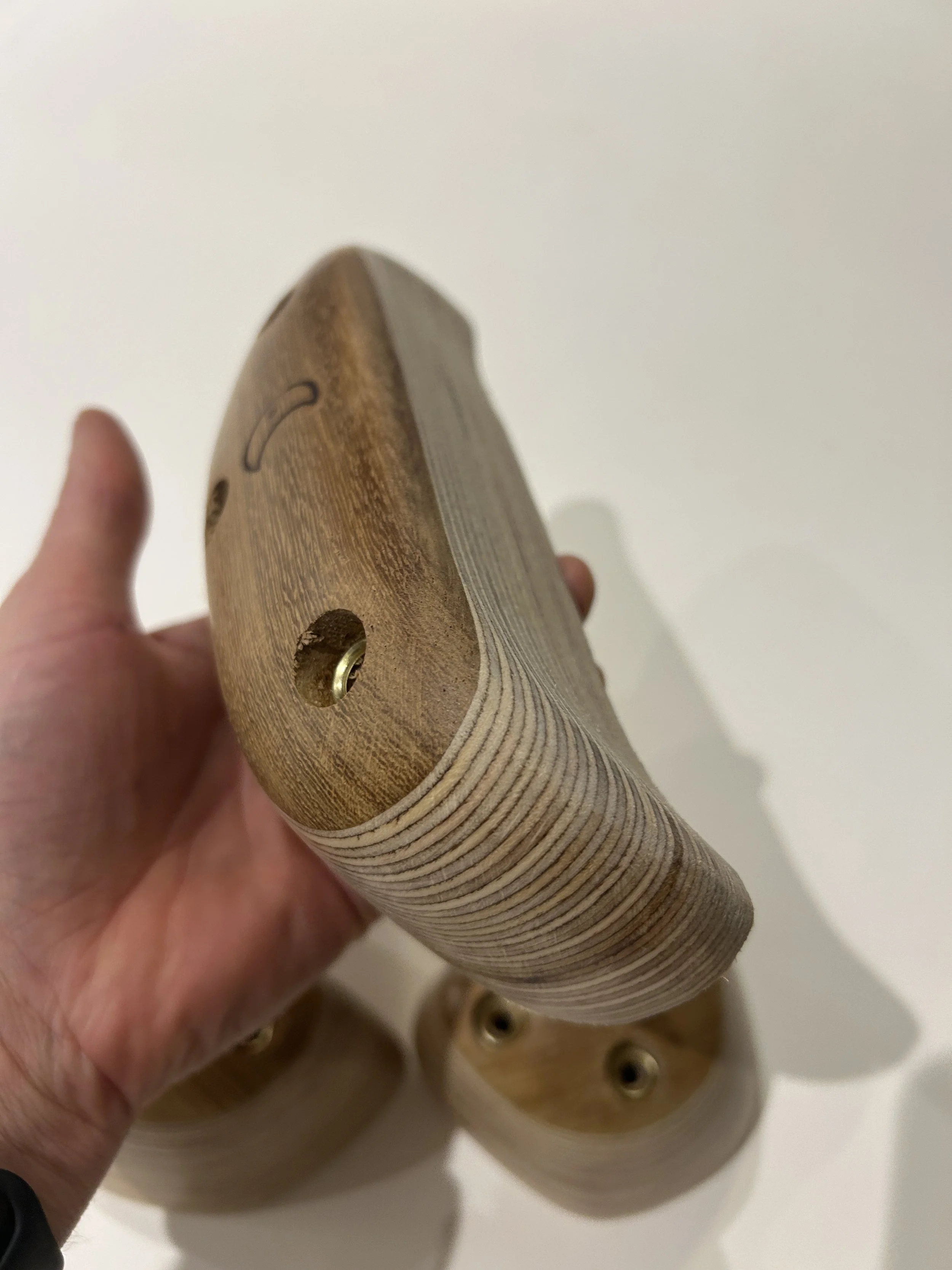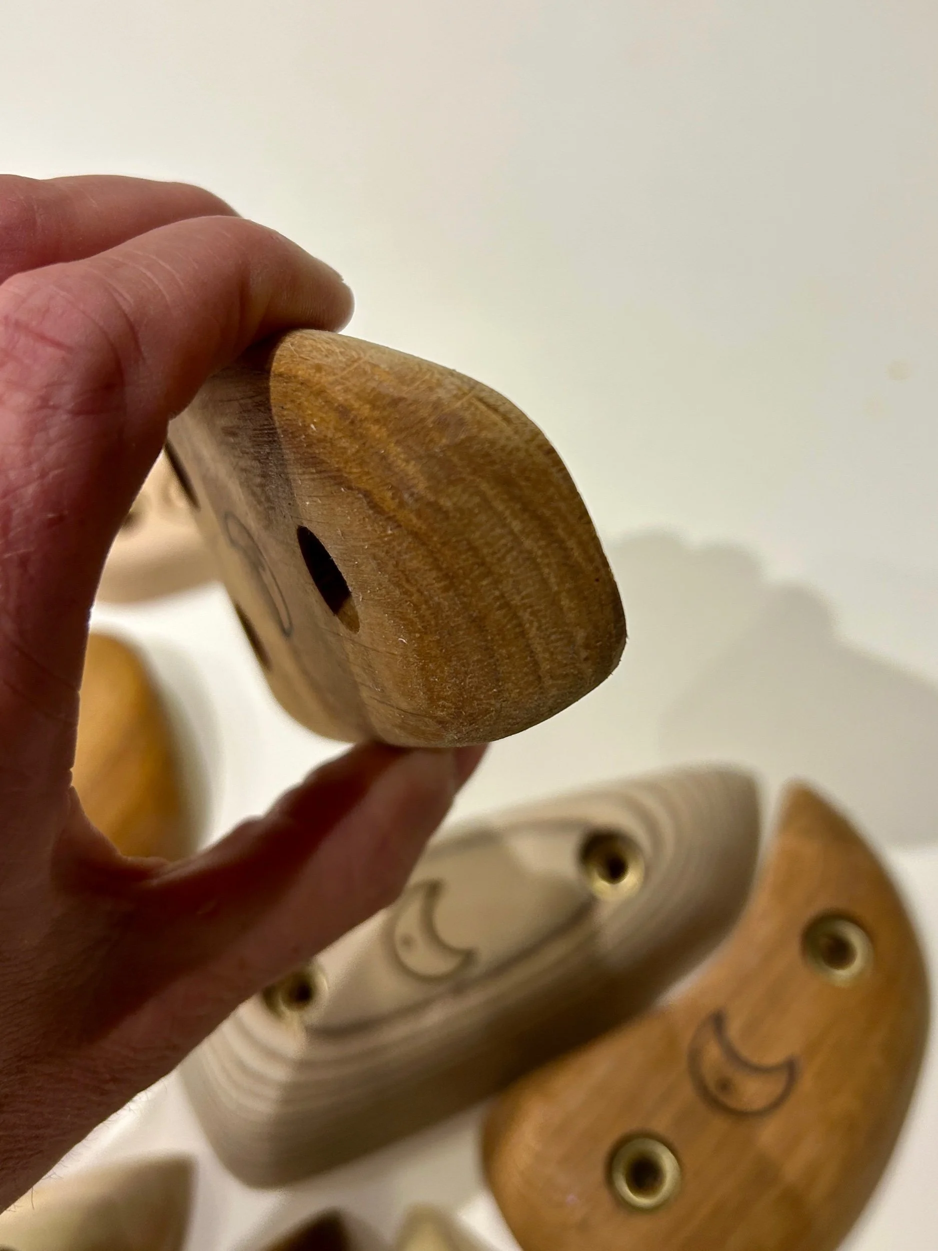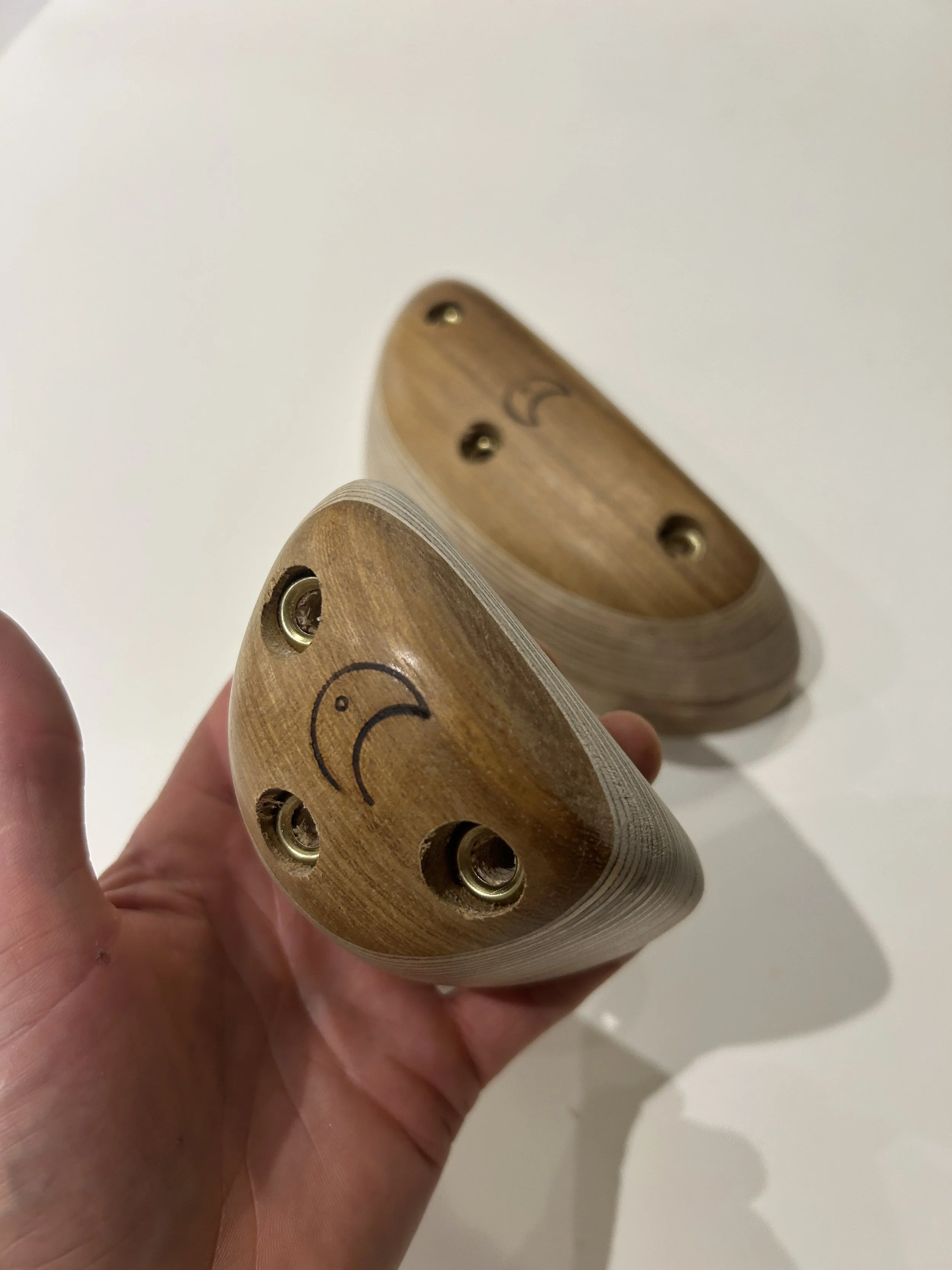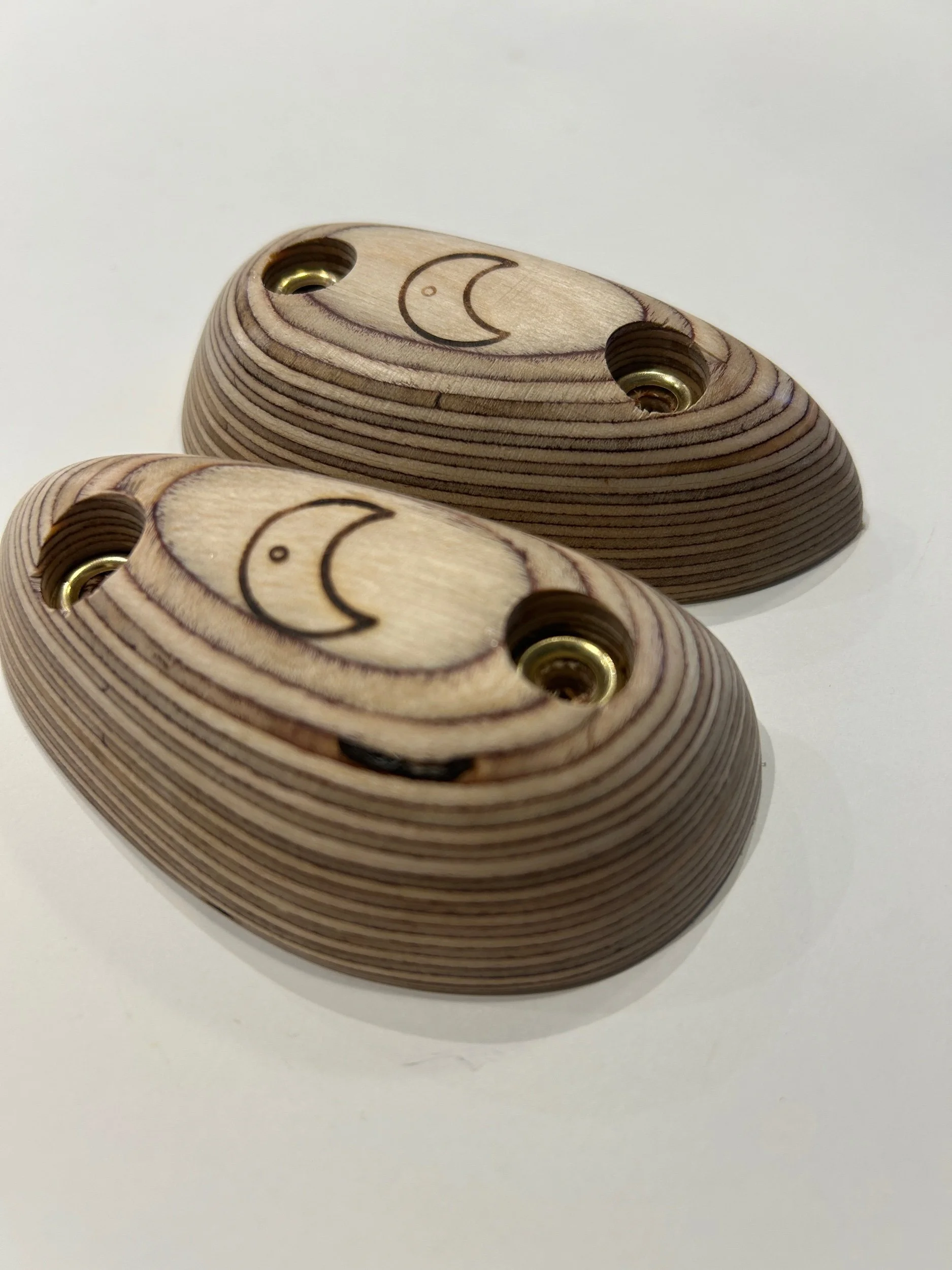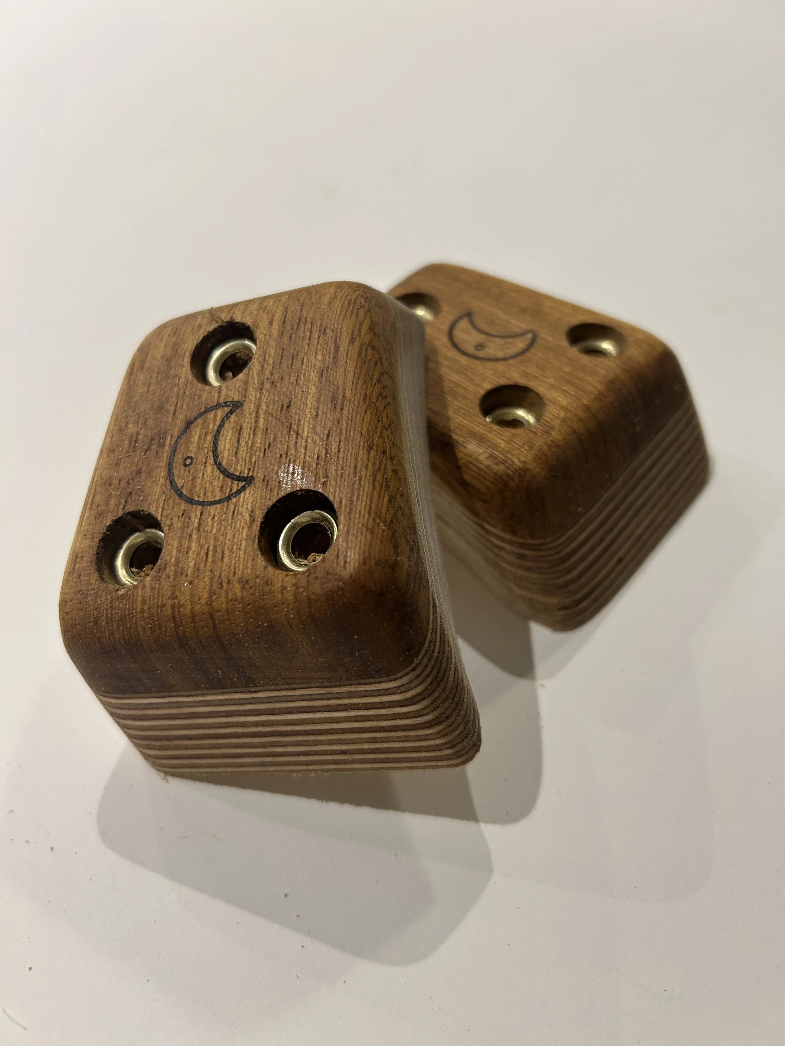 Beautiful handmade wooden climbing holds, brushes and training equipment.
