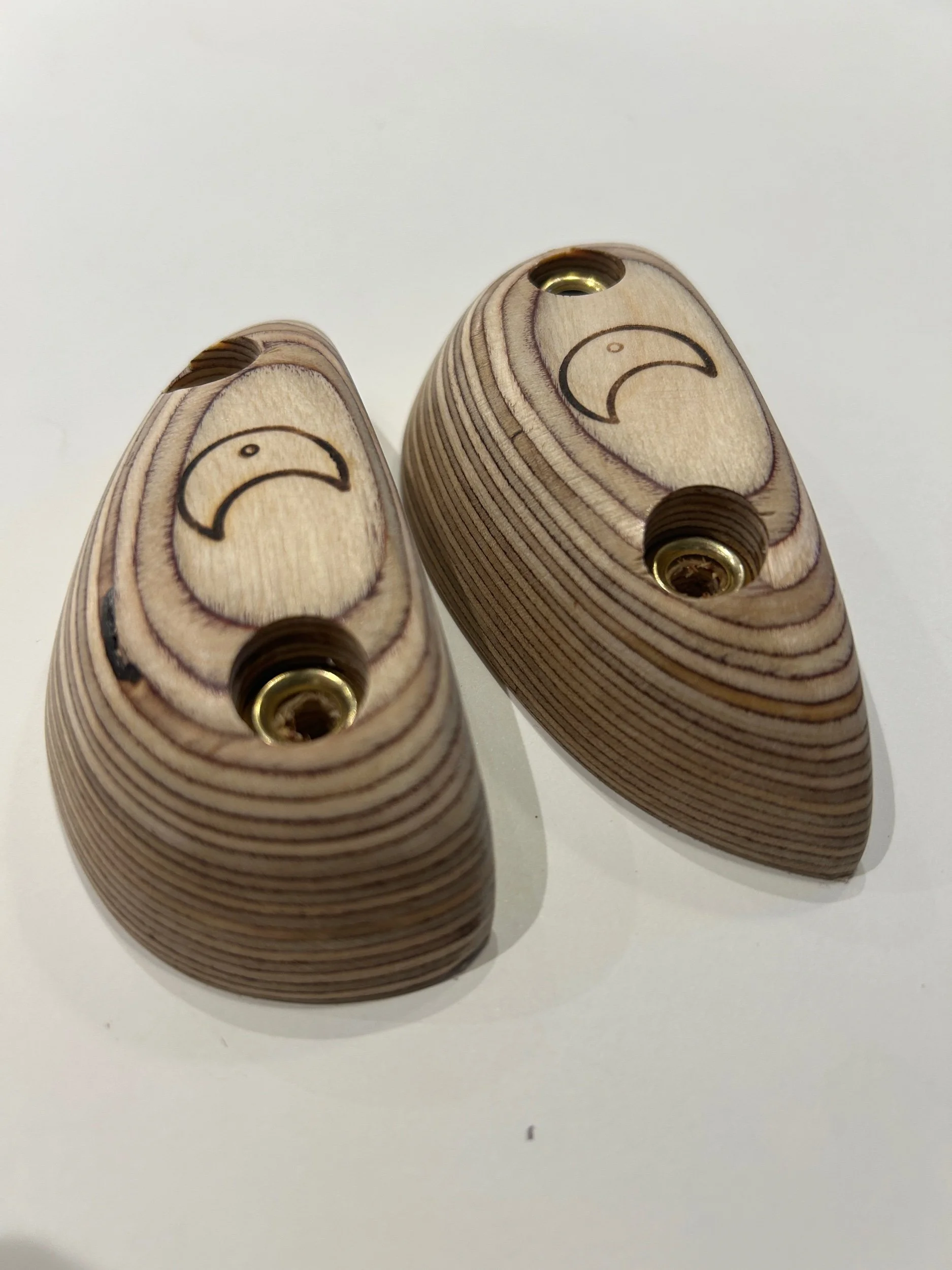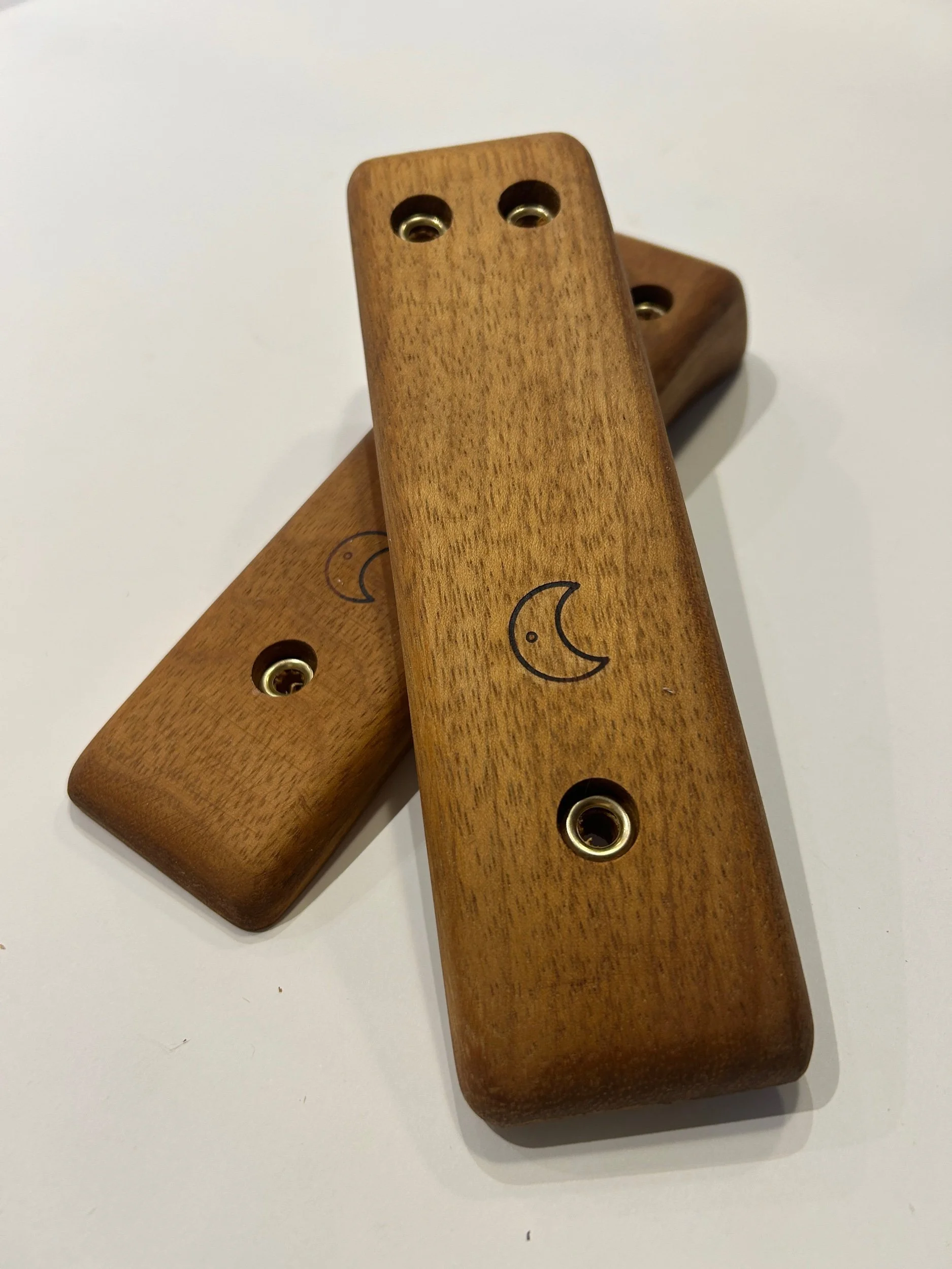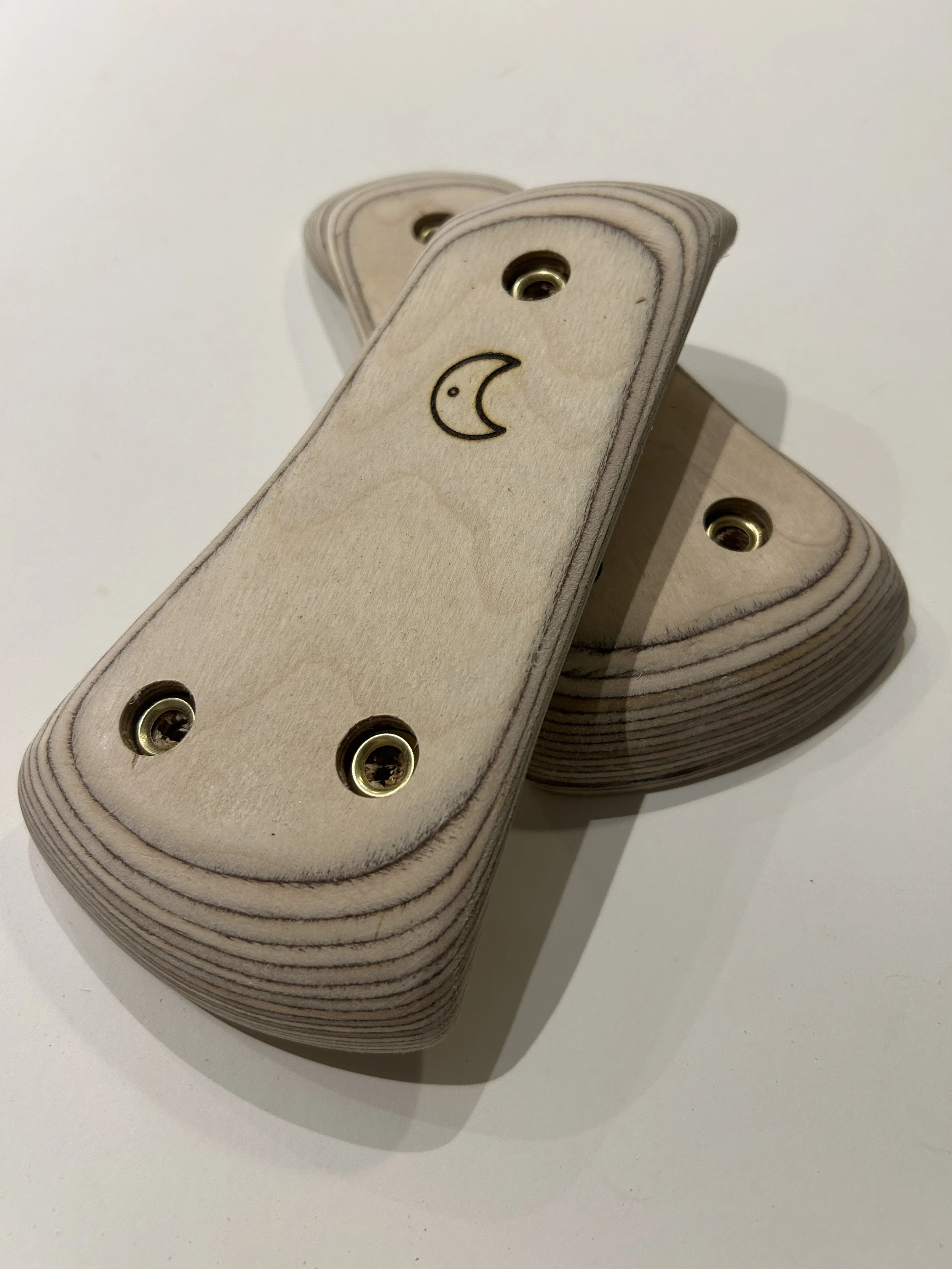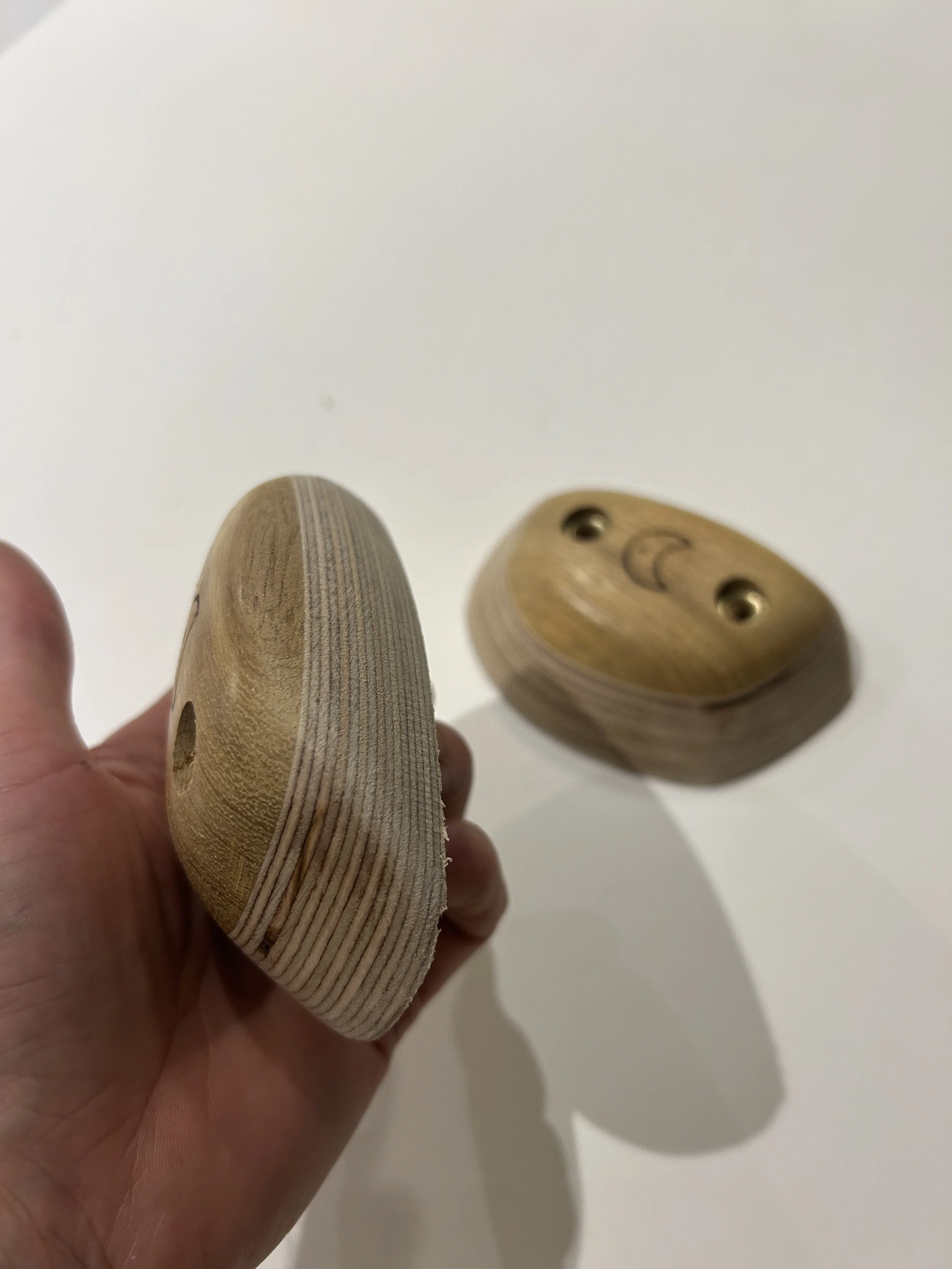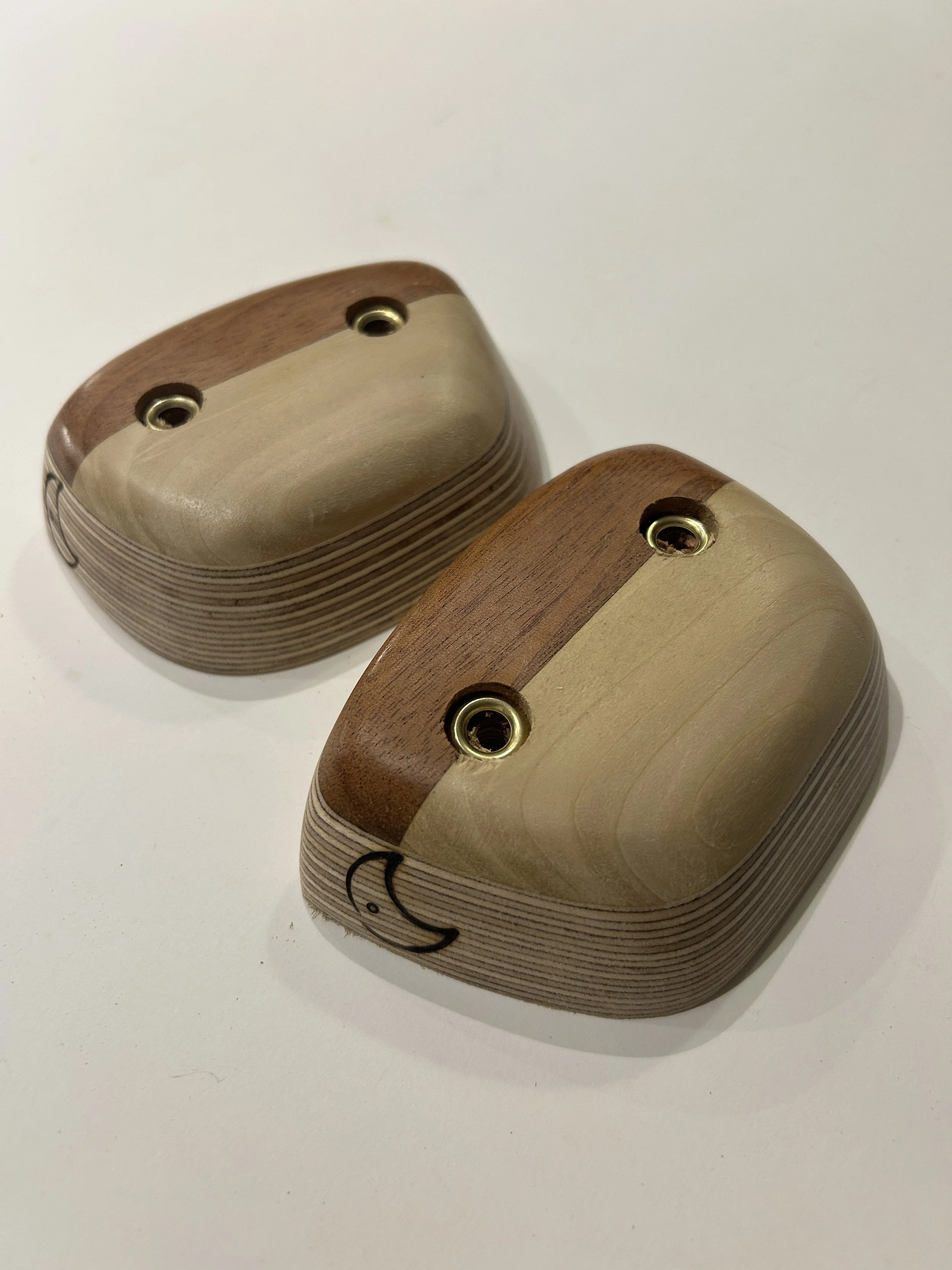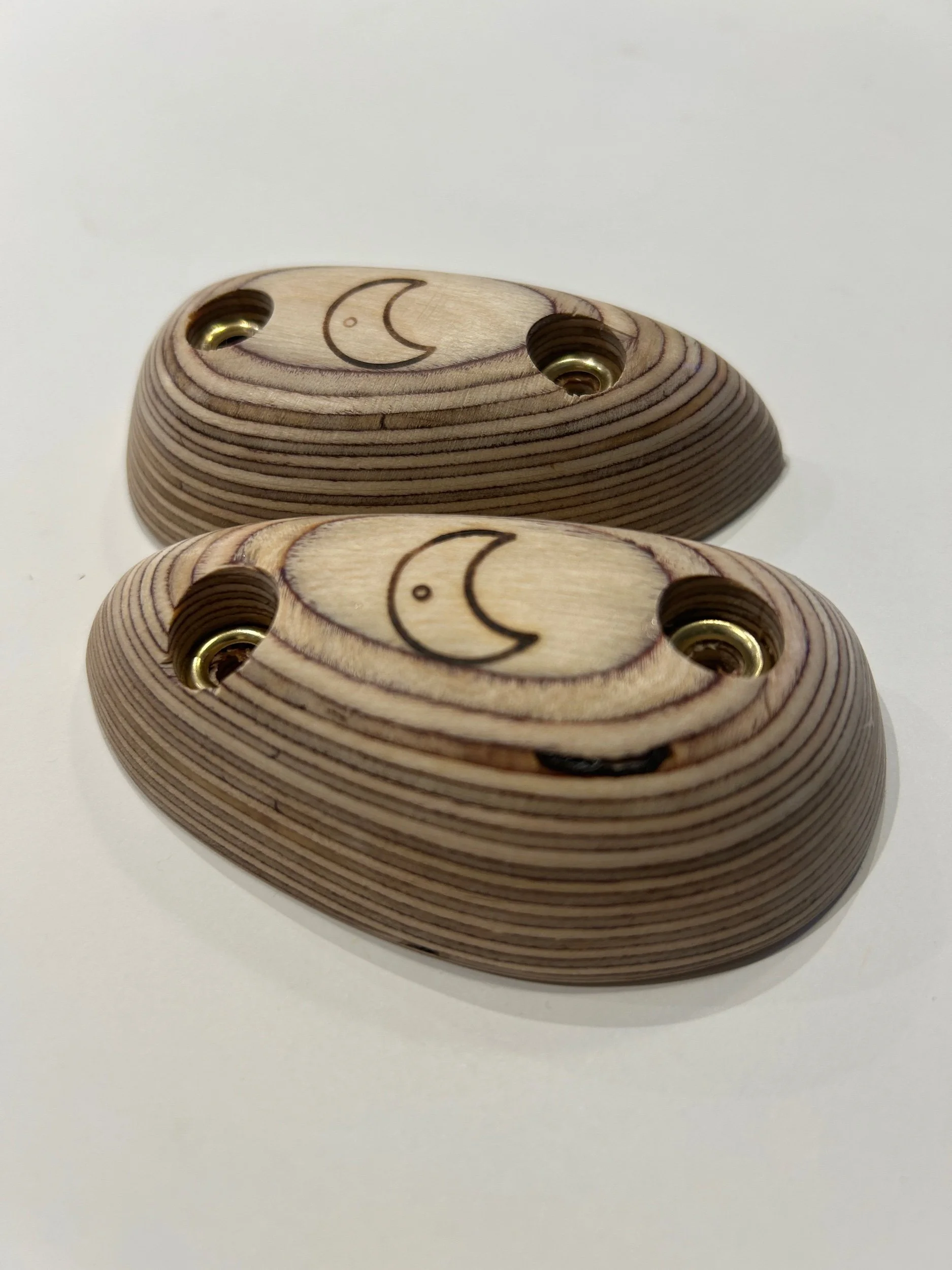 Beautiful handmade wooden climbing holds, brushes and training equipment.