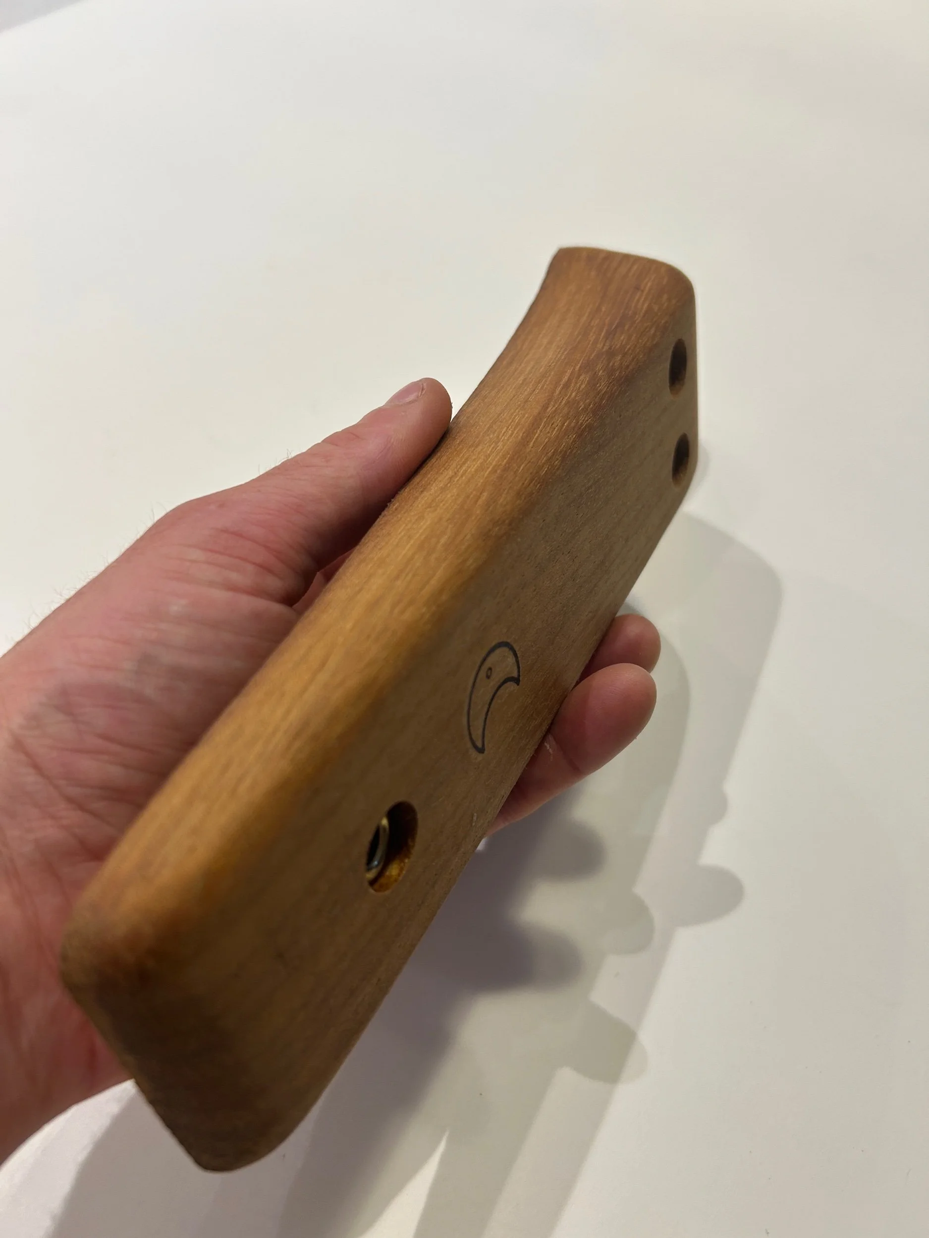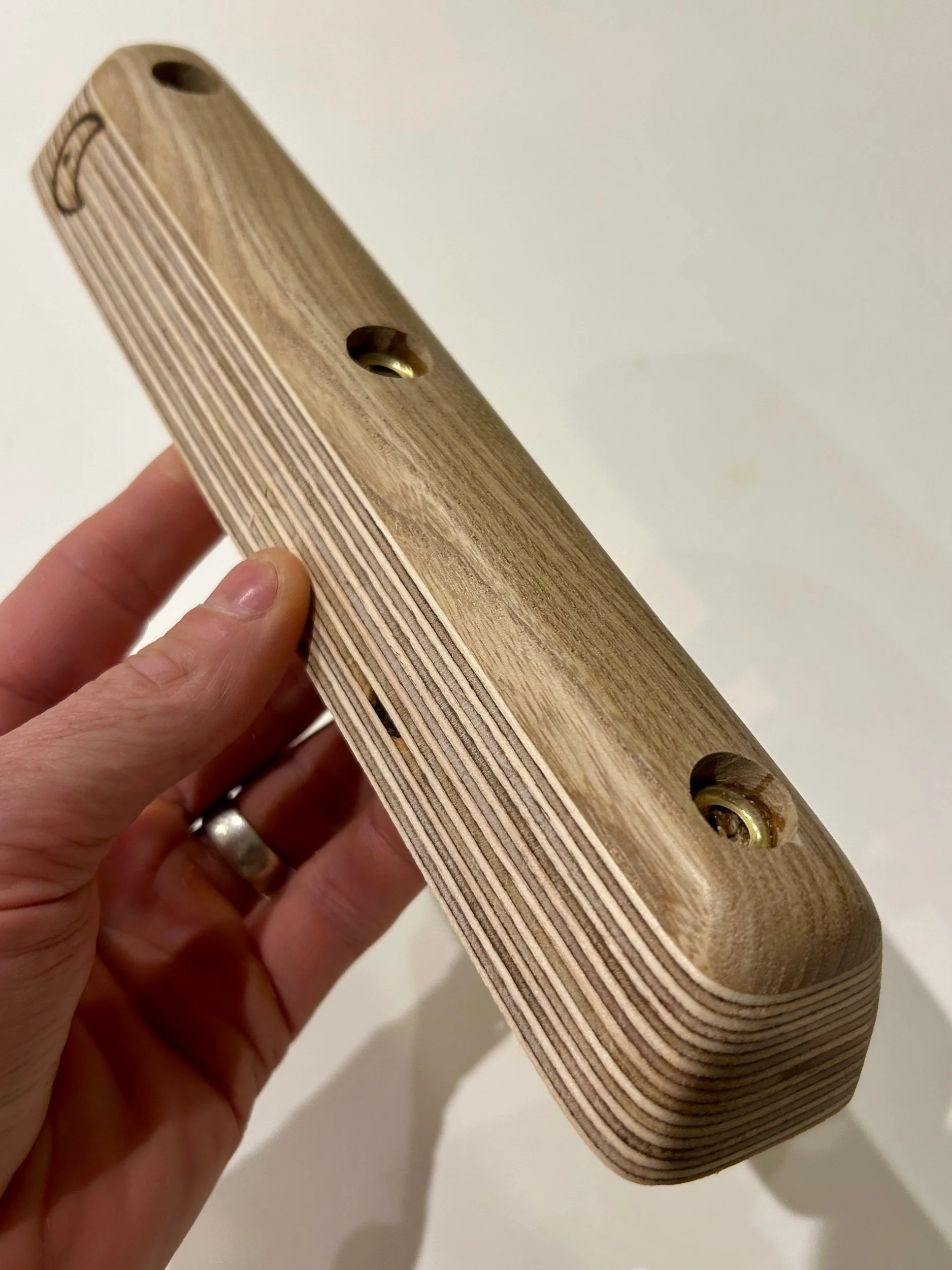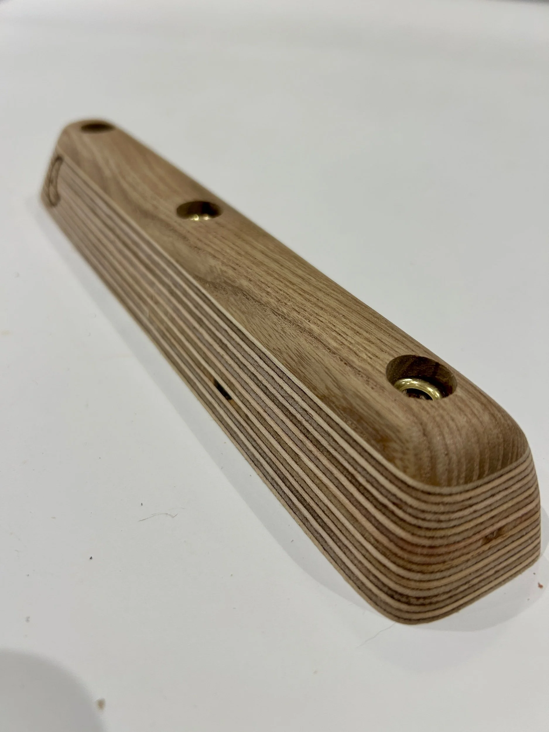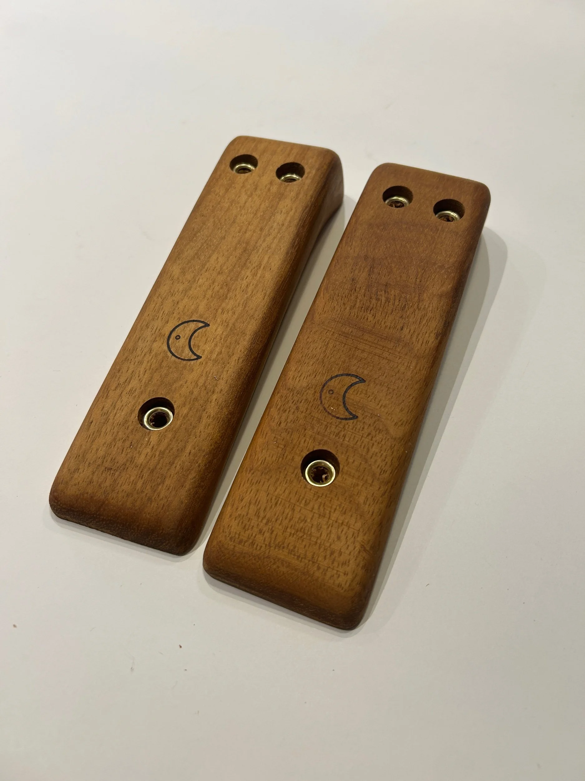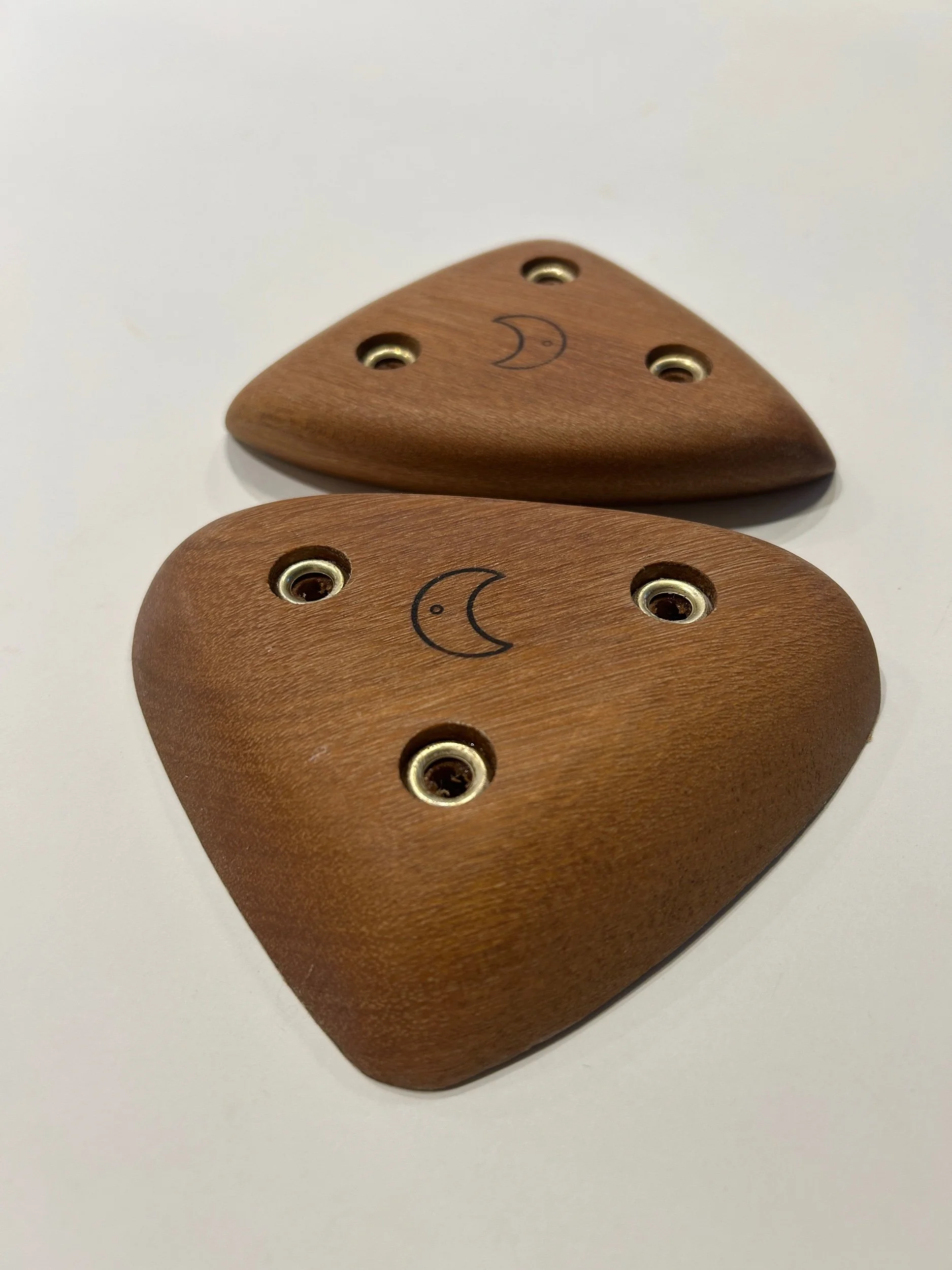 Beautiful handmade wooden climbing holds, brushes and training equipment.