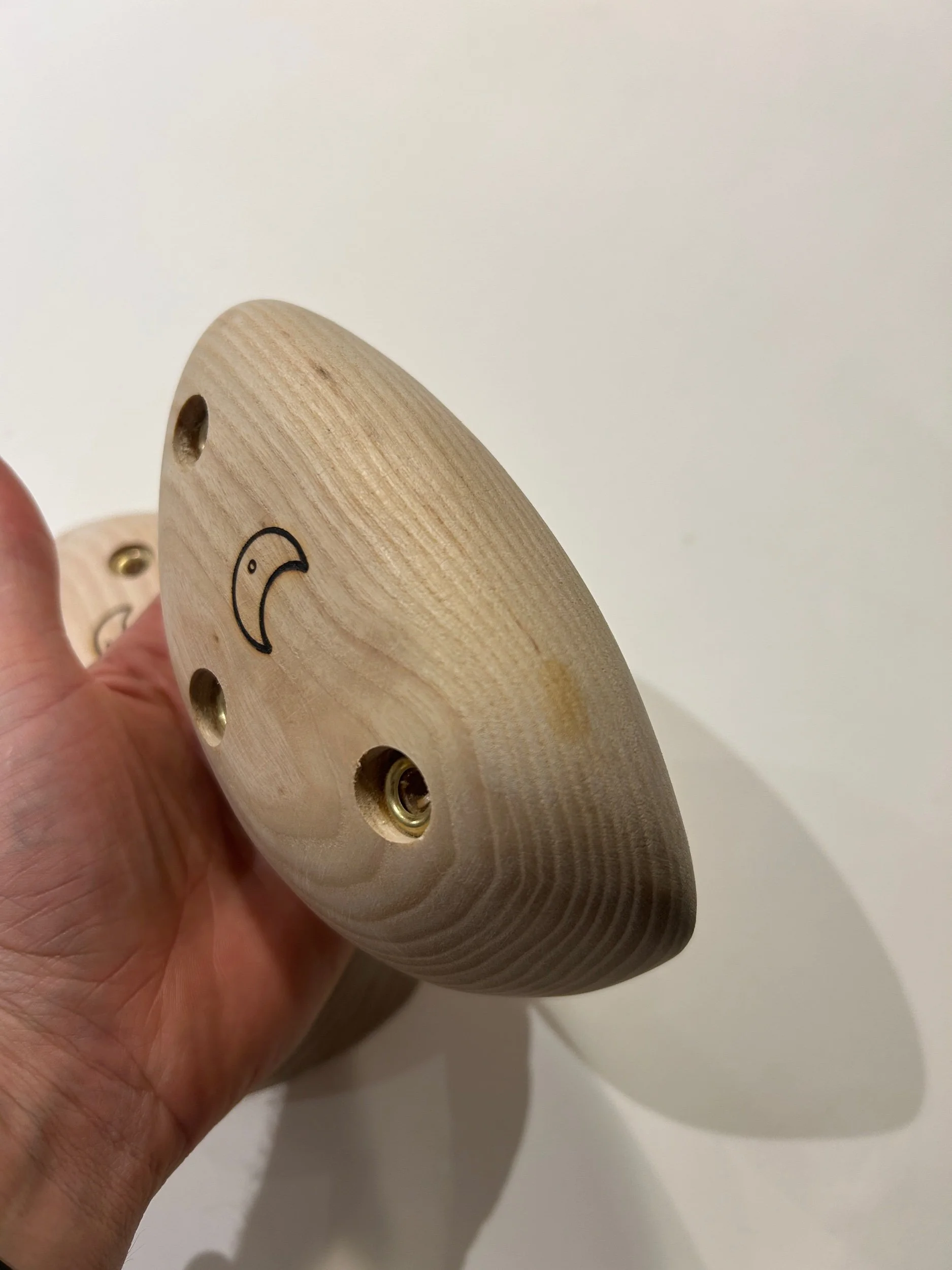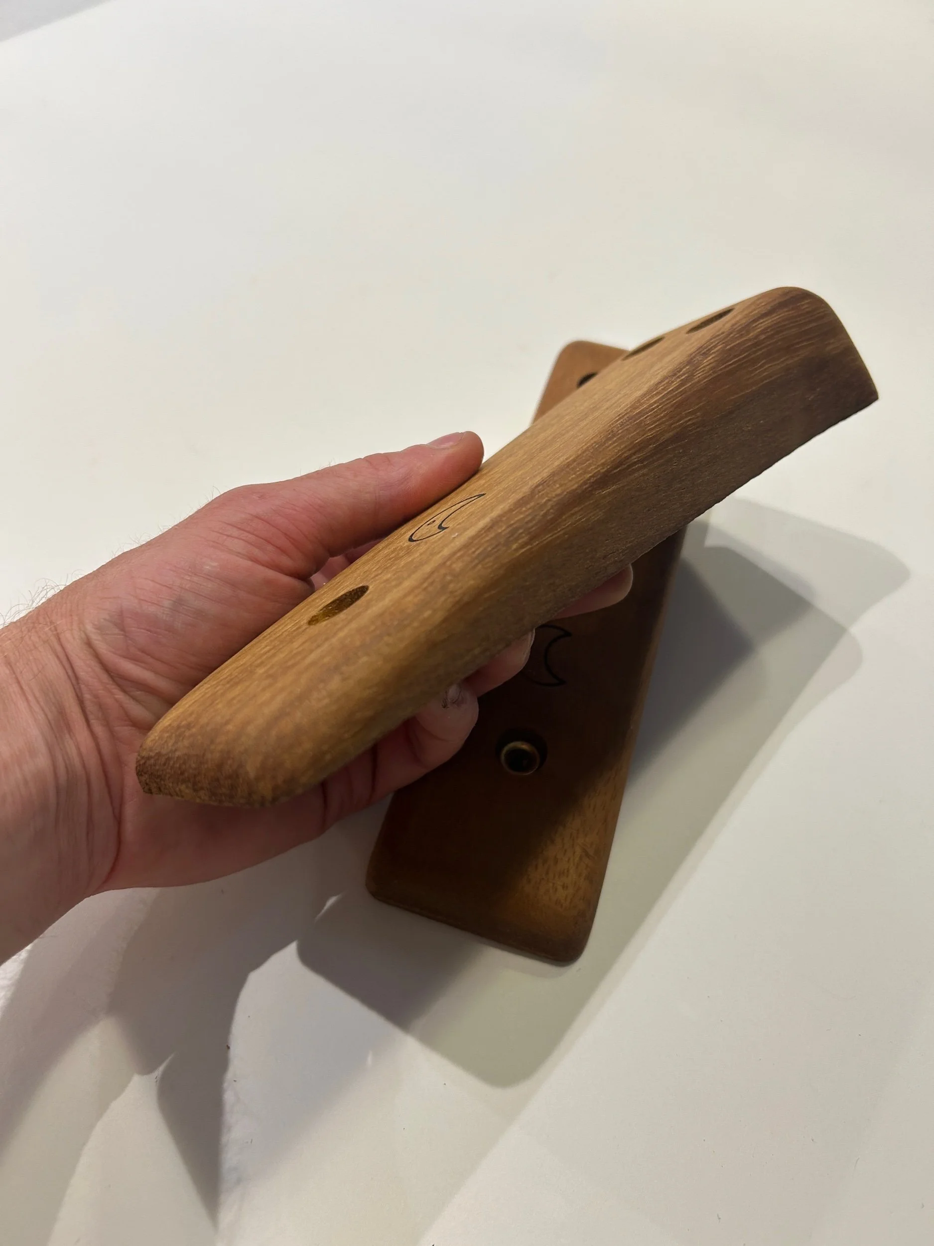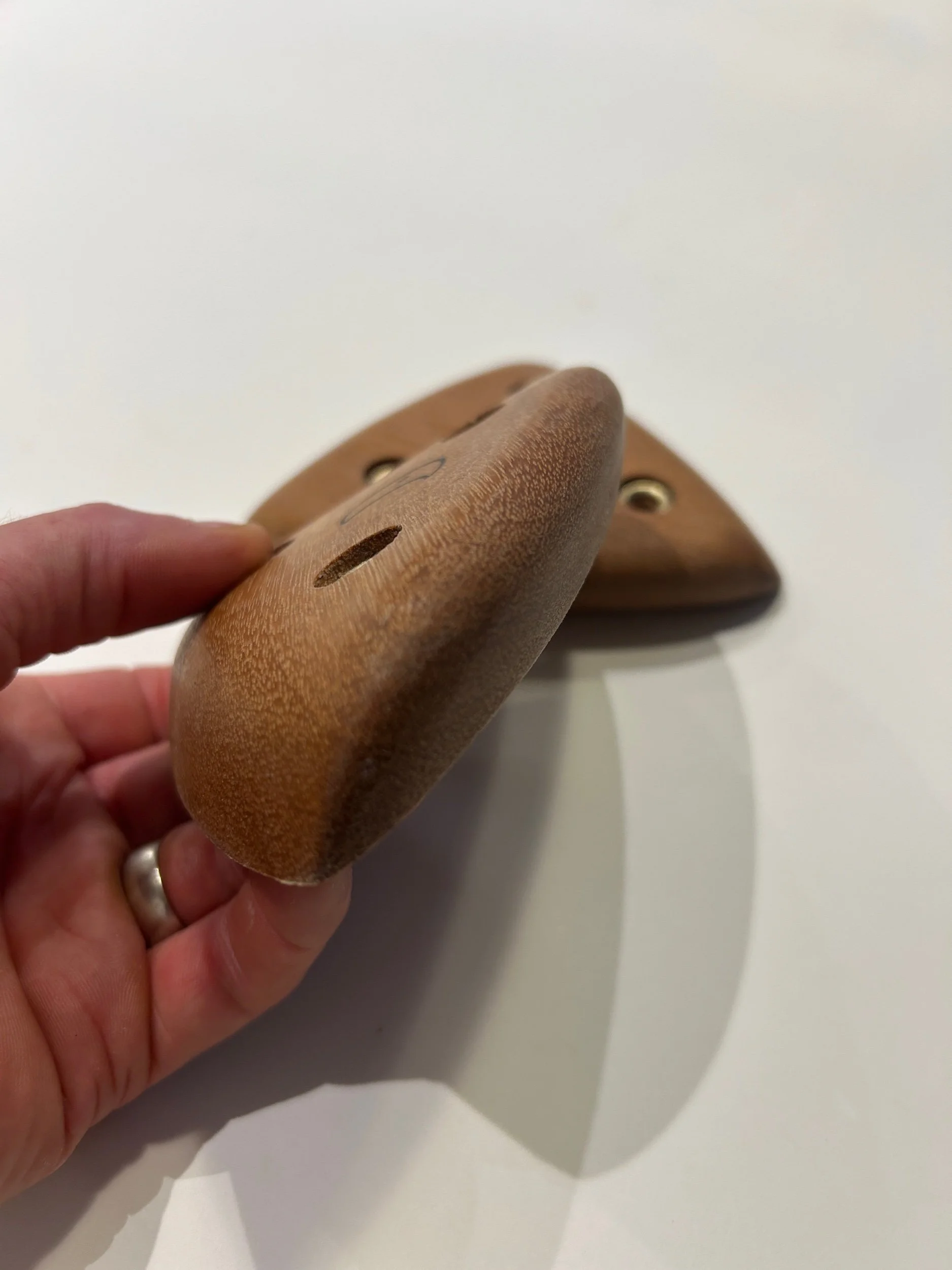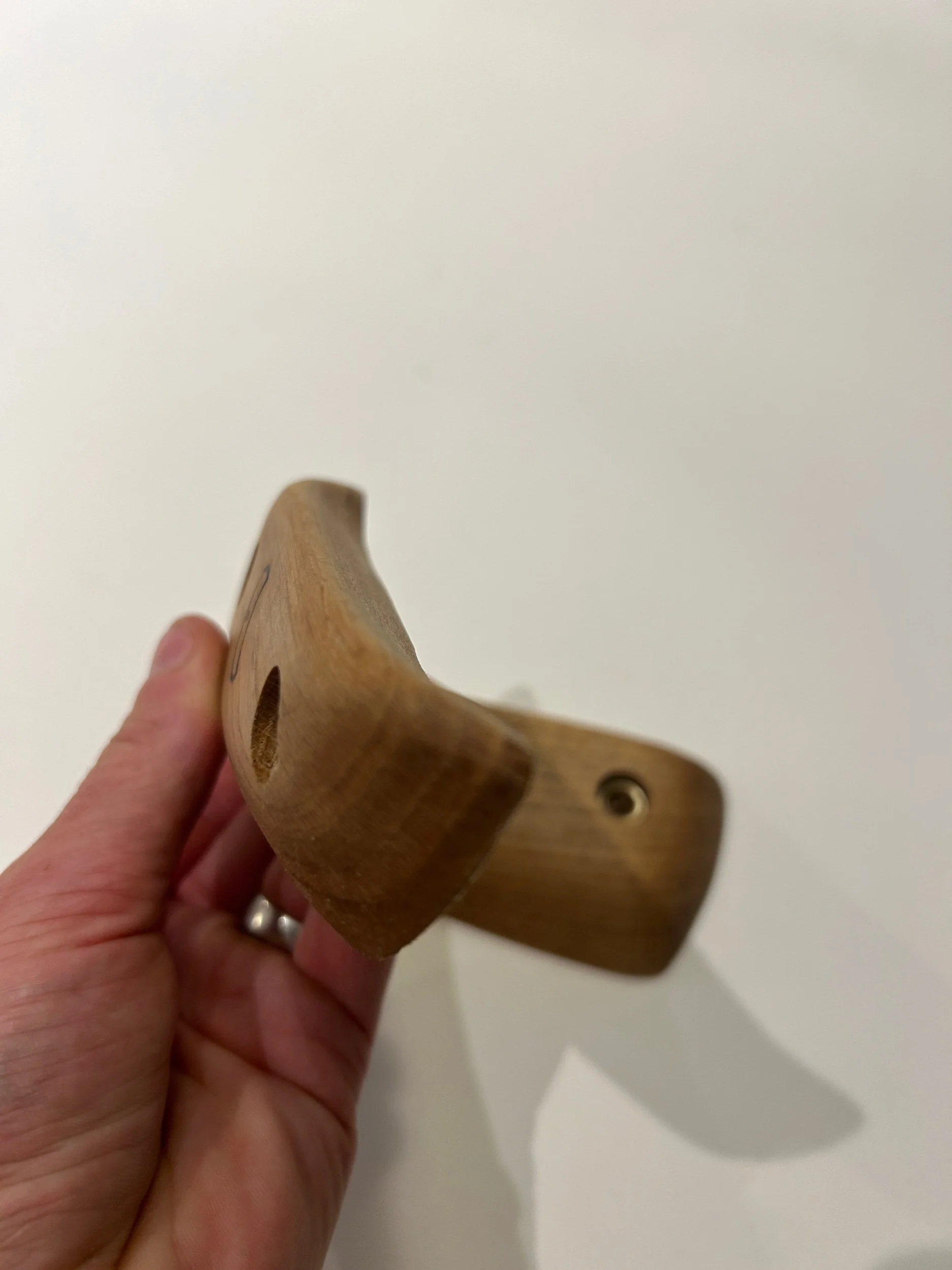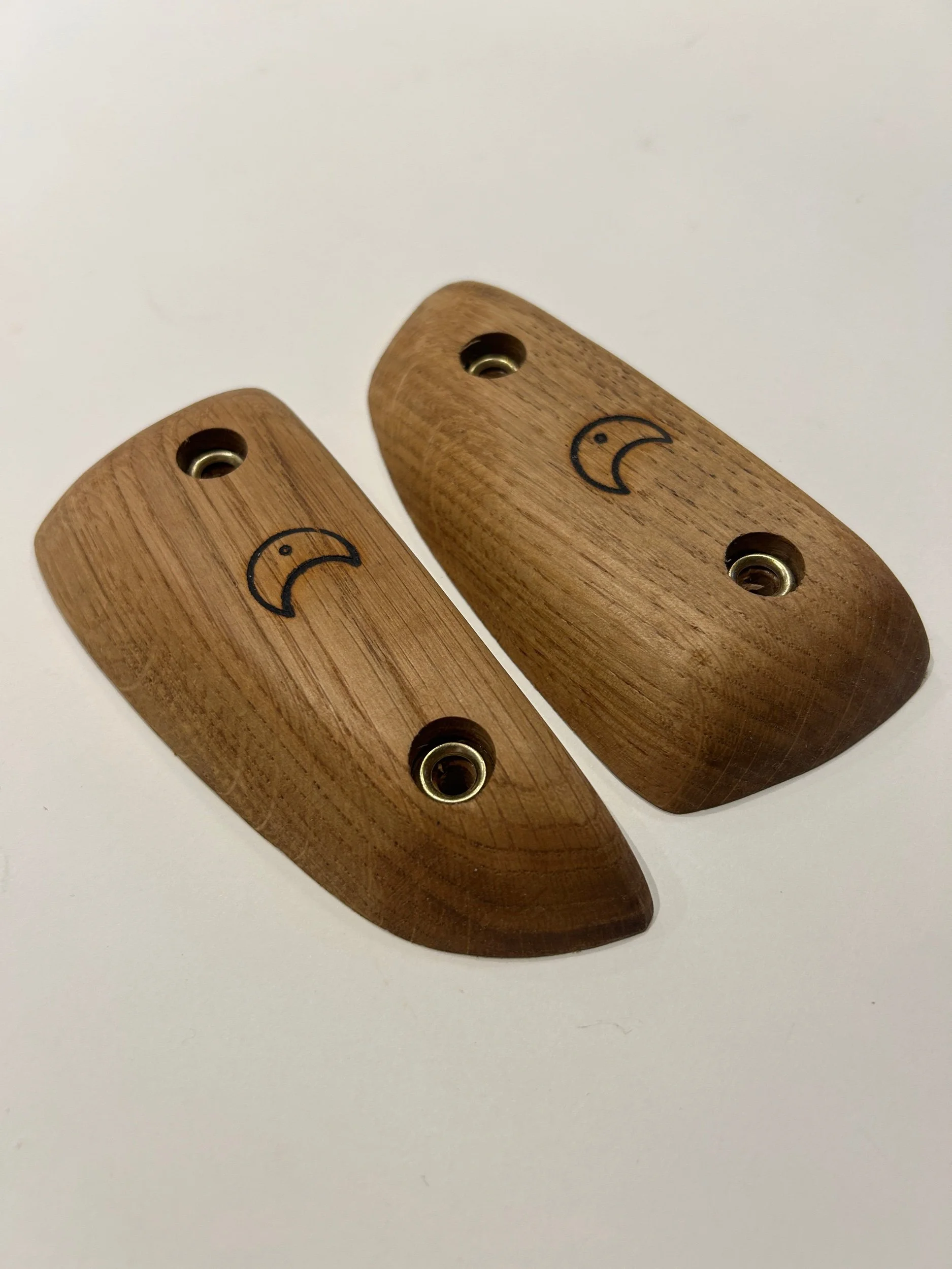 Beautiful handmade wooden climbing holds, brushes and training equipment.