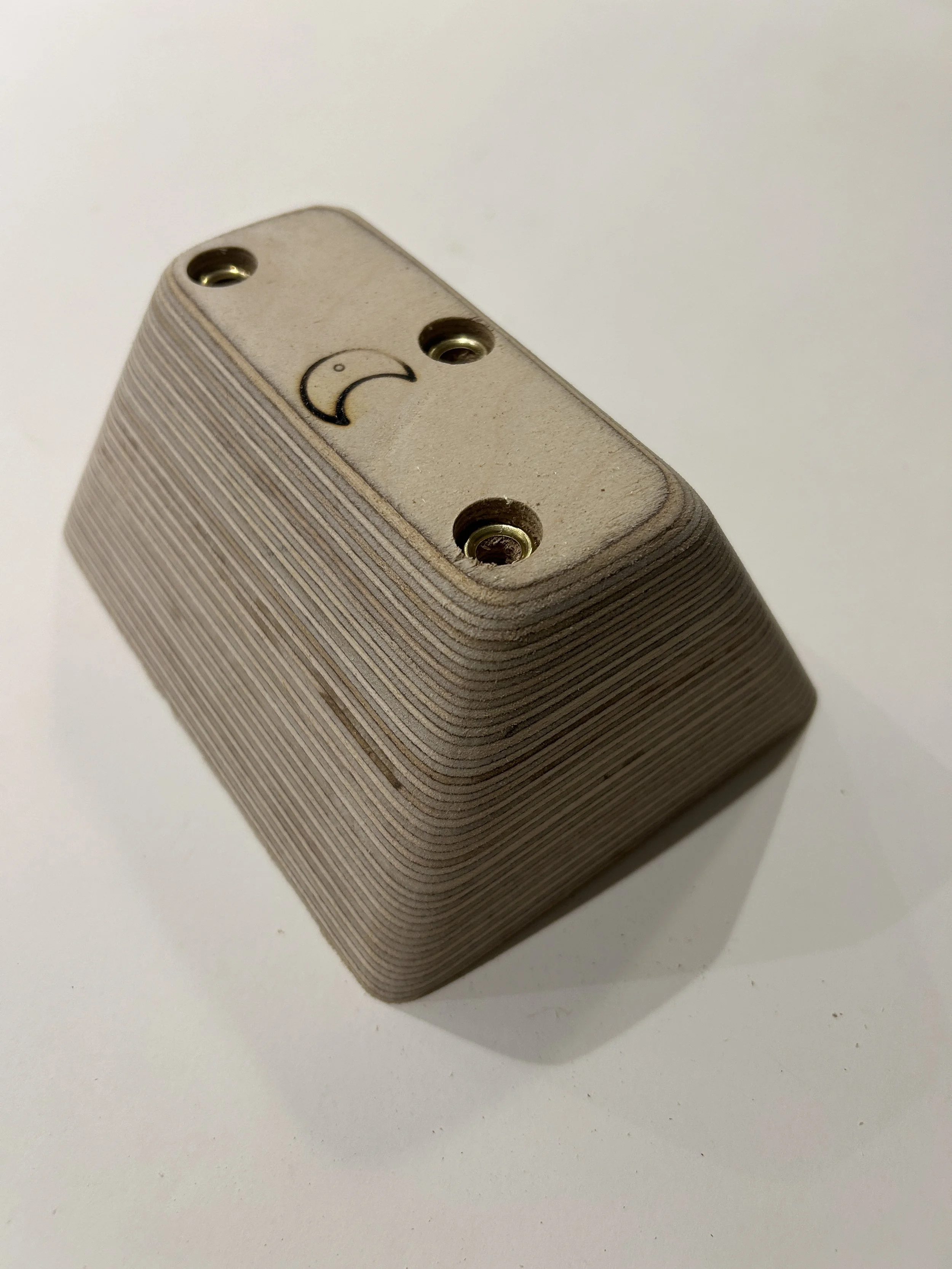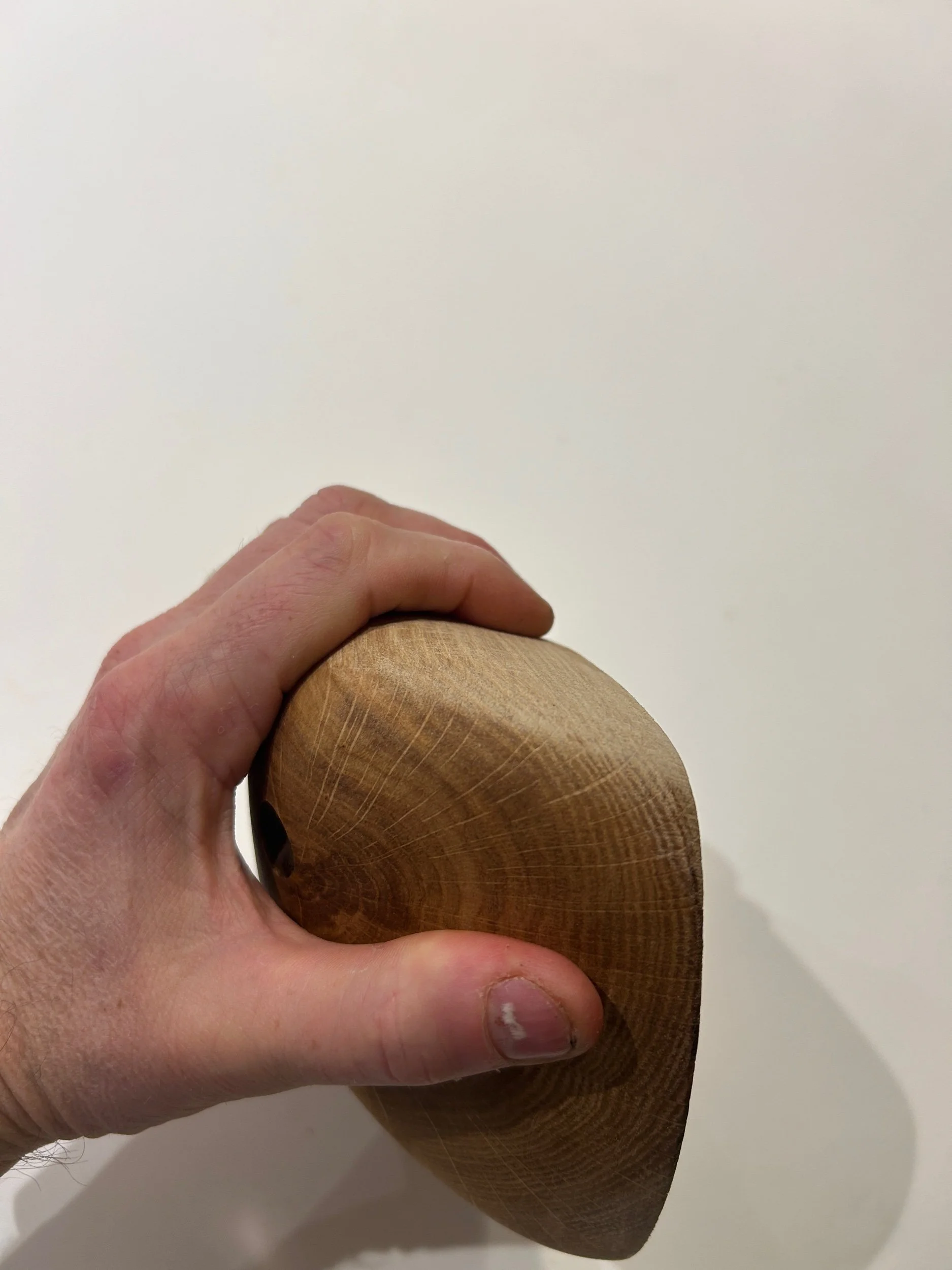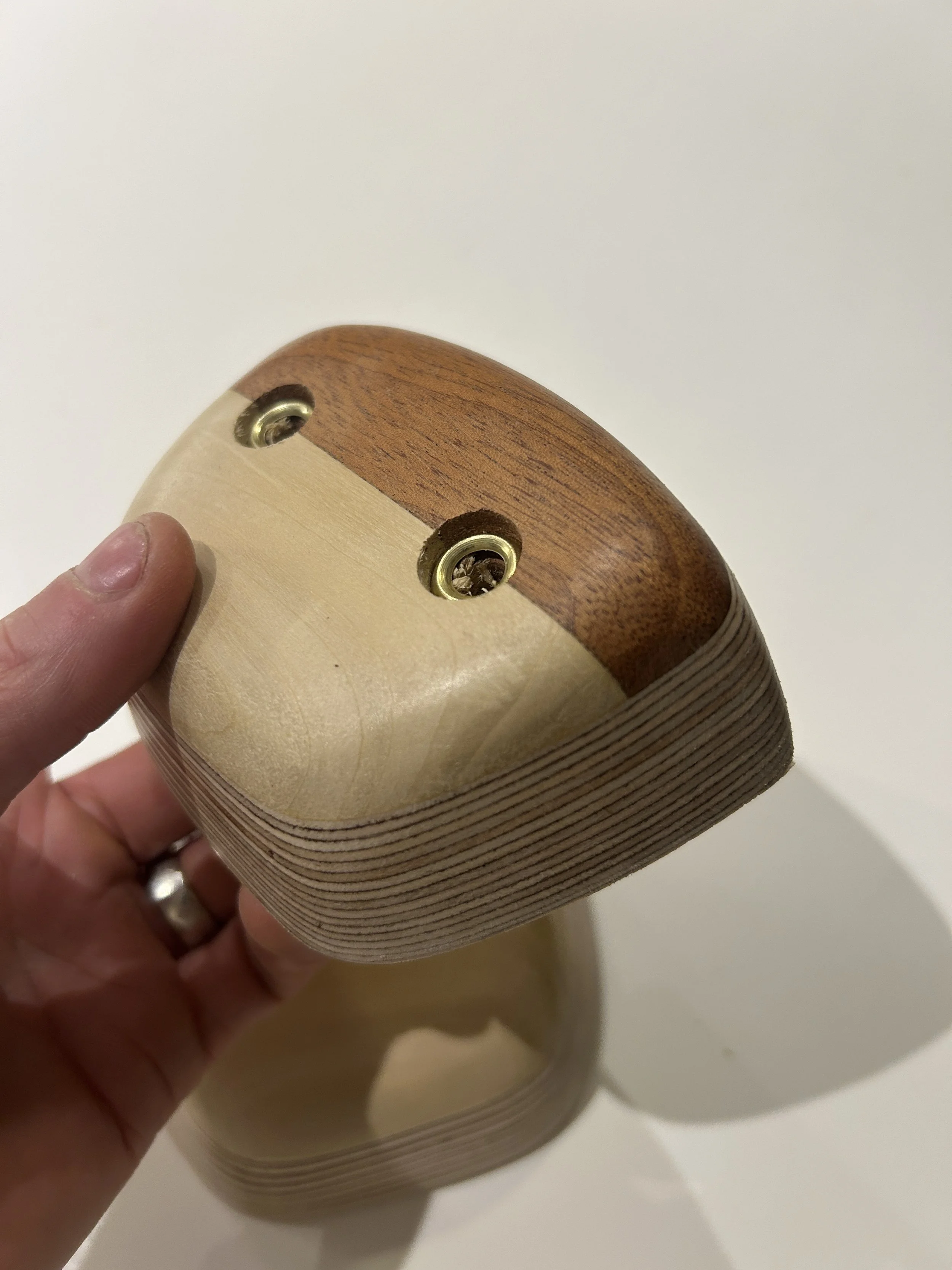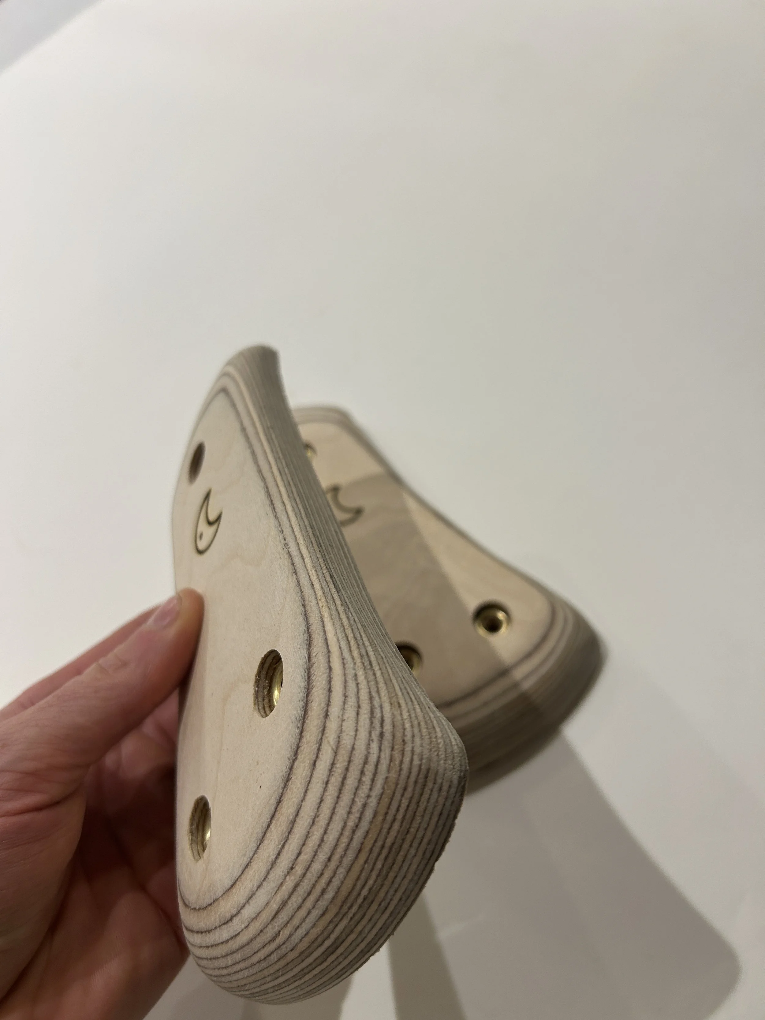 I make our holds, brushes and training products from various hardwoods and plywoods, all of the wood comes in the form of offcuts or is reclaimed, the aim is to create no waste. I shape every hold by hand in my small workshop at the bottom of my garden in Brighton. Sometimes I set out with a plan for a particular set. Sometimes I let the grain and characteristics of the wood dictate the shape. I test out all our hold designs on our garage spray wall, developing and refining as I go.
