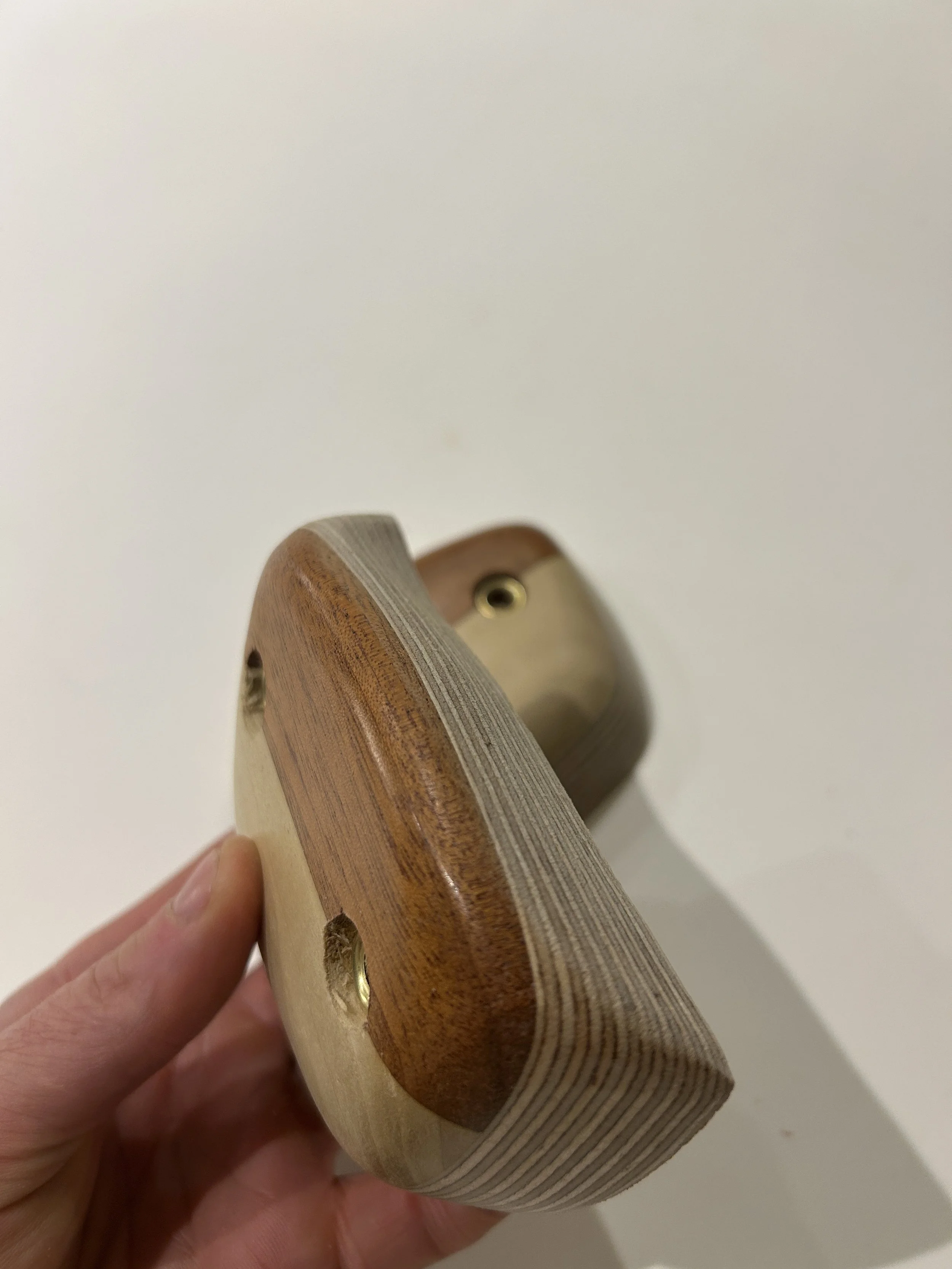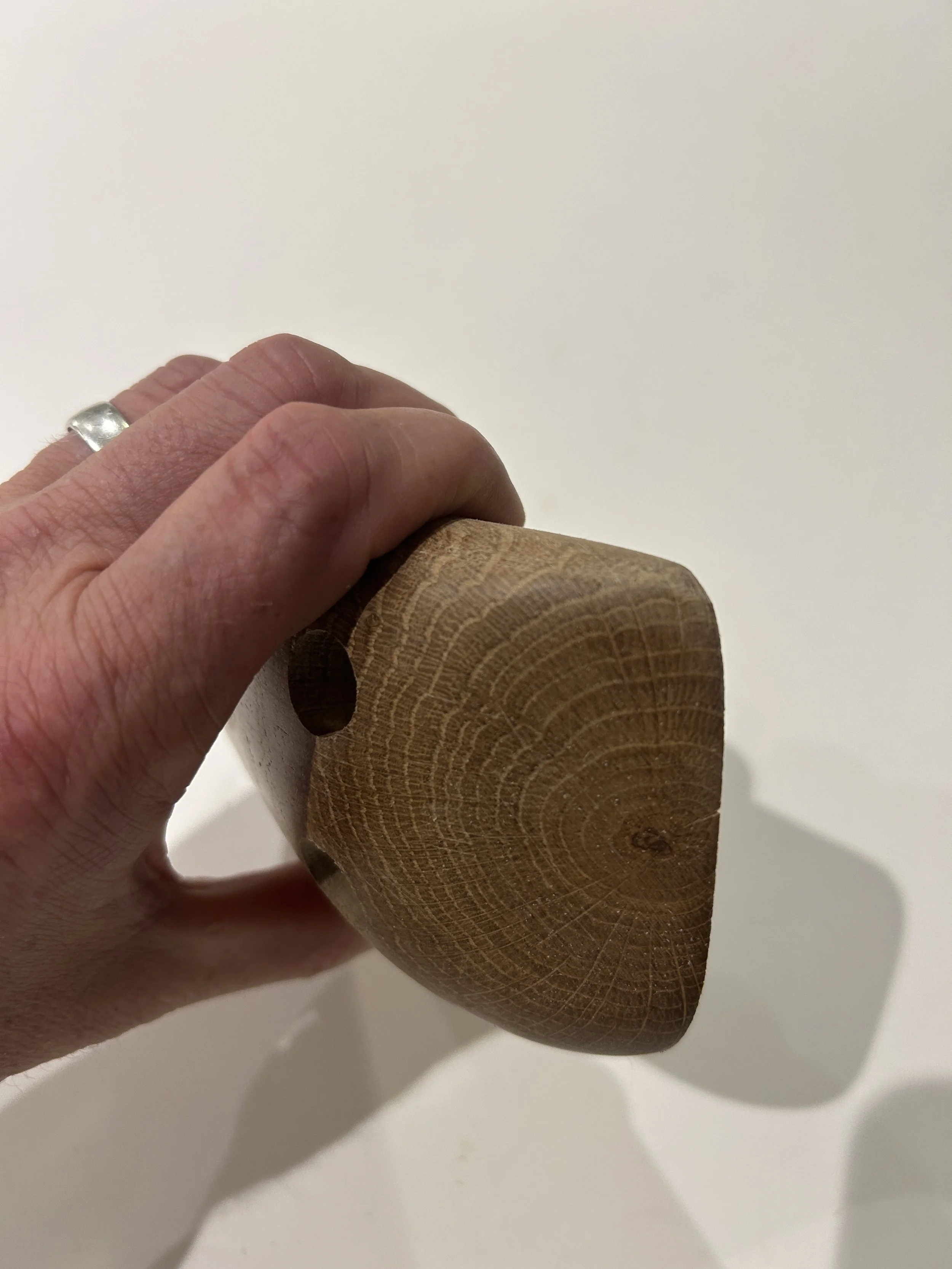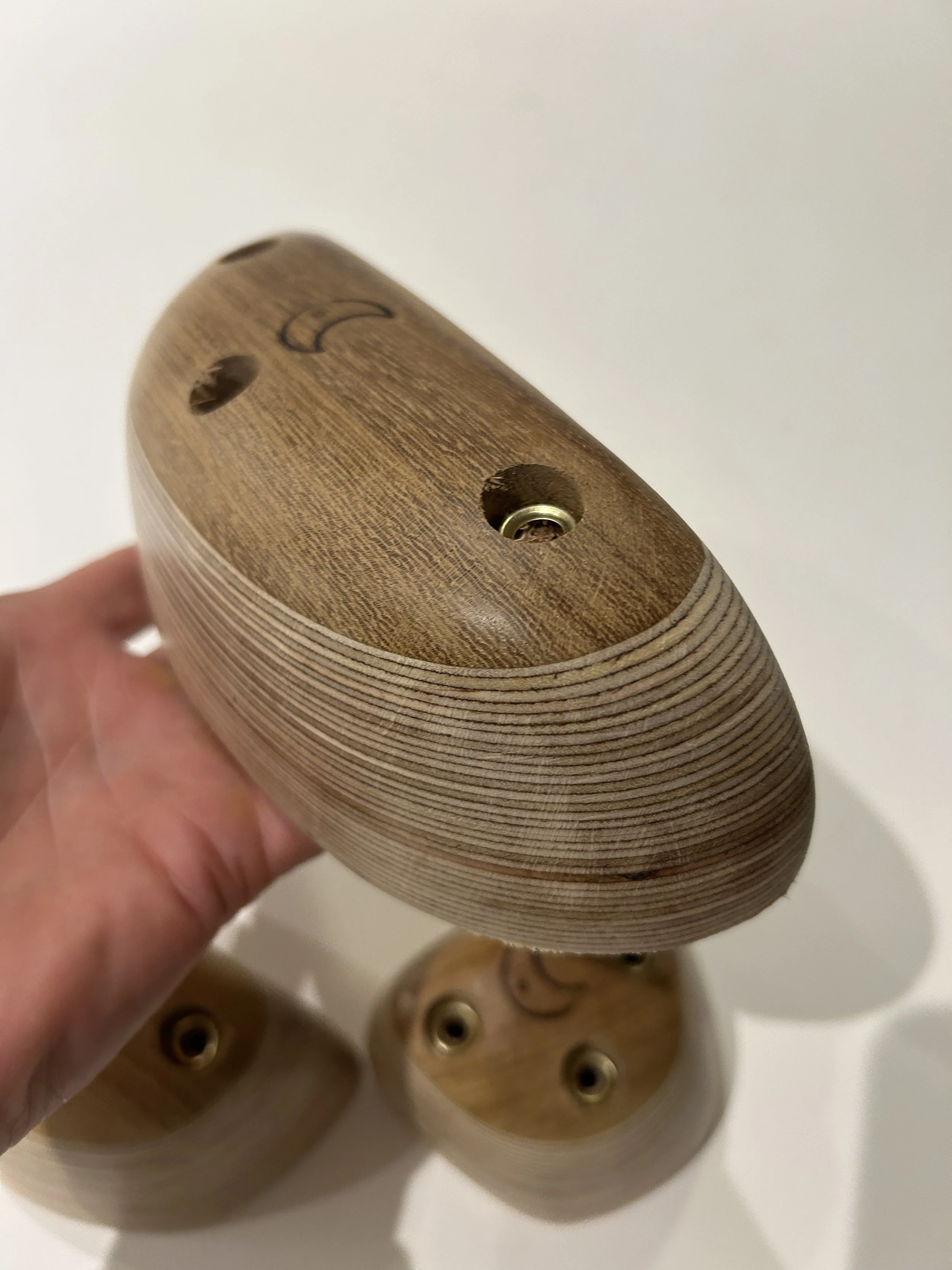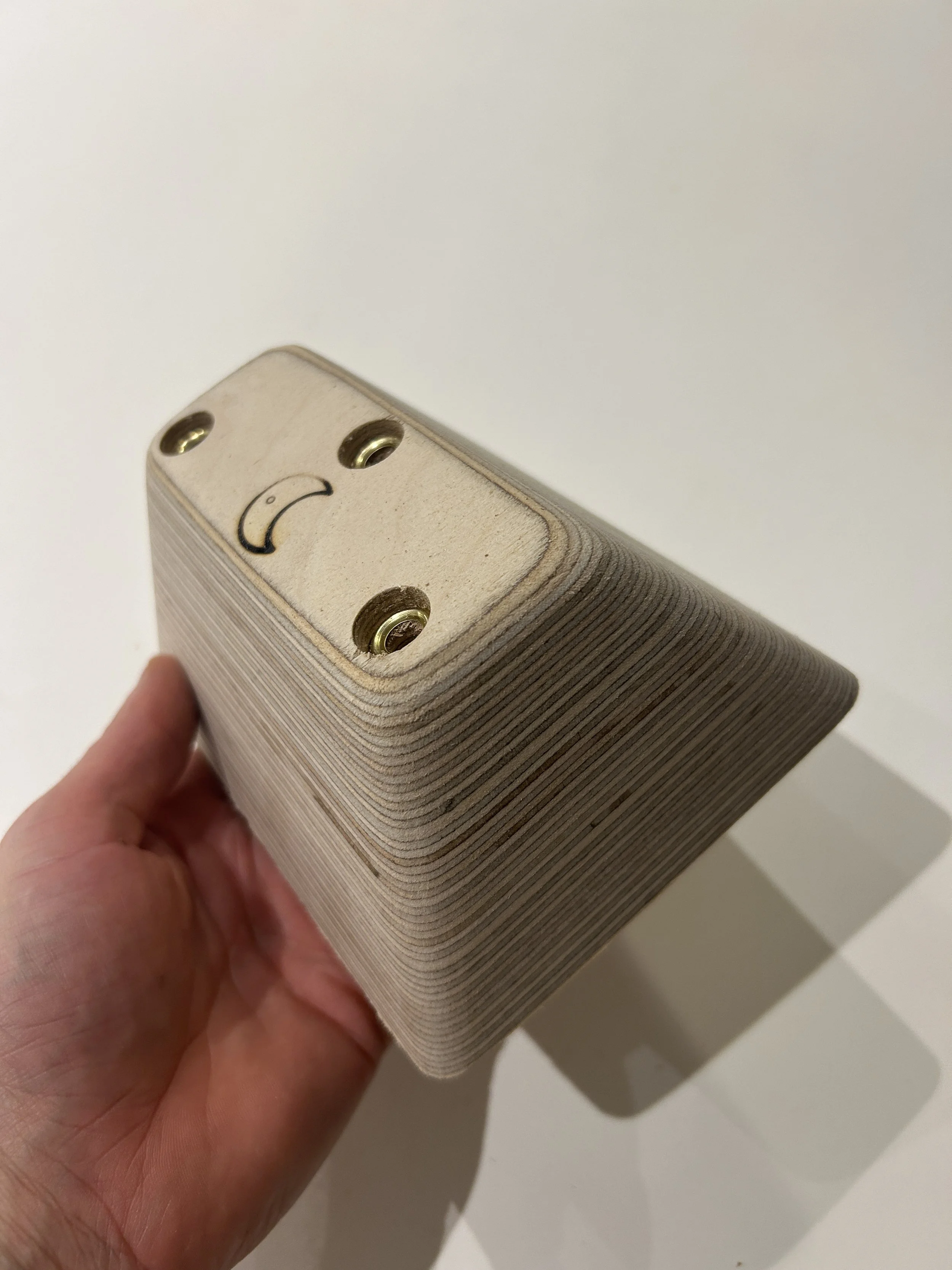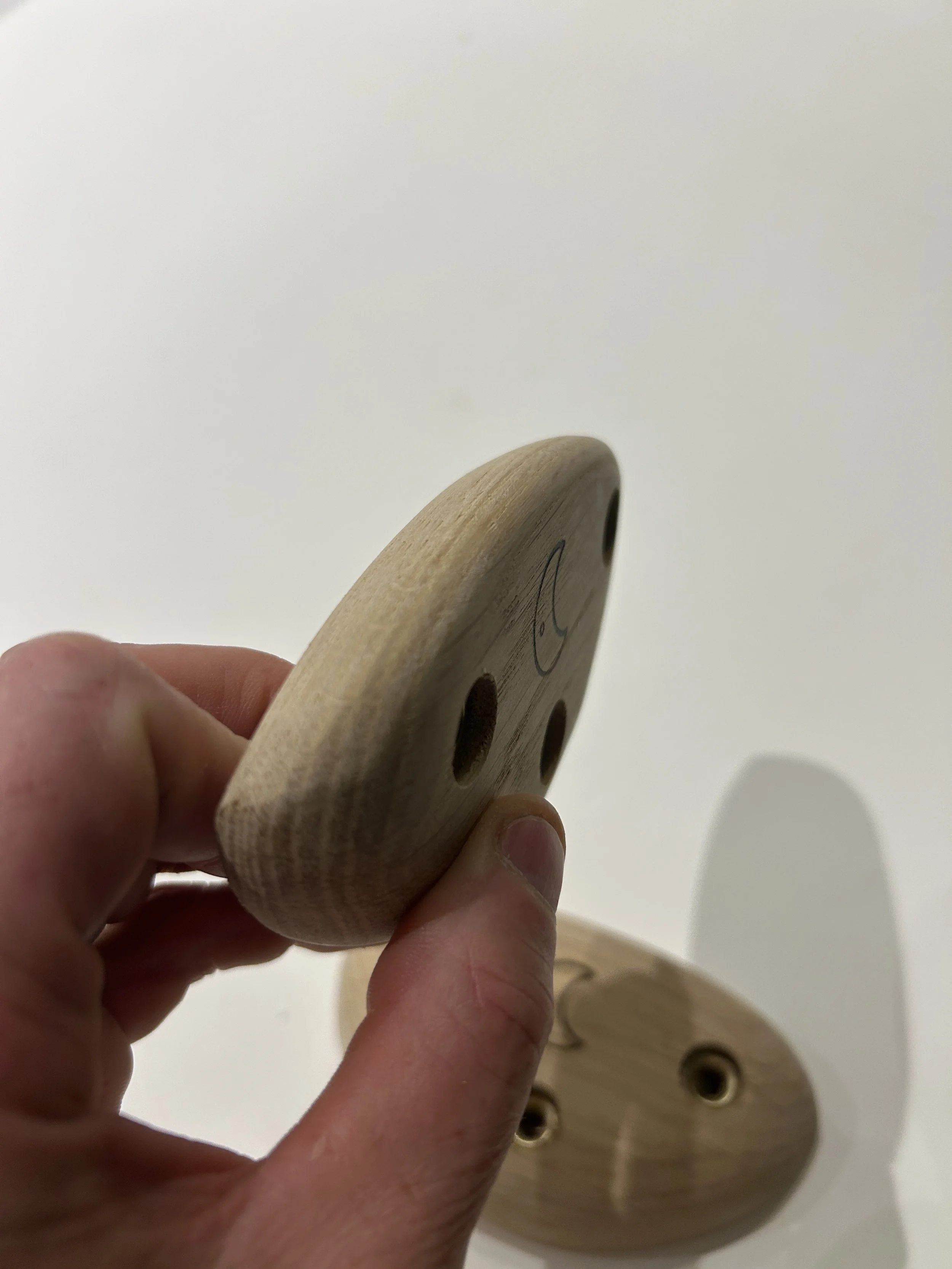 I make our holds, brushes and training products from various hardwoods and plywoods, all of the wood comes in the form of offcuts or is reclaimed, the aim is to create no waste. I shape every hold by hand in my small workshop at the bottom of my garden in Brighton. Sometimes I set out with a plan for a particular set. Sometimes I let the grain and characteristics of the wood dictate the shape. I test out all our hold designs on our garage spray wall, developing and refining as I go.