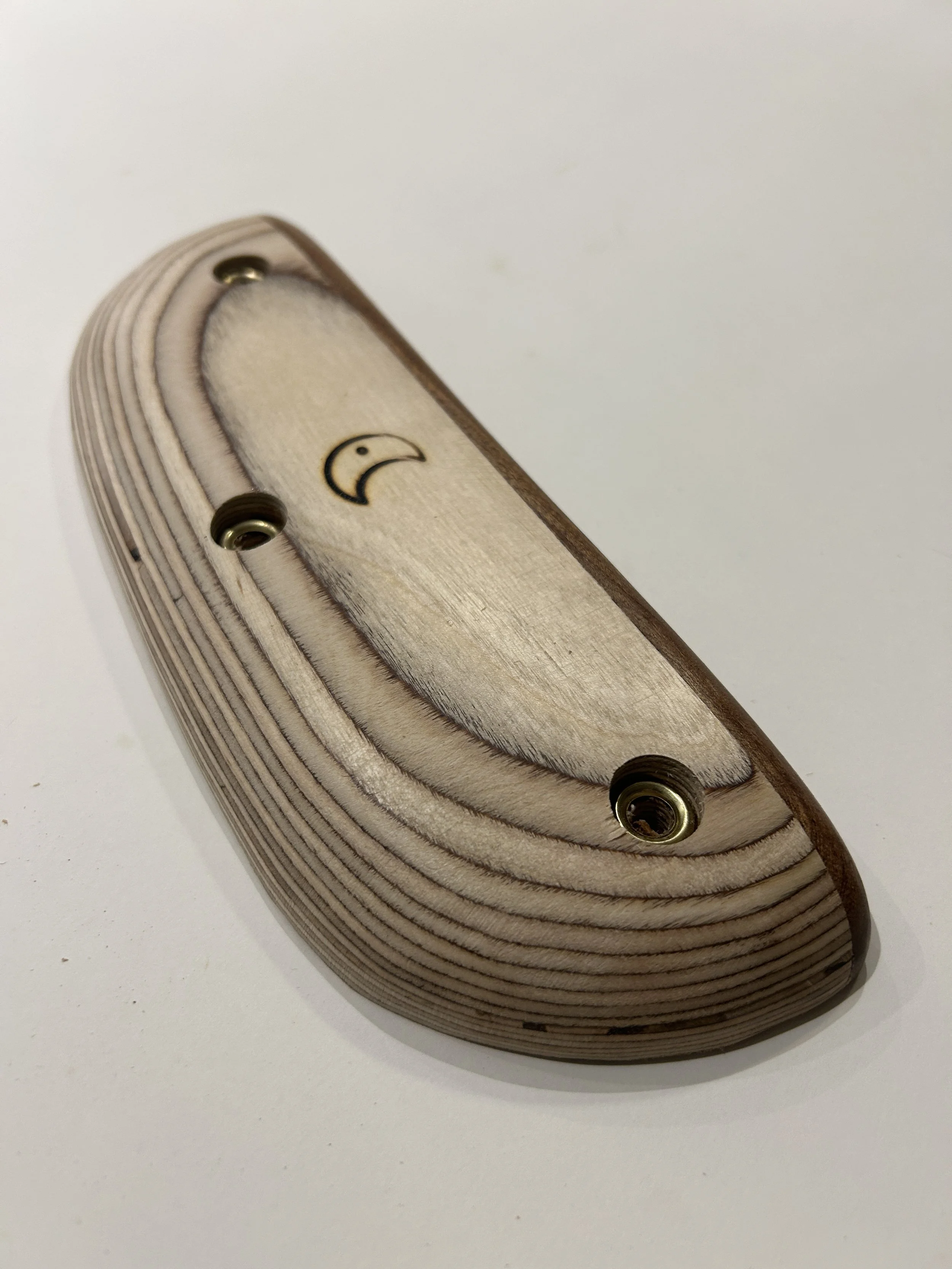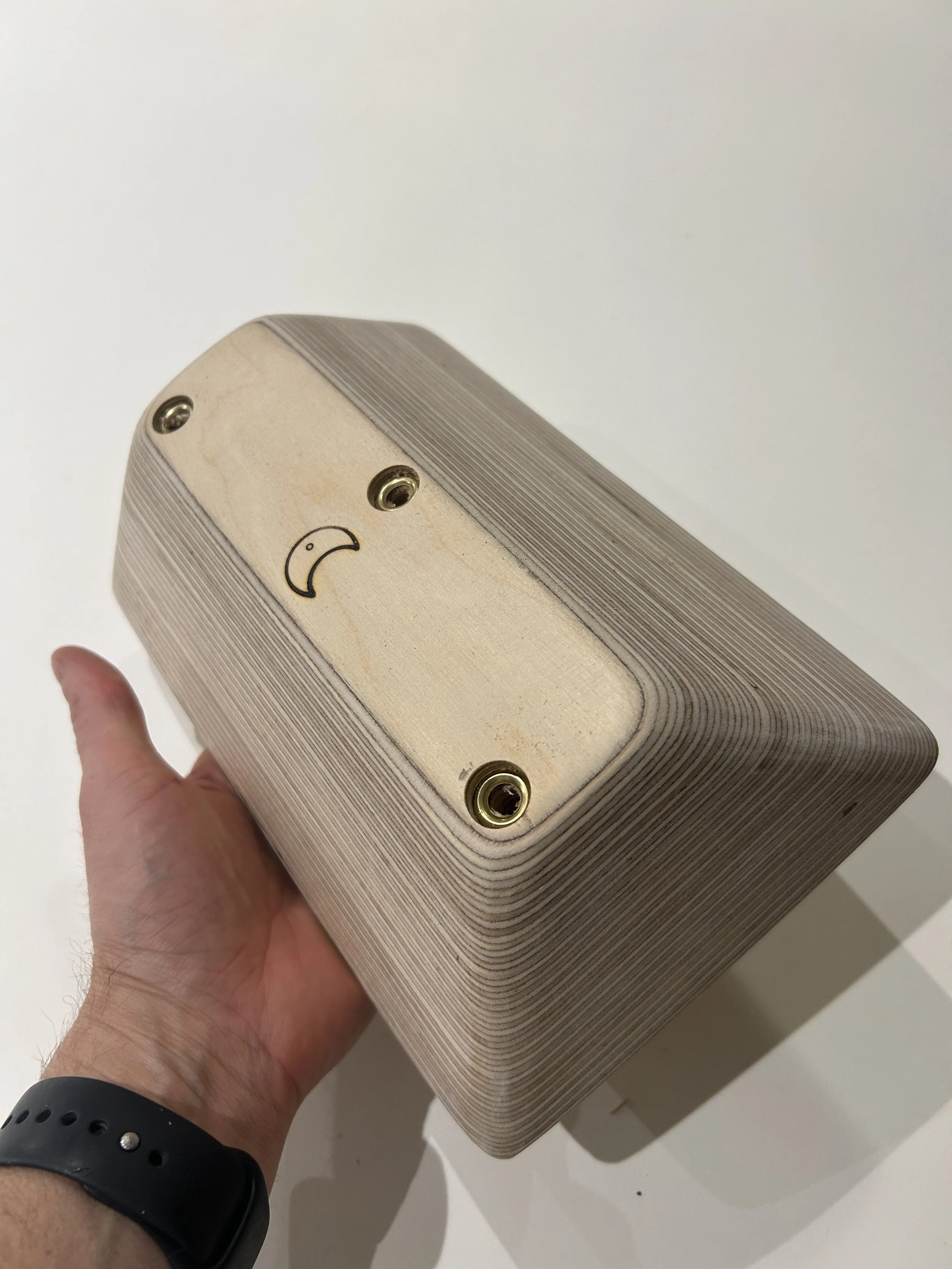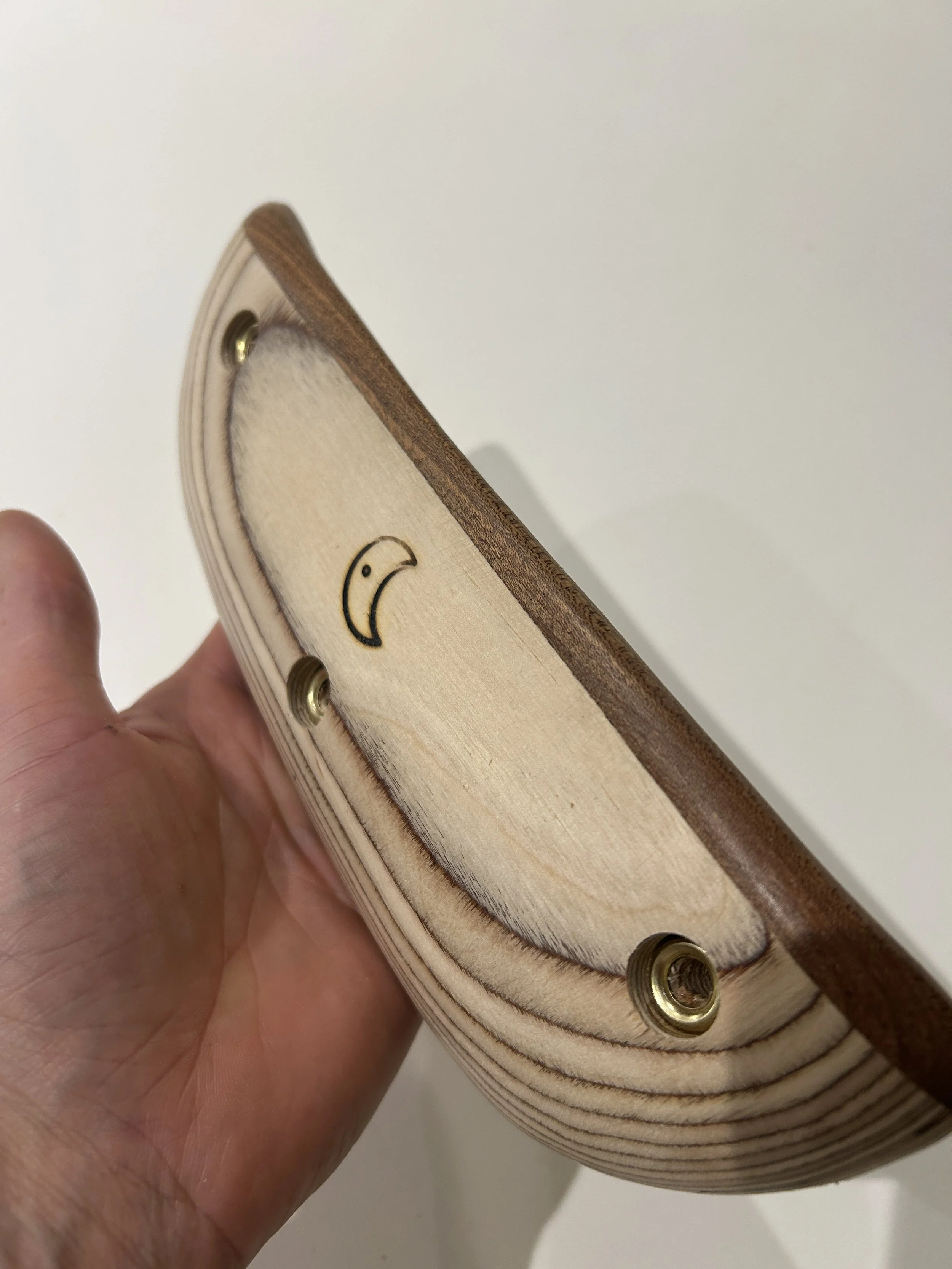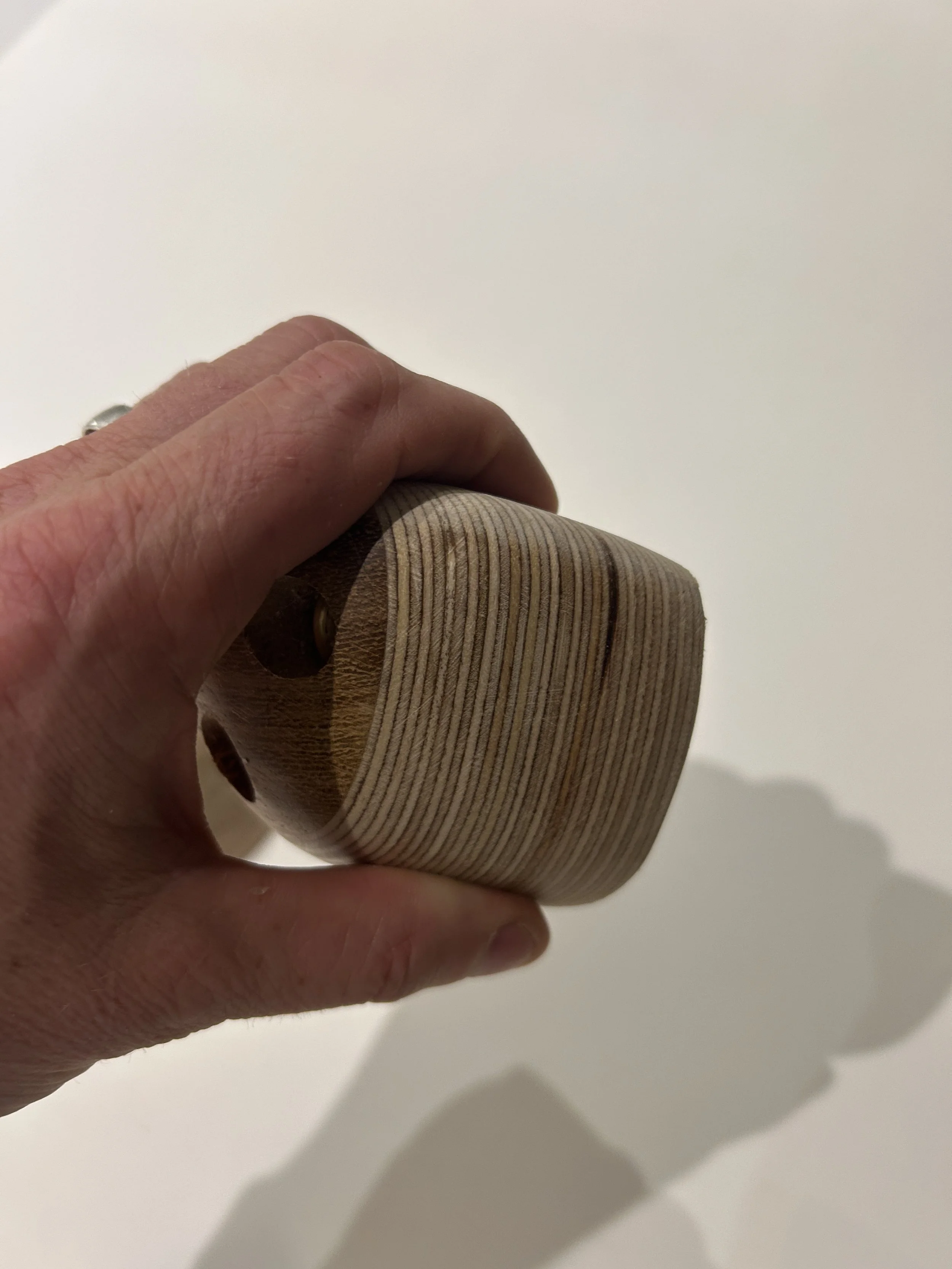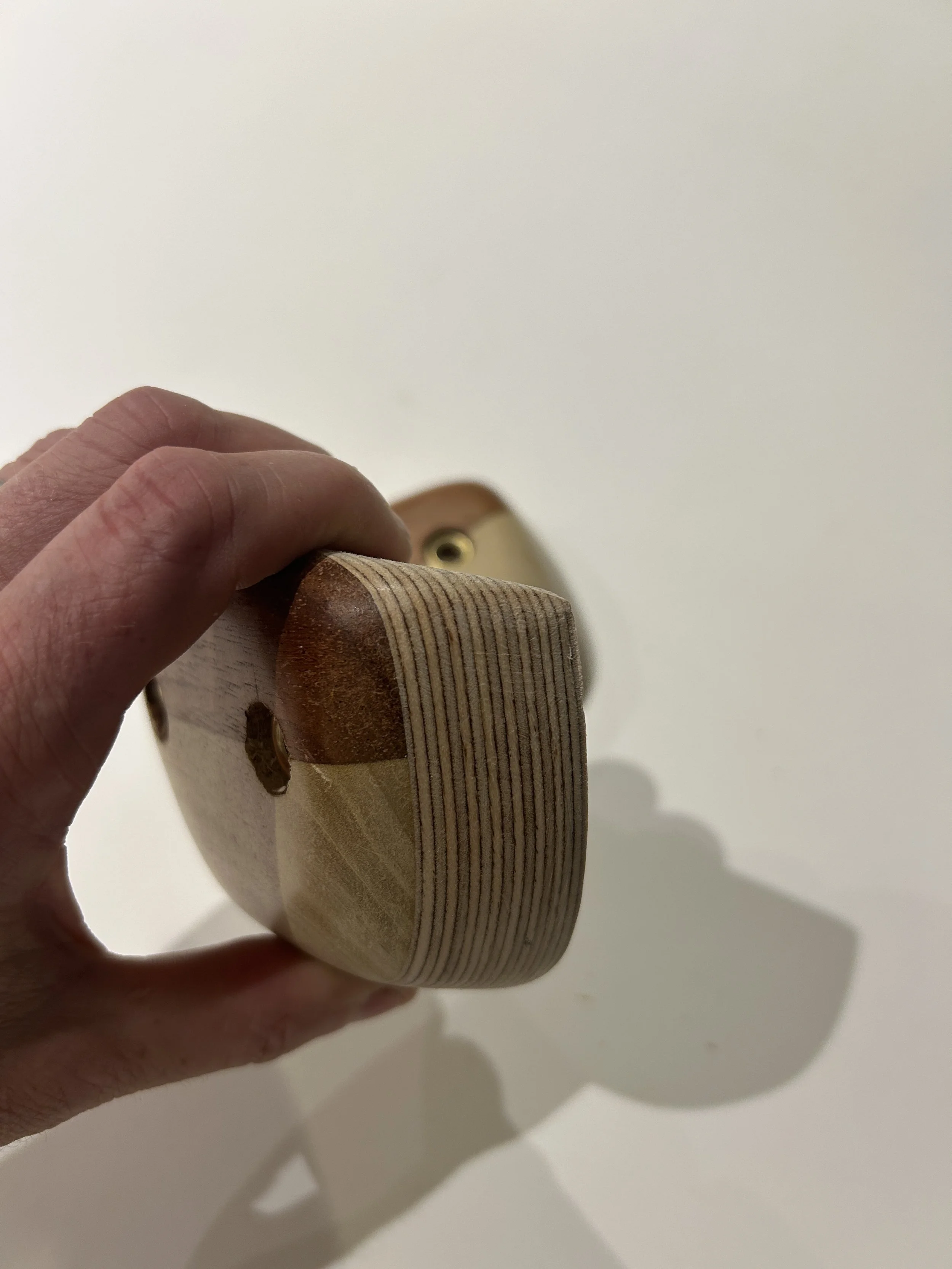 I make our holds, brushes and training products from various hardwoods and plywoods, all of the wood comes in the form of offcuts or is reclaimed, the aim is to create no waste. I shape every hold by hand in my small workshop at the bottom of my garden in Brighton. Sometimes I set out with a plan for a particular set. Sometimes I let the grain and characteristics of the wood dictate the shape. I test out all our hold designs on our garage spray wall, developing and refining as I go.
