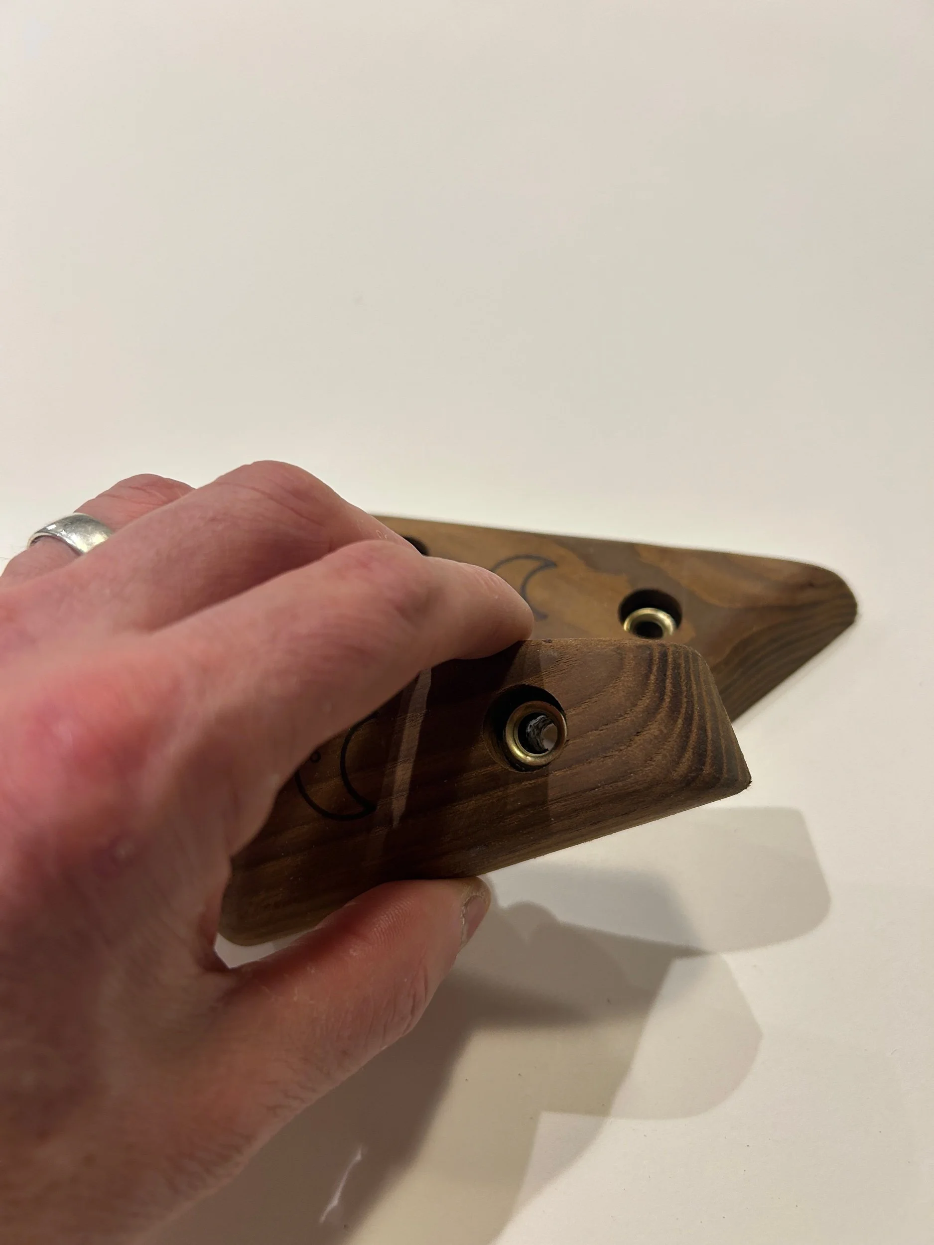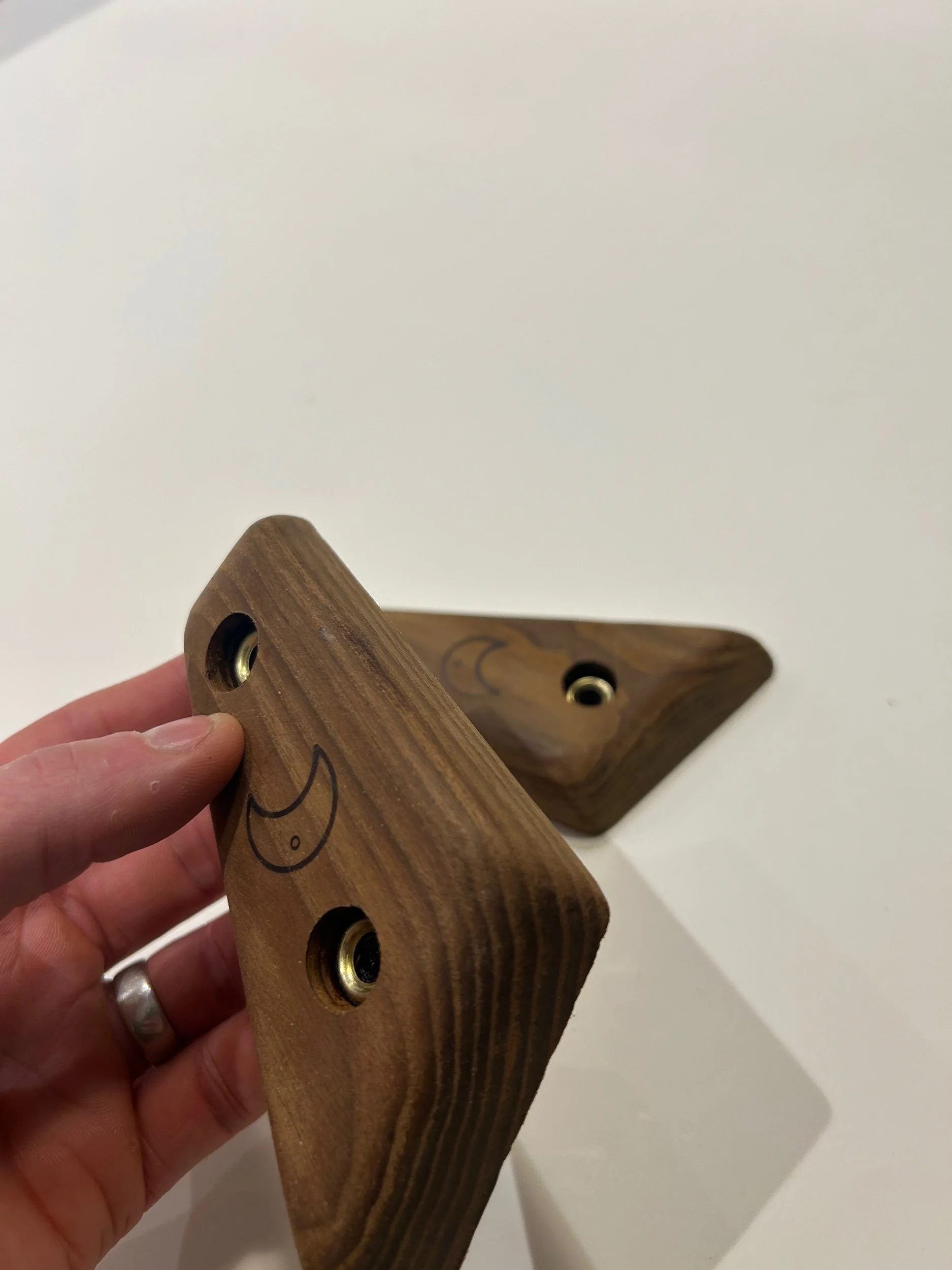 These hand crafted hardwood climbing holds are a perfect addition to a spray wall/systemboard/training wall or hangboard set up.