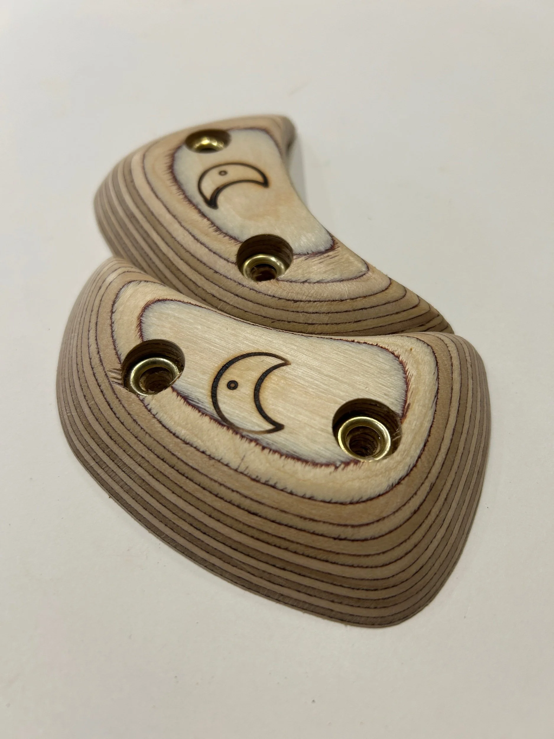 These hand crafted hardwood climbing holds are a perfect addition to a spray wall/training wall or hangboard set up.